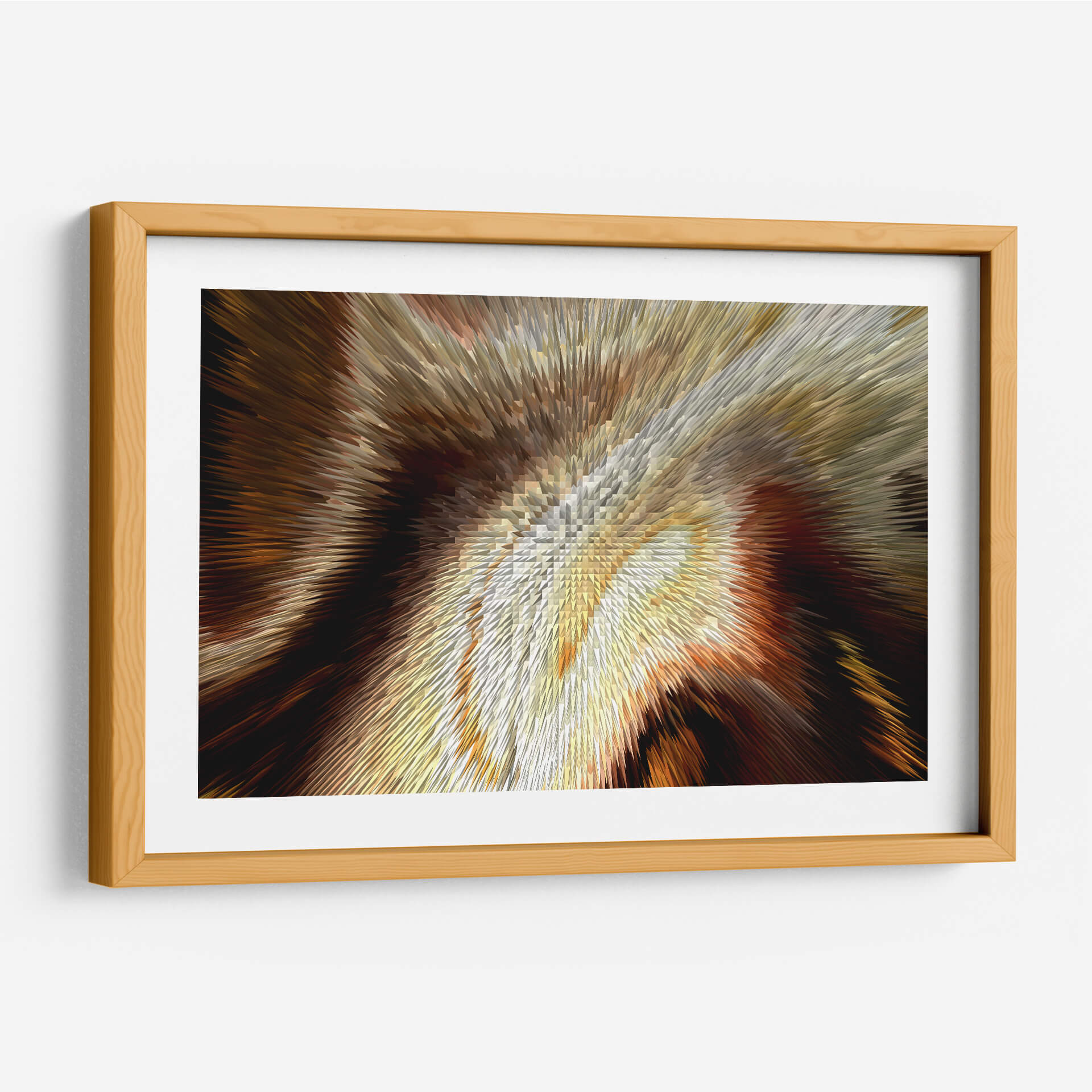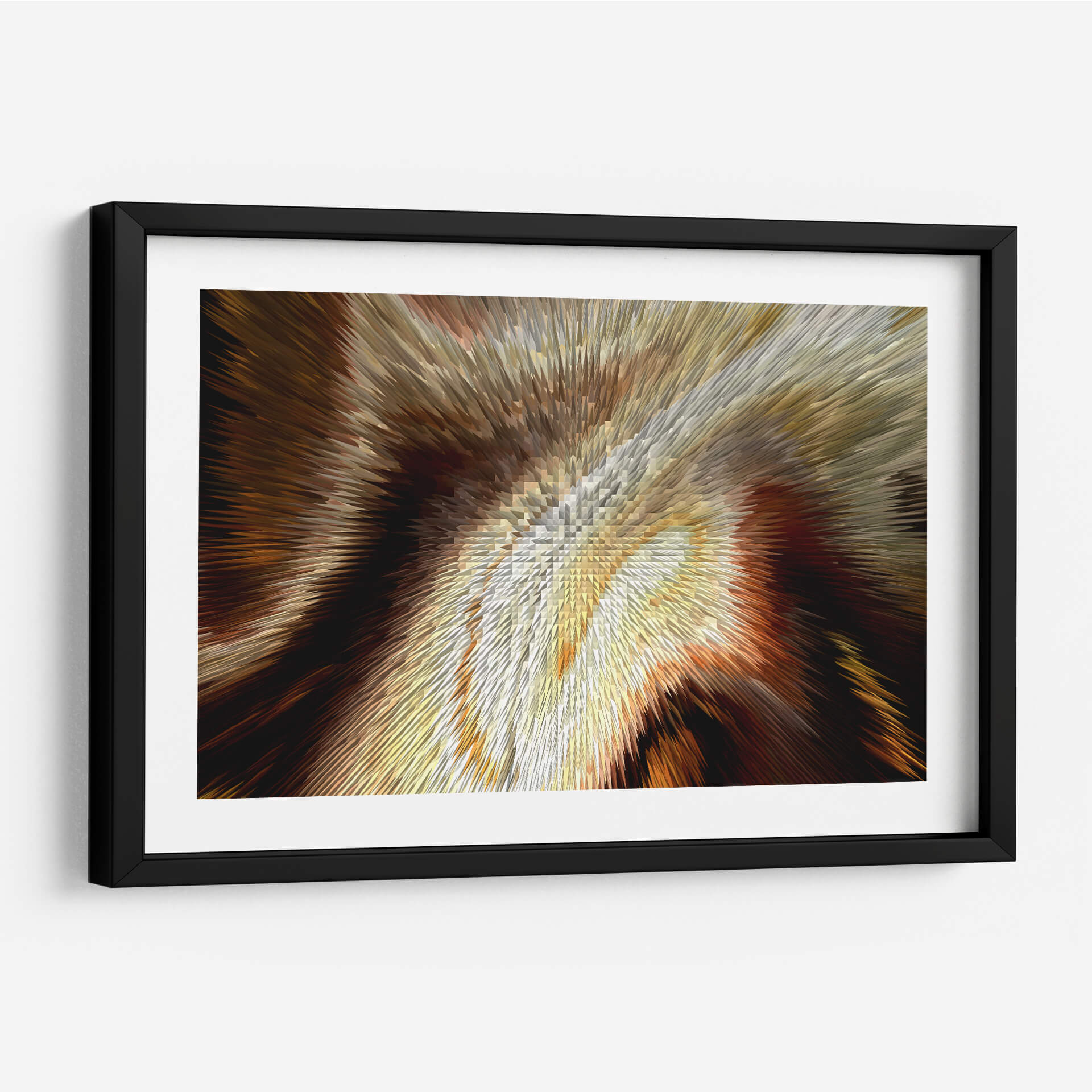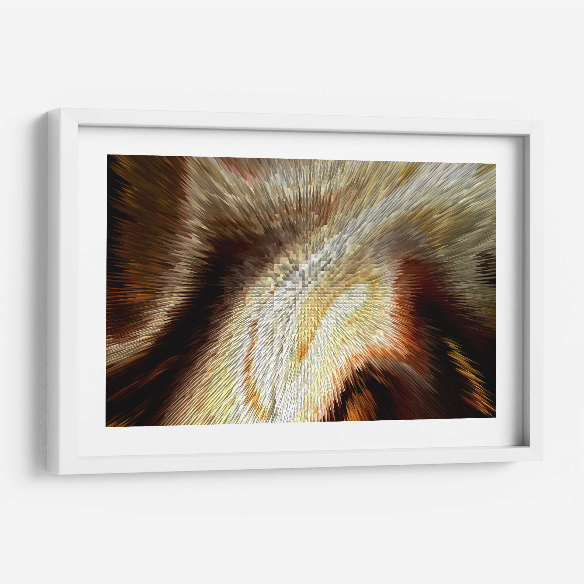 Sumérgete en la calidez y la profundidad de "Cobrizo", una obra de arte contemporáneo de Rodrigo Barrera que transforma el espacio con su vibrante energía y texturas dinámicas. Este cuadro decorativo abstracto se caracteriza por una explosión visual de tonos cobrizos, dorados, marrones y ocres, que se entrelazan creando un efecto tridimensional cautivador. Las formas afiladas y angulares que emanan desde el centro sugieren movimiento y dinamismo, atrayendo la mirada hacia su intrincado detalle. La paleta de colores, rica y terrenal, evoca una sensación de lujo, calidez y sofisticación, perfecta para añadir un toque de elegancia a cualquier ambiente. "Cobrizo" es ideal para espacios que buscan un punto focal audaz y moderno, como una sala de estar contemporánea, un despacho o un recibidor. Su naturaleza abstracta permite múltiples interpretaciones, invitando a la contemplación y la conversación. Este cuadro decorativo es una pieza versátil que complementará tanto decoraciones rústicas como minimalistas, aportando carácter y un sentido de profundidad visual. La maestría de Barrera en la manipulación de formas y colores crea una obra que es a la vez poderosa y sutil, una adición impresionante a tu colección de arte mural.