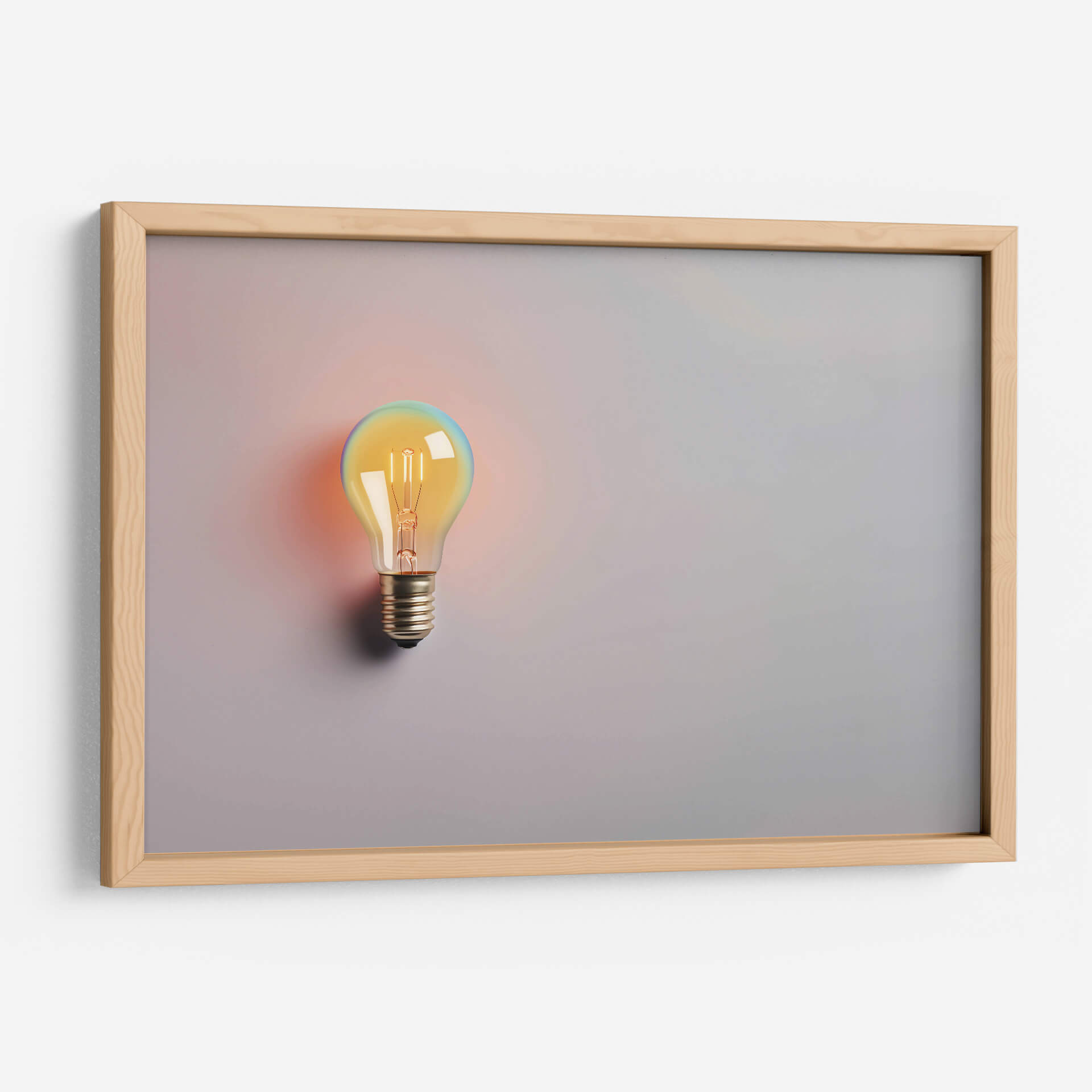 Captura la esencia de la genialidad con "Mi Idea - 9", una obra de arte que evoca el poder transformador de un pensamiento brillante. La pieza presenta una bombilla incandescente, un símbolo universal de inspiración, iluminada con una luz cálida y vibrante que emana tonos amarillos, naranjas y toques iridiscentes de azul y verde en su contorno. Este degradado de color suave y etéreo contrasta sutilmente con el fondo de color gris pálido y rosáceo, creando una atmósfera de calma y contemplación. La composición minimalista, centrada en la bombilla, dirige la atención del espectador hacia este icono de la creatividad, sugiriendo que las grandes ideas pueden surgir en los momentos más sencillos. Este cuadro decorativo es perfecto para estudios, oficinas o cualquier espacio donde se valore el pensamiento innovador y la originalidad. Su diseño limpio y moderno lo convierte en un complemento ideal para interiores contemporáneos, aportando un toque de energía y sofisticación sin abrumar. "Mi Idea - 9" es más que una imagen; es una invitación a encender tu propia chispa creativa y a celebrar el momento eureka que puede cambiarlo todo. Una pieza que inspira y decora a partes iguales.