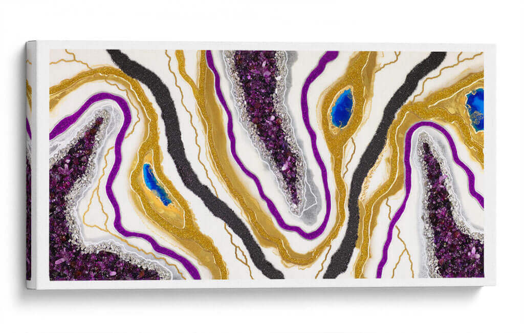 Sumérgete en la opulencia y la energía mística del cuadro decorativo "Río Amatista" de GOGA. Esta obra de arte contemporánea es una explosión de texturas y colores que evocan la belleza cruda y fascinante de las geodas y los minerales. Las vetas sinuosas en tonos morados profundos, dorados brillantes y acentos de azul vibrante serpentean sobre un fondo blanco, creando un efecto visual dinámico y cautivador. Los detalles intrincados y el uso audaz del brillo capturan la luz de manera espectacular, aportando un toque de lujo y sofisticación a cualquier espacio. "Río Amatista" no es solo una pieza decorativa, es una invitación a la contemplación, una ventana a la maravilla geológica que inspira profundidad y vitalidad. Perfecta para añadir un punto focal de elegancia contemporánea en tu sala de estar, un toque de misterio en tu oficina o una dosis de energía en tu dormitorio. Transforma tu hogar u oficina en una galería personal con esta pieza única que combina la fuerza de la naturaleza con la visión artística moderna, creando un ambiente de lujo y serenidad.