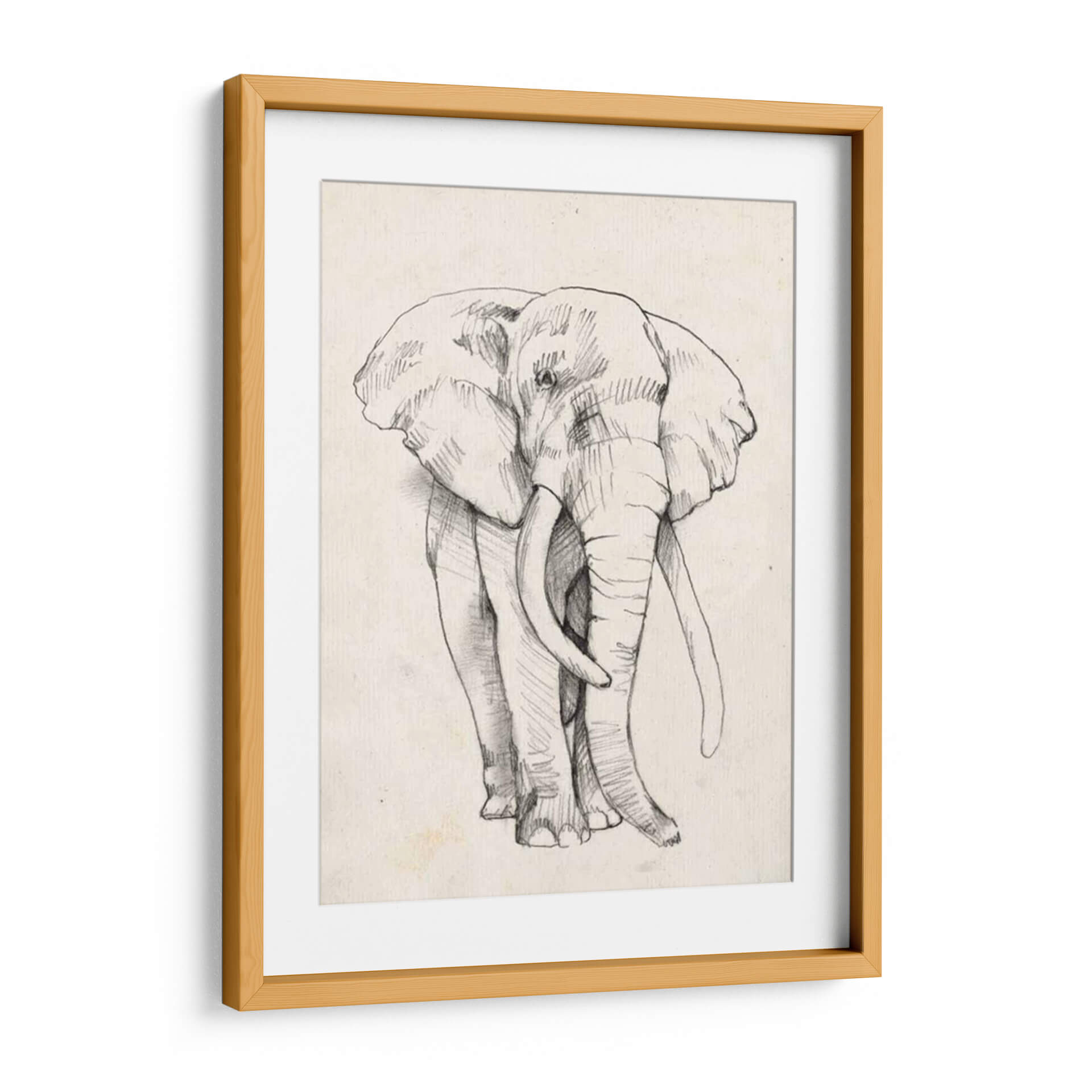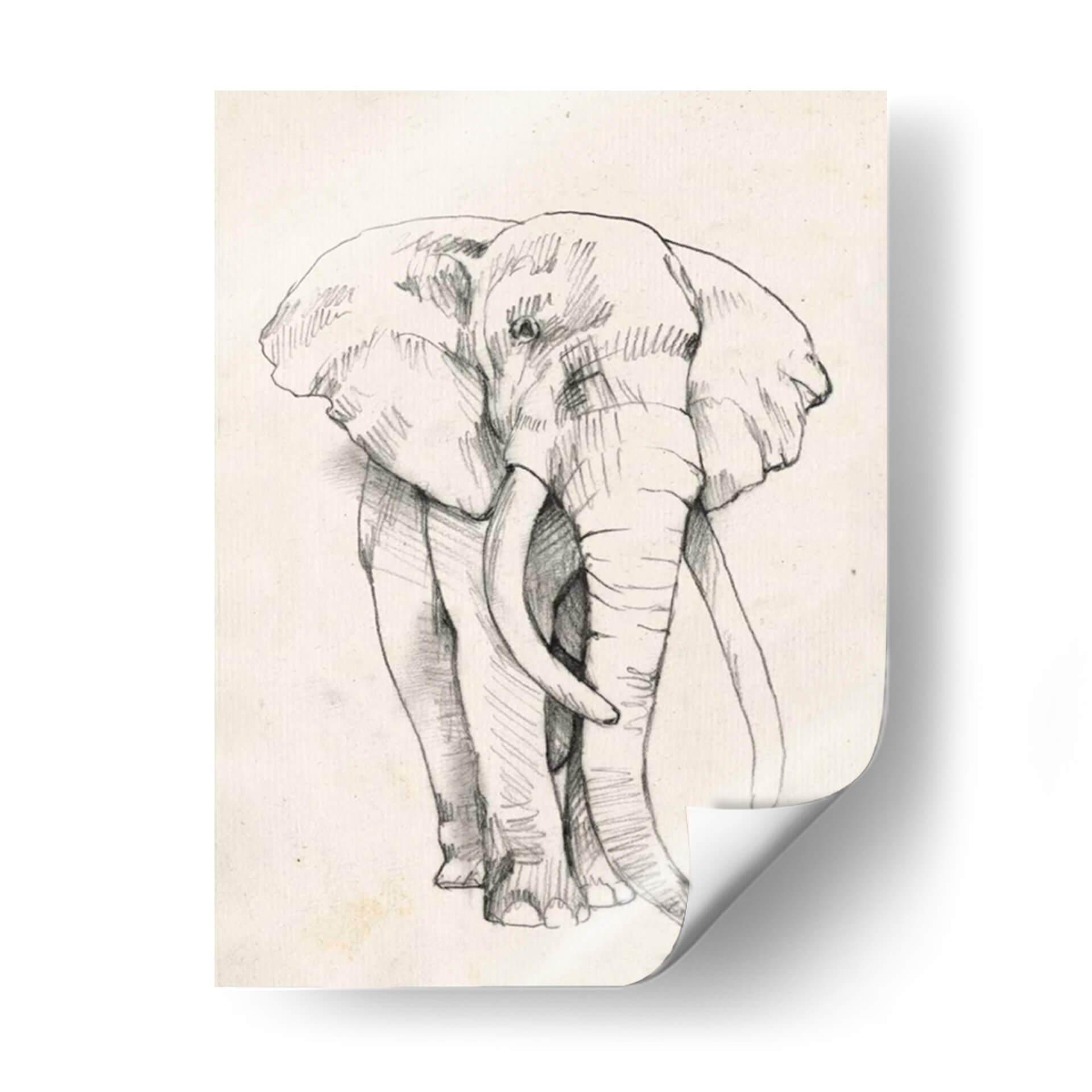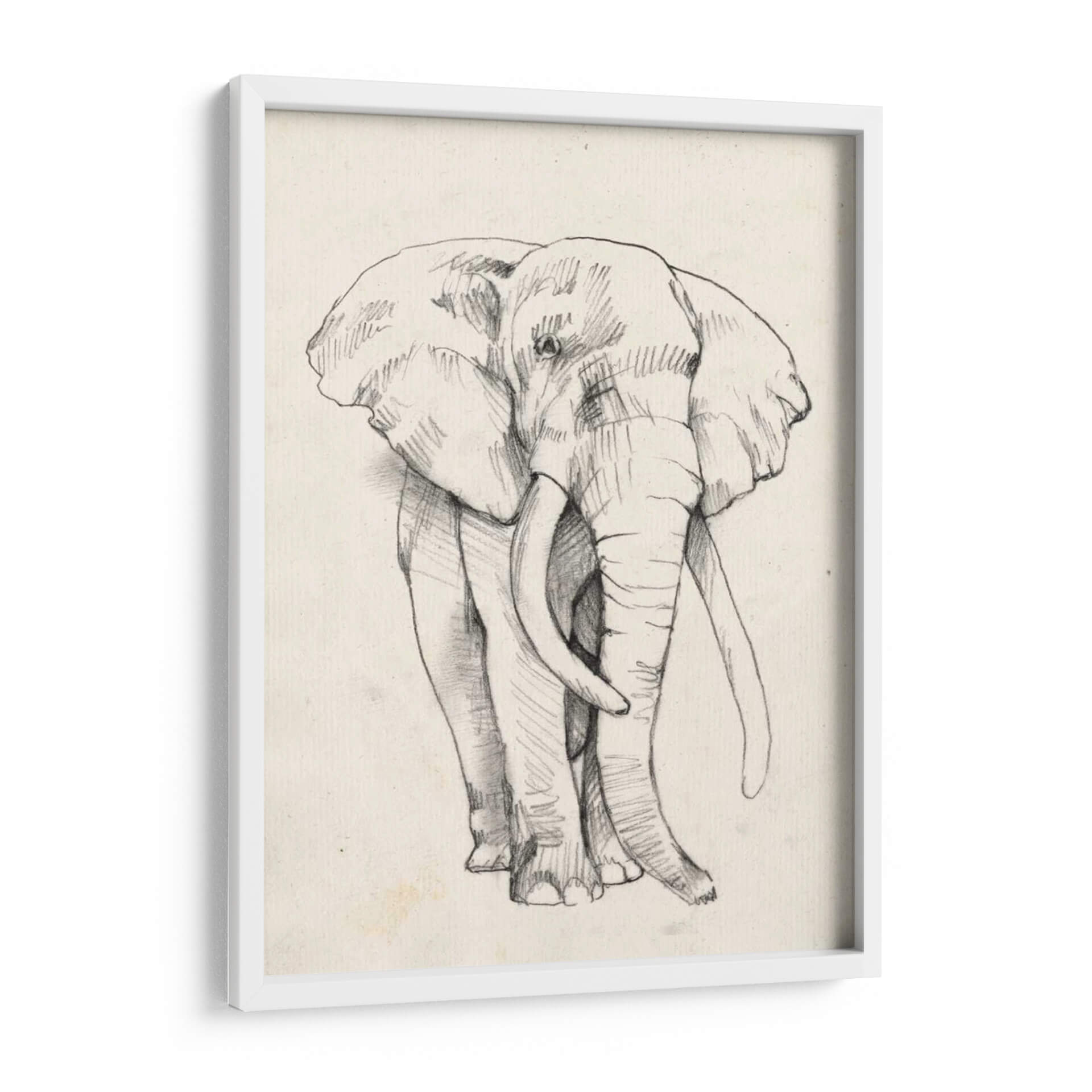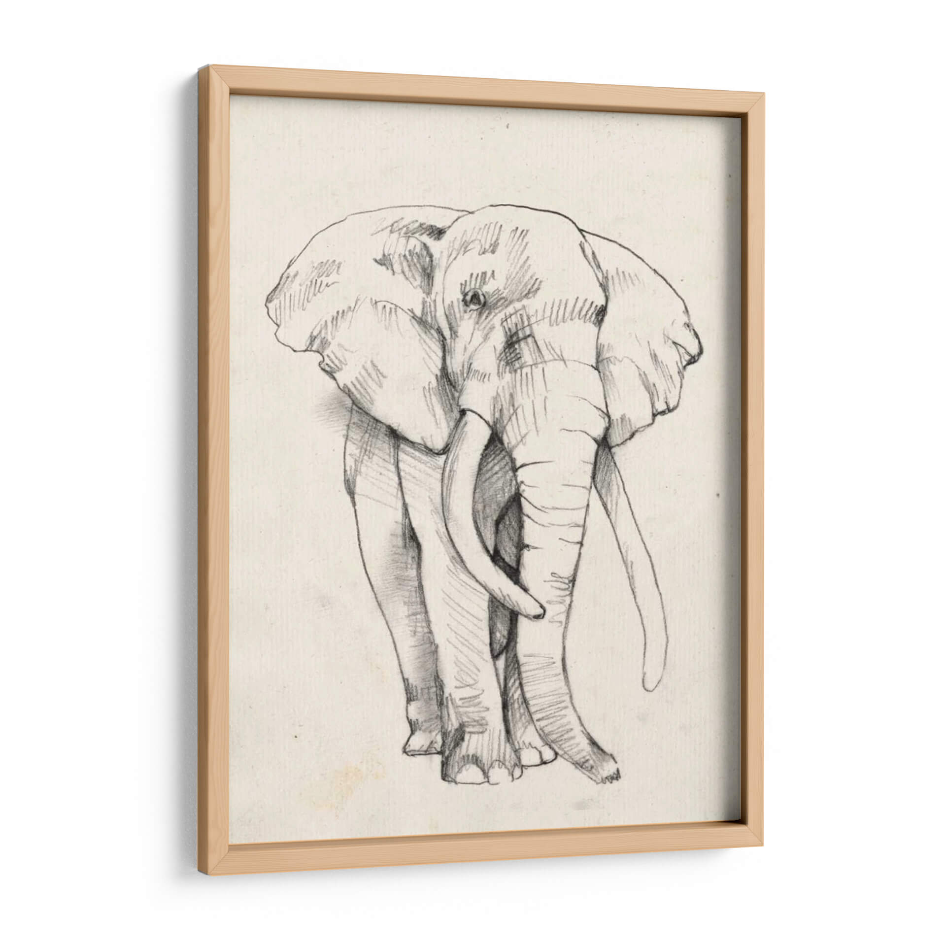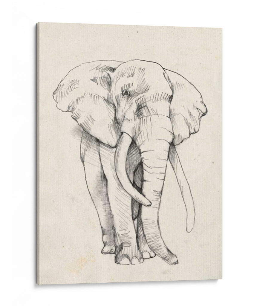 Impresiona a tus visitas con "Retrato De Elefante II", una obra de arte cautivadora de Jennifer Goldberger. Este cuadro decorativo captura la majestuosidad y la fuerza tranquila de un elefante con un trazo detallado y expresivo. Realizado en un estilo de boceto a lápiz sobre un lienzo de textura sutil, la pieza evoca una sensación de calidez y conexión con la naturaleza. La paleta de colores neutros y terrosos, con un fondo de tono marfil, permite que el retrato del elefante sea el punto focal indiscutible, aportando elegancia atemporal a cualquier estancia. Su composición frontal, que se centra en la imponente figura del animal, transmite serenidad y poder. Este cuadro es perfecto para añadir un toque de sofisticación orgánica a tu salón, estudio o dormitorio. Es una pieza versátil que complementa tanto decoraciones rústicas como modernas, invitando a la contemplación y al asombro ante la magnificencia de la vida salvaje. Ideal para amantes de los animales y aquellos que buscan arte con alma.
