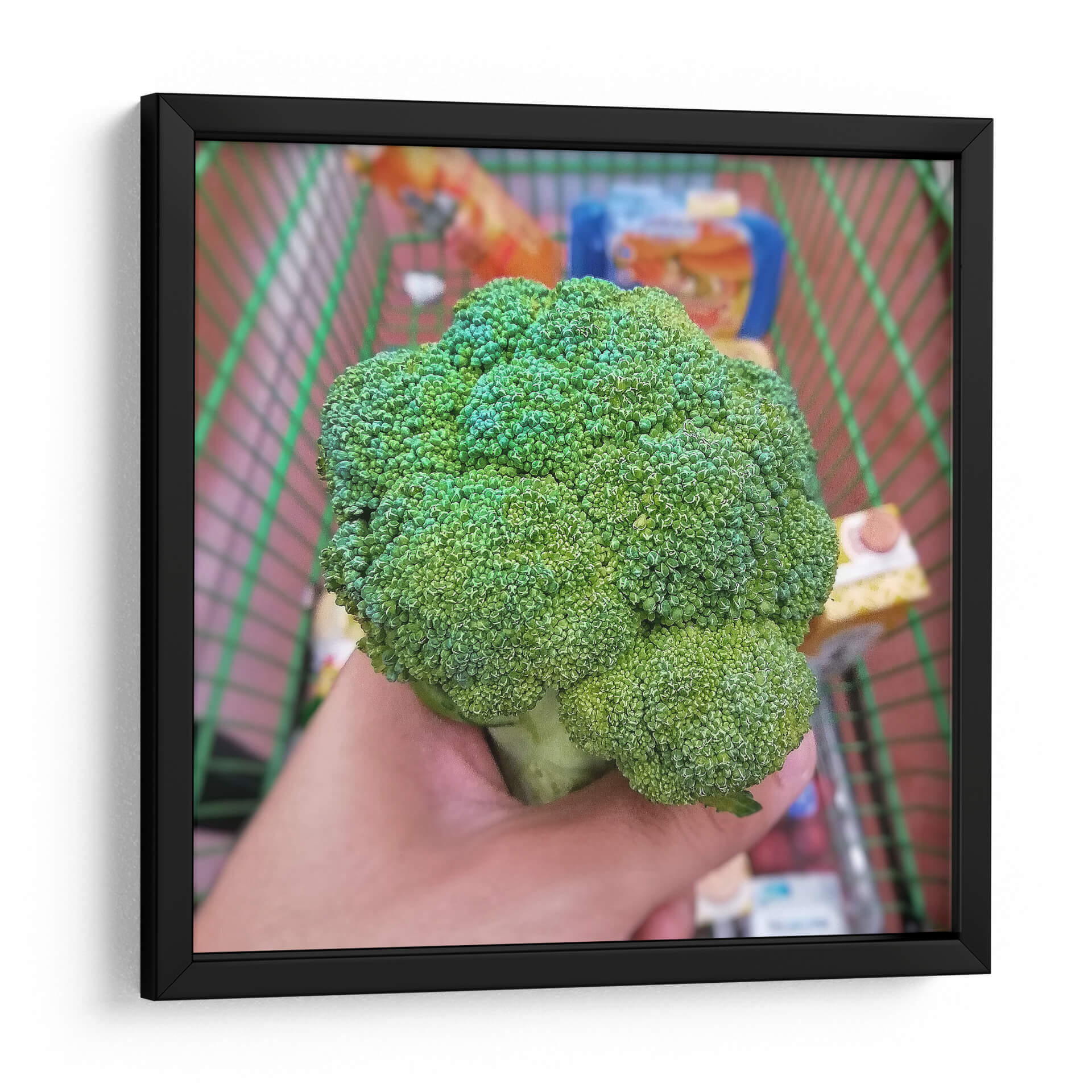 Transforma tu espacio con este vibrante cuadro decorativo 'Brócoli' del artista Chef Capellini. Captura la esencia fresca y natural de uno de los vegetales más emblemáticos, presentado con un detalle excepcional que resalta su textura y color verde intenso. La obra se centra en un primer plano detallado de un brócoli, sostenido por una mano, con el fondo desenfocado de un carrito de supermercado, creando una composición intrigante que fusiona lo cotidiano con lo artístico. Los tonos verdes dominantes, con sutiles matices turquesa en las cimas, aportan una sensación de vitalidad y frescura. Este cuadro es perfecto para añadir un toque de color y vida a cocinas, comedores o cualquier espacio que busque una conexión con la naturaleza y la alimentación saludable. Su estilo fotográfico y enfoque nítido en el sujeto principal lo convierten en una pieza de arte moderno ideal para interiores contemporáneos, aportando un toque de originalidad y conversación. Imagina cómo este cuadro podría convertirse en el punto focal de tu pared, invitando a la frescura y al bienestar a tu hogar u oficina, celebrando la belleza oculta en los elementos más simples de la vida. Es una elección audaz y llena de carácter para quienes aprecian el arte que desafía lo convencional y celebra la abundancia de la naturaleza.