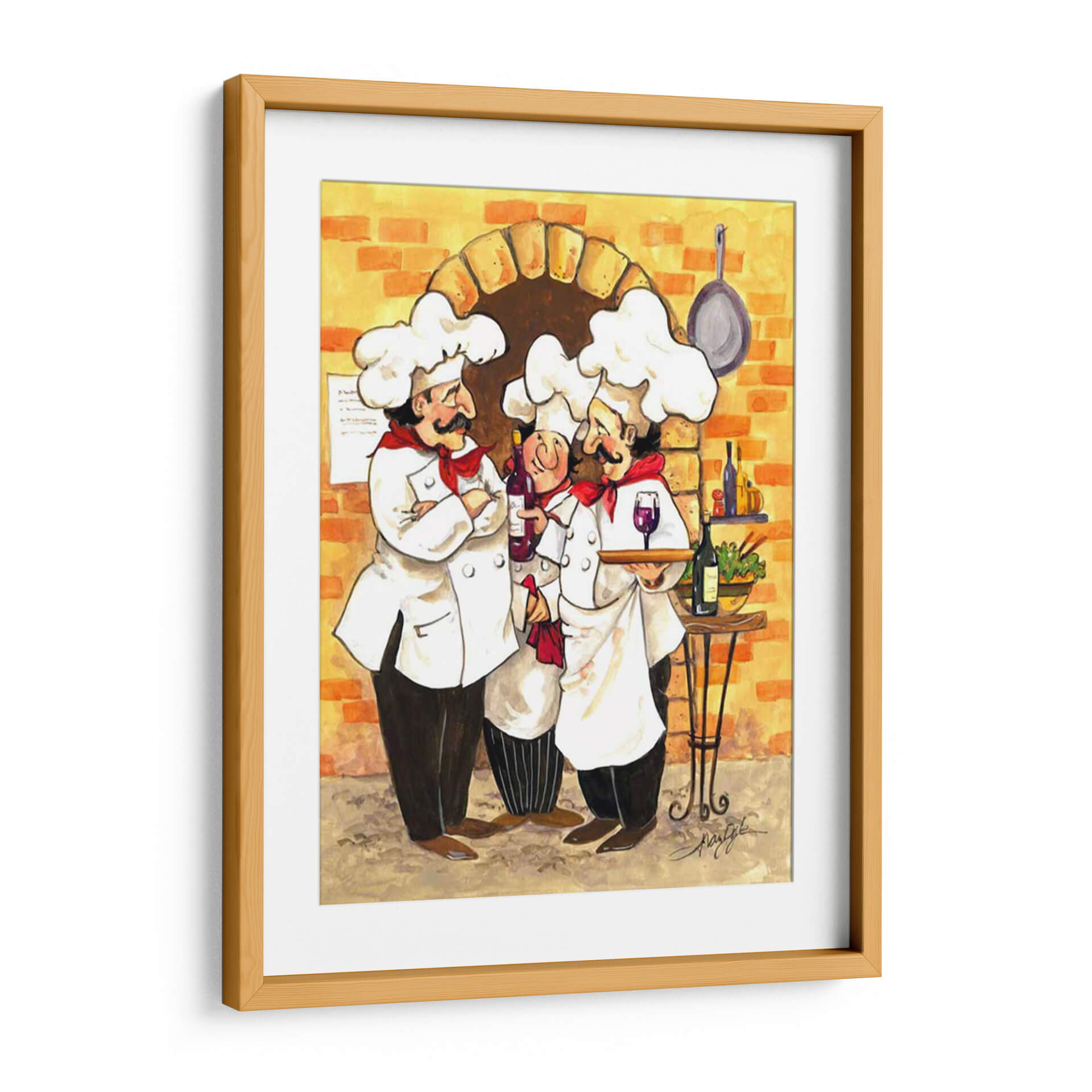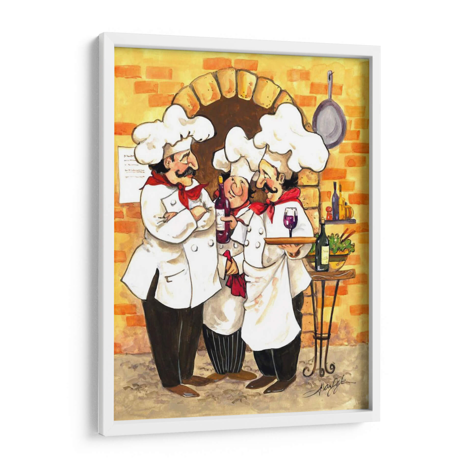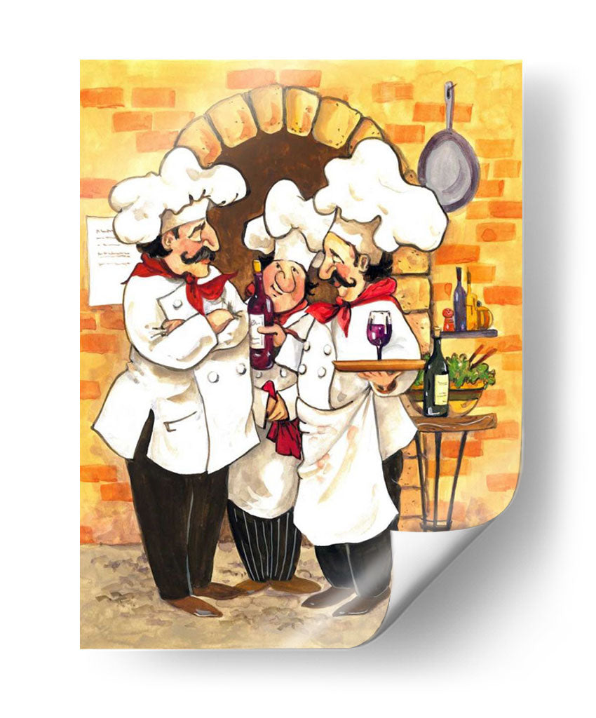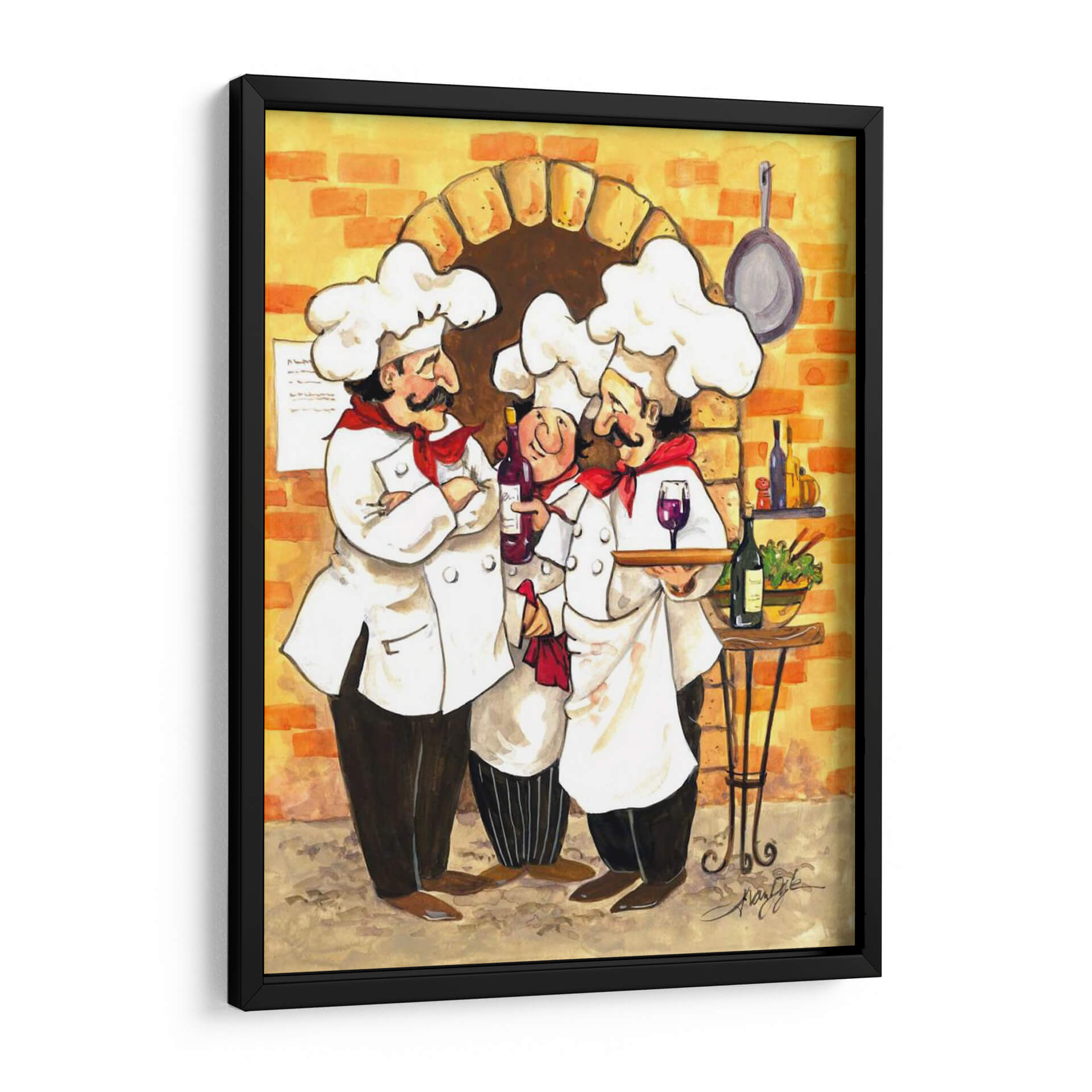 Añada un toque de alegría y sabor a su hogar con "Chefs De Vino", una obra de arte vibrante del artista Jerianne Van Dijk. Esta pieza captura la esencia de la camaradería y el placer culinario a través de la representación de tres chefs animados, rodeados por el cálido ambiente de una cocina tradicional con horno de ladrillo visto. Los colores cálidos, dominados por amarillos intensos y los tonos terrosos del ladrillo, crean una atmósfera acogedora y festiva. El estilo, con trazos expresivos y una paleta de colores vivos, aporta dinamismo y carácter a la composición. Los detalles como las cofias blancas impecables, las bufandas rojas vibrantes y las botellas de vino añaden un toque de autenticidad y humor a la escena. "Chefs De Vino" es ideal para dar vida a su cocina, comedor o incluso para añadir un punto de interés único a su bodega o sala de estar. Este cuadro decorativo es una invitación a celebrar los buenos momentos y el arte de la buena mesa, convirtiéndose en una pieza central que inspira conversaciones y sonrisas. La obra transmite una sensación de celebración, amistad y la pasión por la gastronomía, haciendo de su espacio un lugar más cálido y personal. Es una elección perfecta para quienes aprecian el arte que combina humor, habilidad artística y una temática universalmente querida.