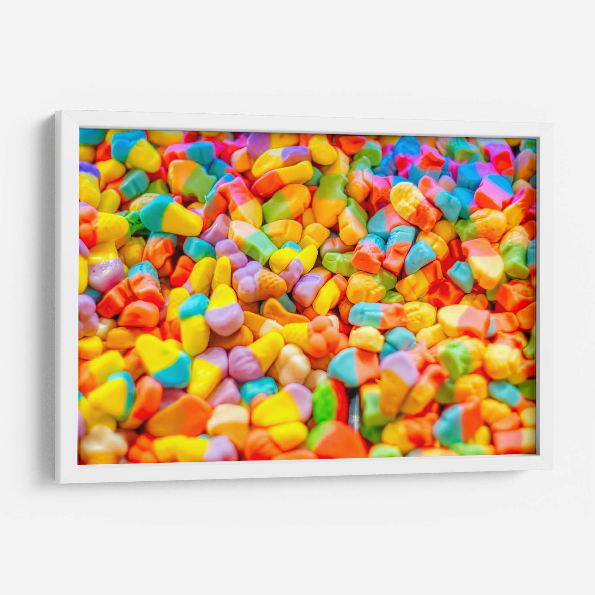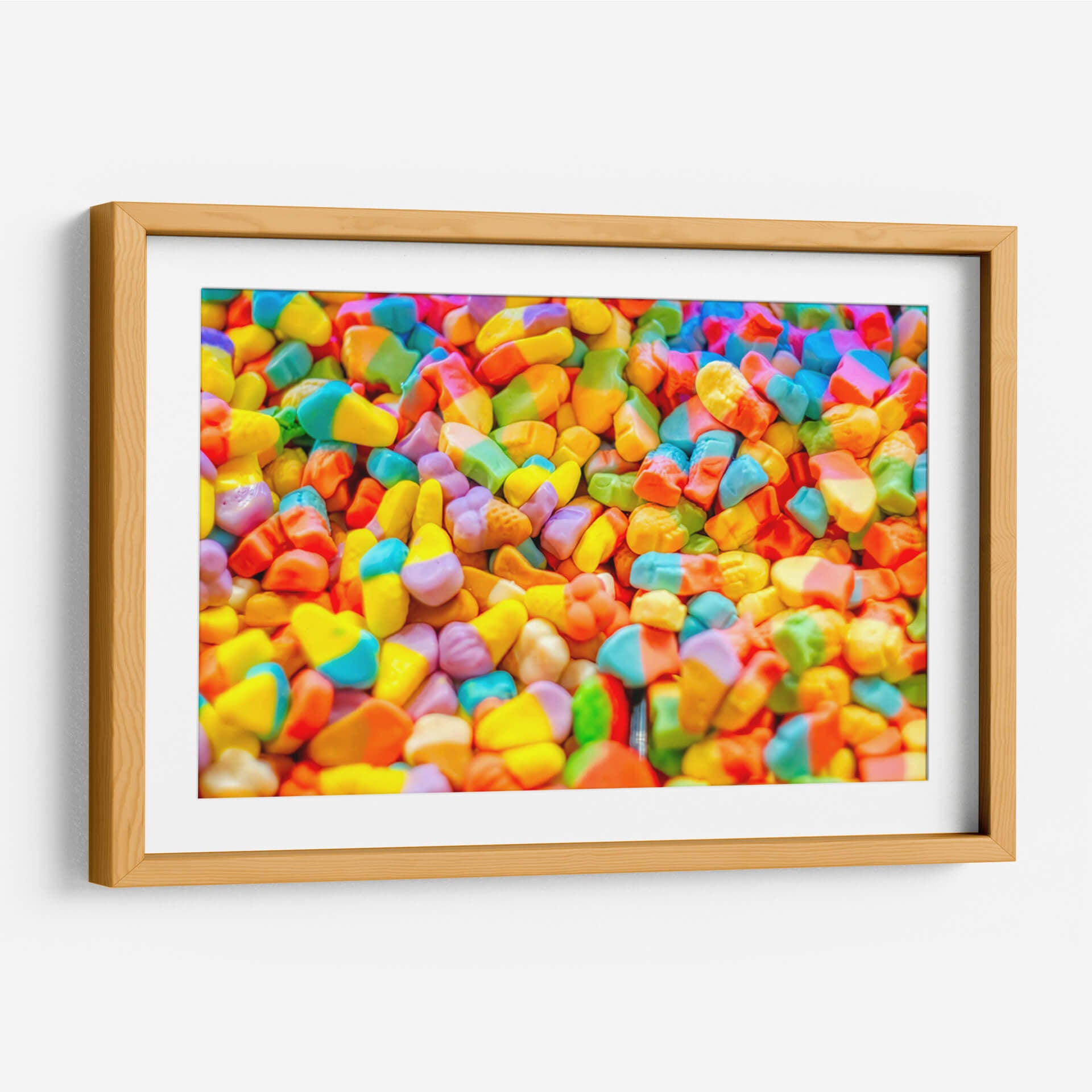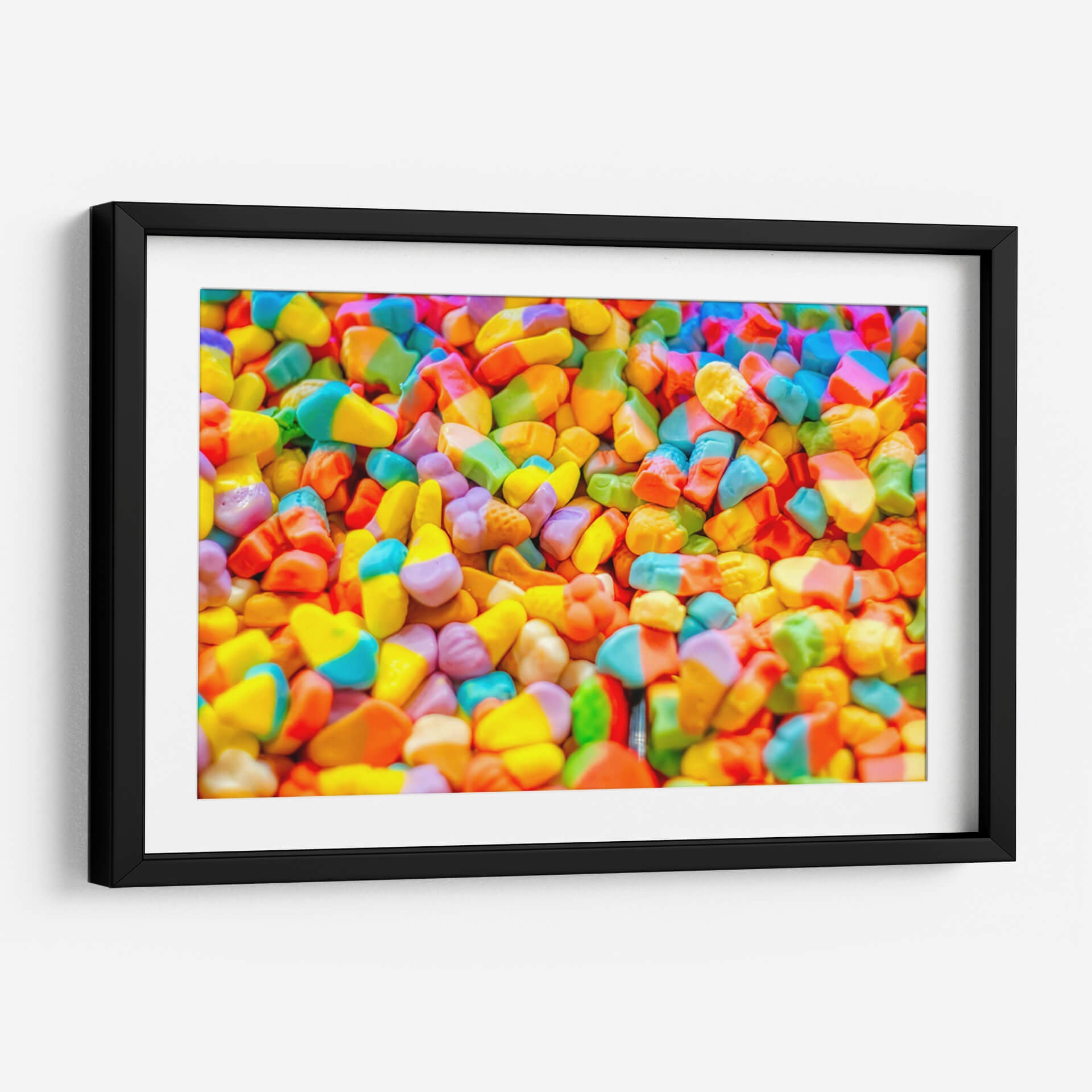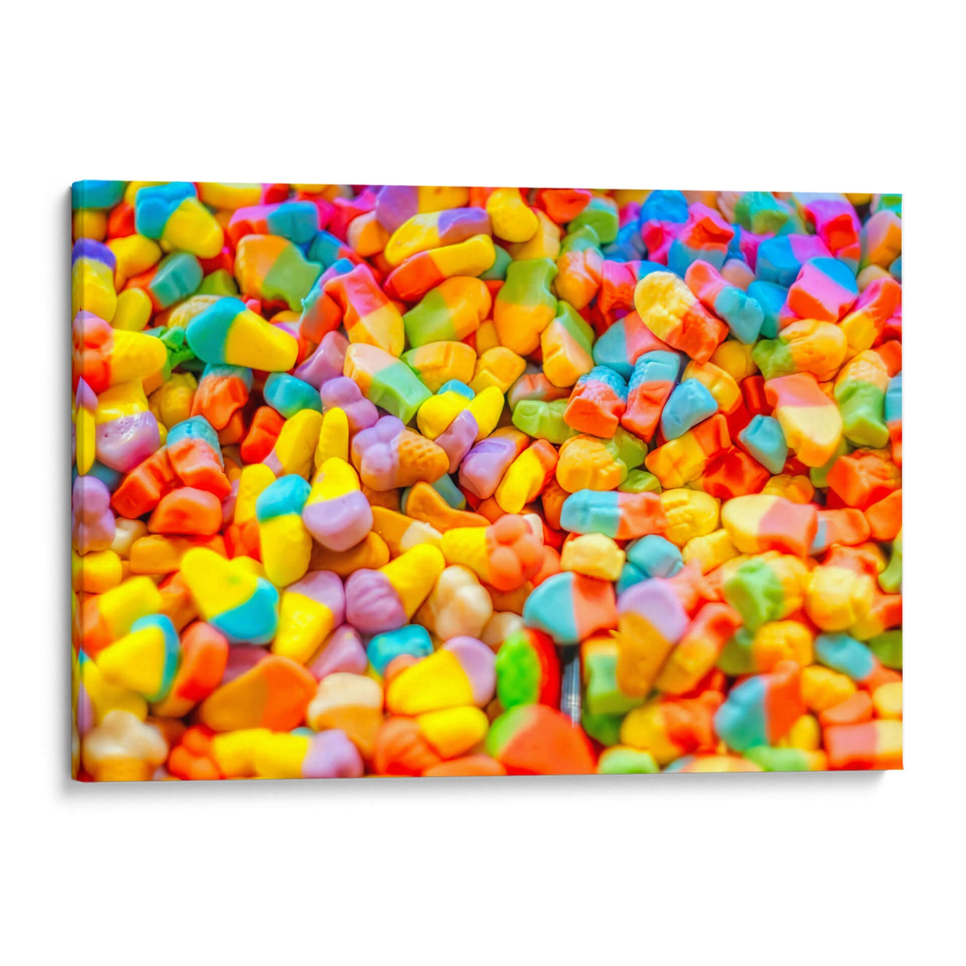 Sumérgete en un universo de dulzura y color con este vibrante cuadro decorativo, titulado 'Dulces coloridos'. La obra captura la esencia juguetona y alegre de una acumulación de golosinas de goma, presentadas en una explosión de tonos que evocan pura felicidad. Los diferentes caramelos, con sus formas divertidas y sus combinaciones de colores primarios y secundarios —como amarillos intensos, azules eléctricos, naranjas cálidos, rosas fucsia y toques de verde lima y violeta—, crean una composición densa y llena de energía. La iluminación realza las texturas y los brillos, invitando a una experiencia visual casi táctil. Este cuadro abstracto, con su estilo contemporáneo y su enfoque en la textura visual, es perfecto para añadir un toque de vitalidad y diversión a cualquier espacio. Ideal para cocinas, salas de juego, habitaciones infantiles o para aquellos que buscan un punto focal alegre y optimista en su hogar u oficina. Deja que 'Dulces coloridos' ilumine tu día y añada una dosis de alegría a tu decoración.