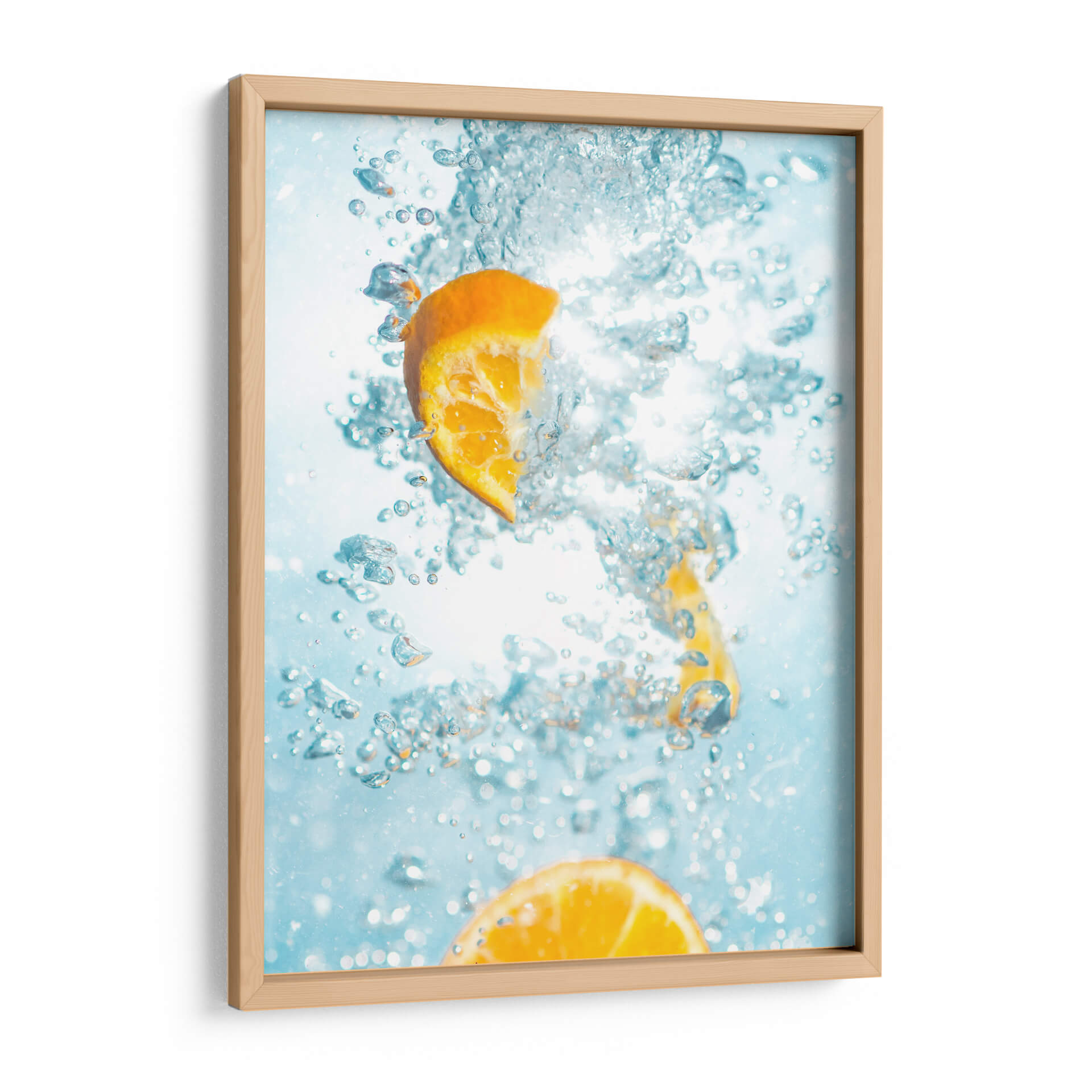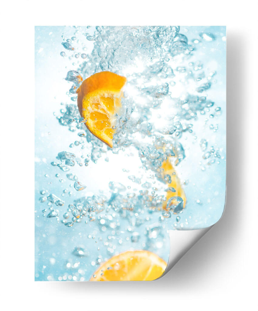 Sumérgete en la frescura vibrante de "Efervescencia", un cuadro decorativo que captura la energía pura de los cítricos al ser sumergidos en agua. Esta obra de arte presenta rodajas de naranja cayendo y creando un torbellino de burbujas y salpicaduras contra un fondo acuático de tonalidad azul claro. La luz juega un papel crucial, iluminando las gotas de agua y resaltando la textura jugosa de la fruta, creando un efecto dinámico y refrescante. Los intensos tonos anaranjados de la fruta contrastan vívidamente con los azules celestes del agua, generando una composición visualmente estimulante y llena de vida. El estilo fotográfico y el enfoque cercano te transportan al instante, permitiéndote sentir la vitalidad y la explosión de sabor. "Efervescencia" es ideal para añadir un toque de vitalidad y color a tu cocina, comedor o cualquier espacio que necesite un impulso de energía positiva. Este cuadro decorativo moderno es perfecto para quienes buscan arte contemporáneo que evoque sensaciones de alegría y frescura, funcionando como un punto focal vibrante en cualquier decoración.