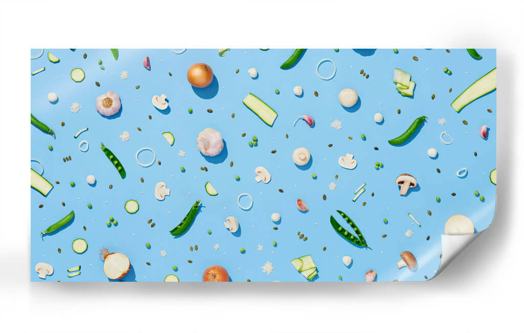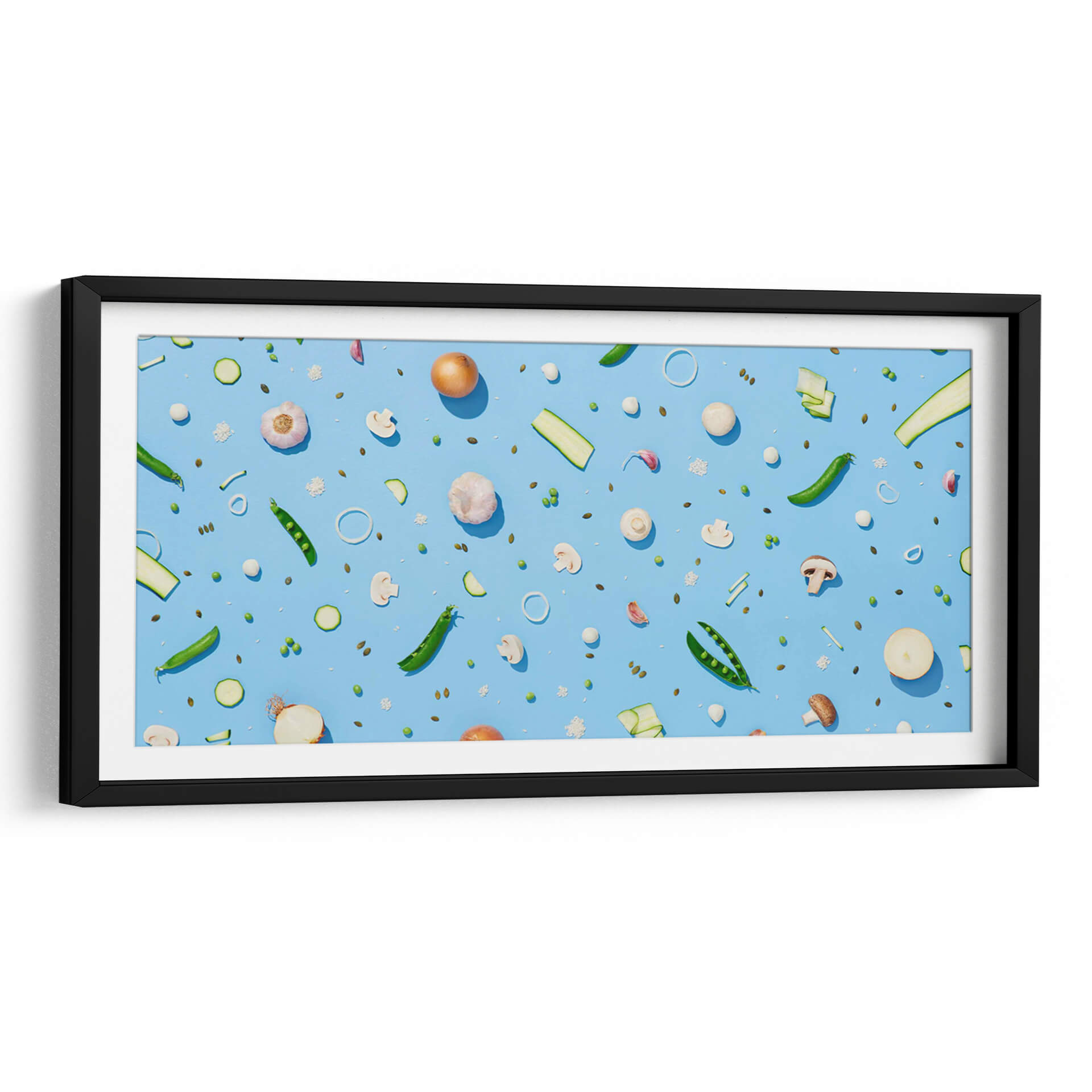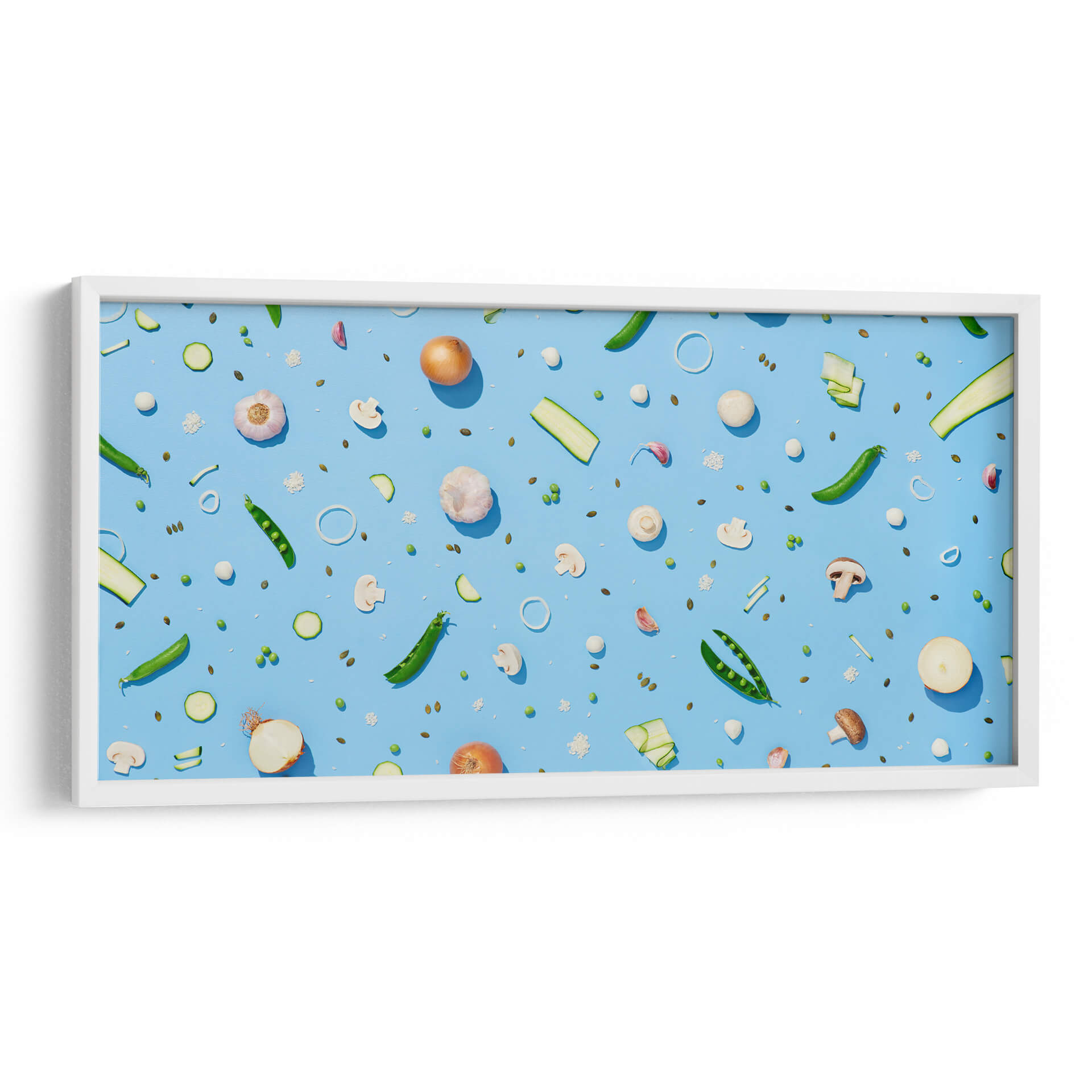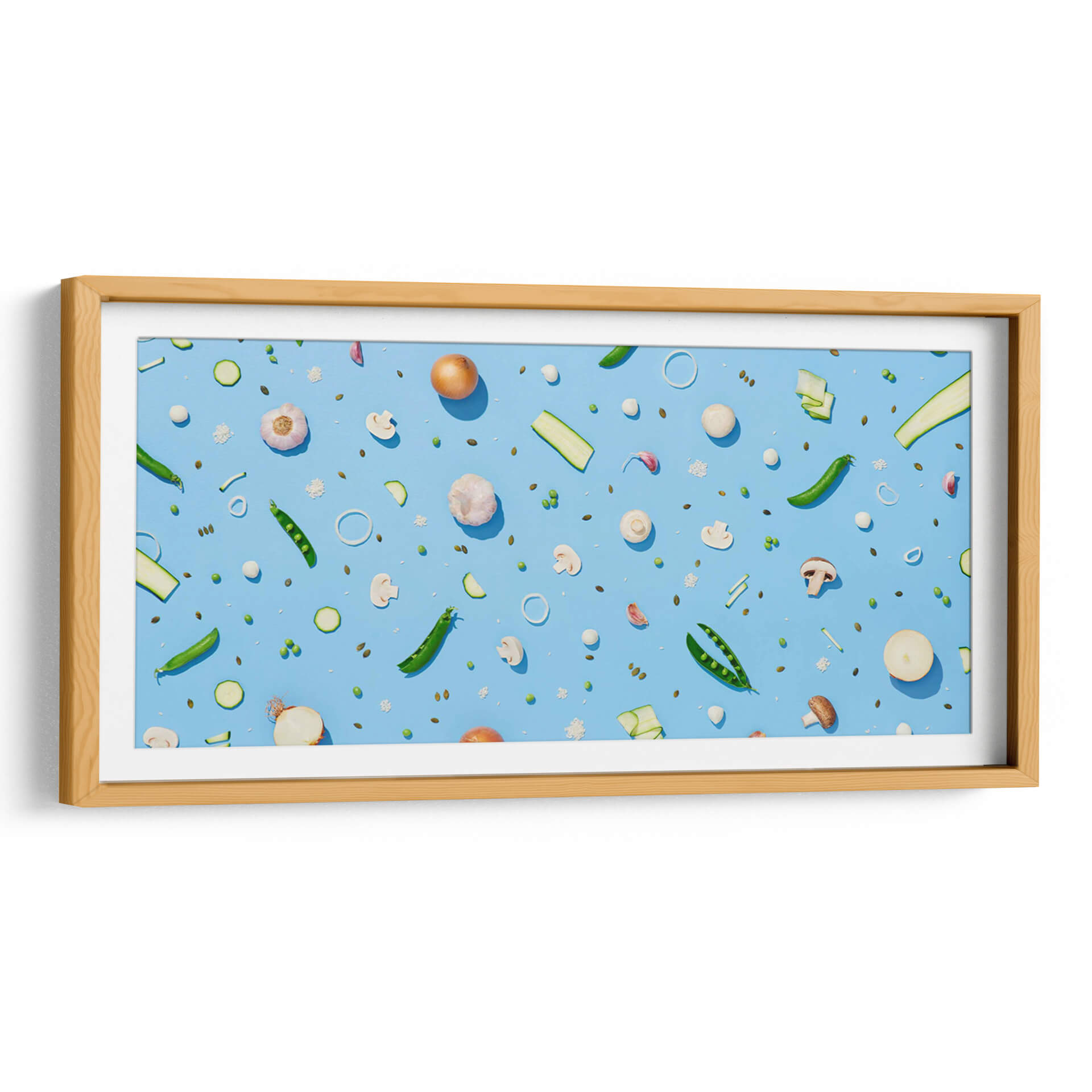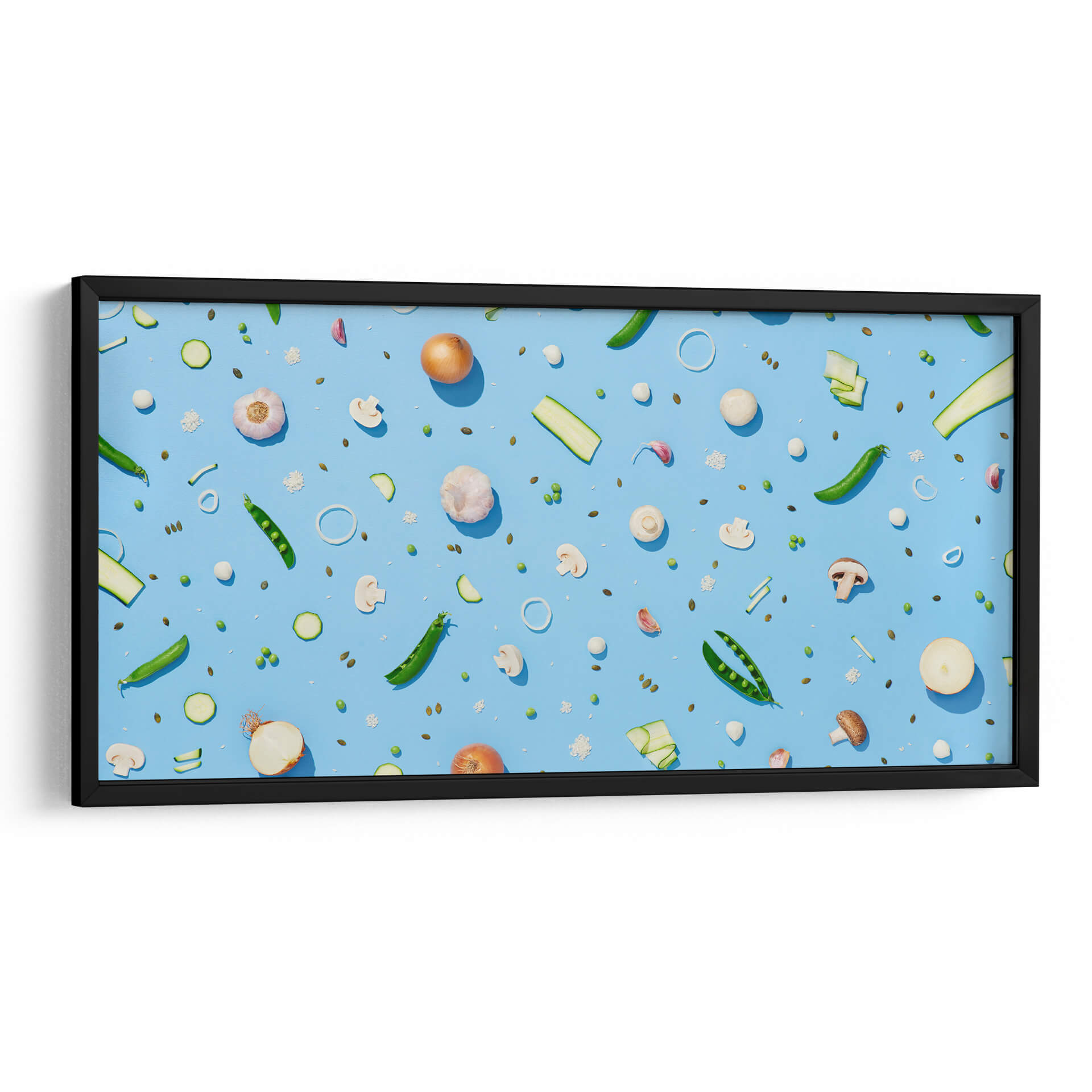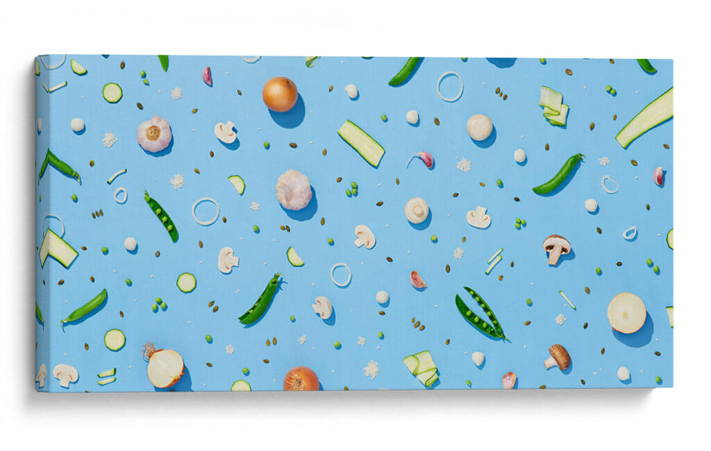 Transforma tu espacio con este vibrante cuadro decorativo de "El Desglose de una Sopa". La obra presenta un patrón juguetón y meticulosamente organizado de ingredientes frescos de cocina, dispuestos sobre un fondo azul cielo que evoca una sensación de frescura y limpieza. Cada elemento, desde las rodajas de calabacín y champiñones hasta los guisantes y cebollas, está representado con un detalle exquisito, creando una composición que es a la vez artística y deliciosamente detallada. Los colores son brillantes y saturados, aportando energía y un toque de alegría a cualquier habitación. Este cuadro es ideal para cocinas, comedores o cualquier espacio donde se desee añadir un toque de originalidad y estilo culinario. Su diseño contemporáneo y su temática única lo convierten en una pieza de conversación fascinante, perfecta para aquellos que aprecian el arte con un giro humorístico y estético. Añade un toque de arte pop y frescura a tu decoración con esta obra singular que celebra la belleza de los ingredientes cotidianos.