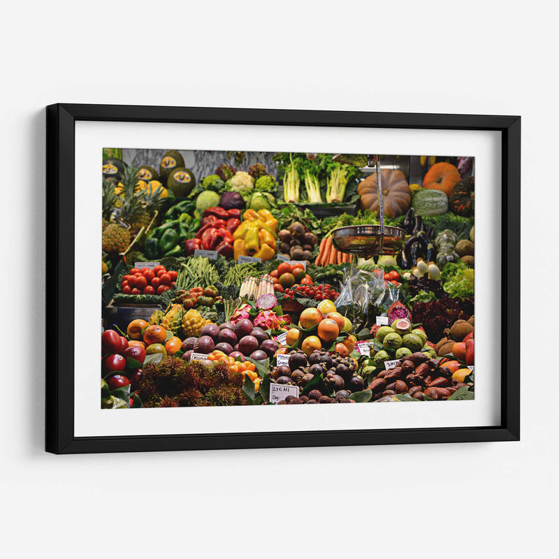 Sumérgete en la vitalidad de "Frescura del Mercado", una obra de arte decorativo que captura la exuberancia y los vibrantes colores de un puesto de frutas y verduras recién cosechadas. Esta pieza evoca la abundancia de la naturaleza y la alegría de un mercado local, con una detallada disposición de productos que invitan a la vista a recorrer cada rincón. Los tonos intensos del rojo de los tomates, el verde de los pimientos y las verduras de hoja, junto con los naranjas y amarillos de las frutas tropicales y calabazas, crean una composición rica y apetitosa. La luz juega un papel crucial, resaltando las texturas y volúmenes de cada elemento, desde la piel rugosa de la piña hasta la suavidad de las uvas y los mangos. Este cuadro decorativo es ideal para añadir un toque de frescura, color y vida a tu cocina, comedor, o cualquier espacio que desees revitalizar. Su realismo fotográfico y su cuidada composición lo convierten en un punto focal que celebra la generosidad de la tierra. Una elección perfecta para quienes aprecian la belleza de lo cotidiano y desean traer un pedazo de la naturaleza a su hogar u oficina, generando una atmósfera de bienestar y vitalidad.