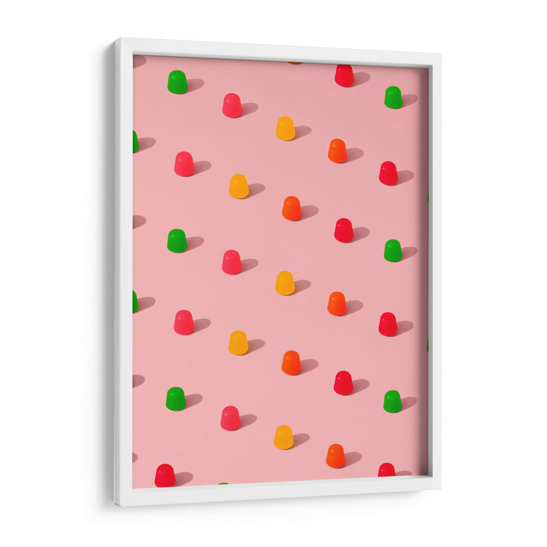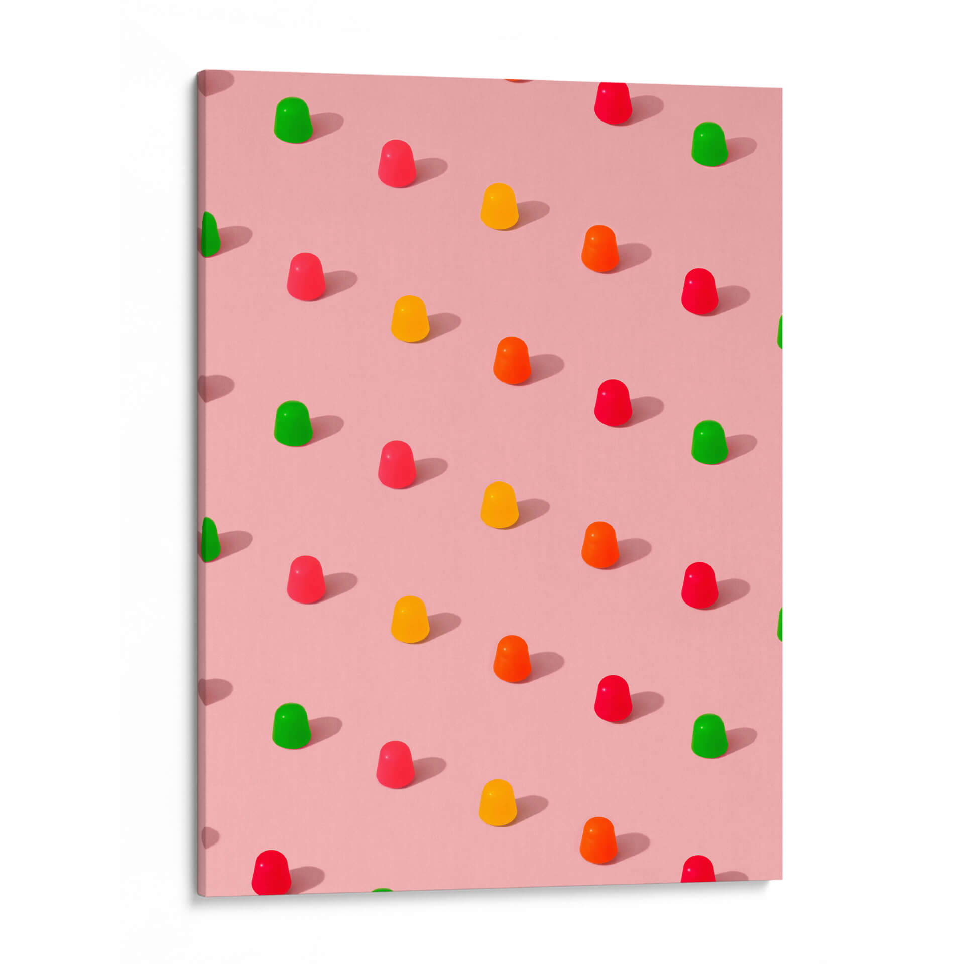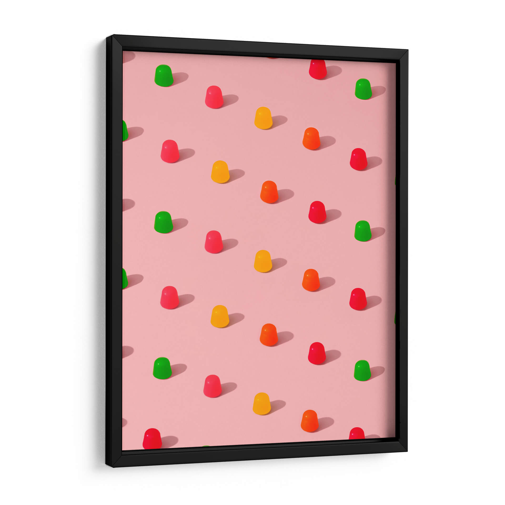 Sumérgete en un mundo de dulzura y color con este cautivador cuadro decorativo, "Gomitas de caramelo con lunares - Patrón repetitivo sobre fondo rosa", del artista Tom Windeknecht. Esta obra maestra visual captura la esencia juguetona de las gomitas de caramelo, dispuestas en un patrón repetitivo y simétrico sobre un suave fondo rosa. La paleta de colores vibrantes, que incluye rojos intensos, amarillos alegres, naranjas energéticos y verdes refrescantes, contrasta maravillosamente con la base pastel, creando una composición visualmente atractiva y llena de vida. El estilo gráfico y la atención al detalle en cada gomita, junto con las sutiles sombras proyectadas, aportan una sensación de profundidad y realismo a la pieza. Este cuadro decorativo es ideal para añadir un toque de alegría y modernidad a cualquier espacio. Su diseño pop y su atmósfera divertida lo convierten en la elección perfecta para la decoración de habitaciones infantiles, cocinas, salas de estar o incluso oficinas que buscan un ambiente más dinámico y optimista. Transforma tu hogar en un oasis de felicidad con esta pieza única que evoca recuerdos de infancia y momentos de puro disfrute. Es una obra que inspira sonrisas y conversaciones, perfecta para quienes aprecian el arte contemporáneo con un giro lúdico y encantador. Añade un toque de color y originalidad a tus paredes.