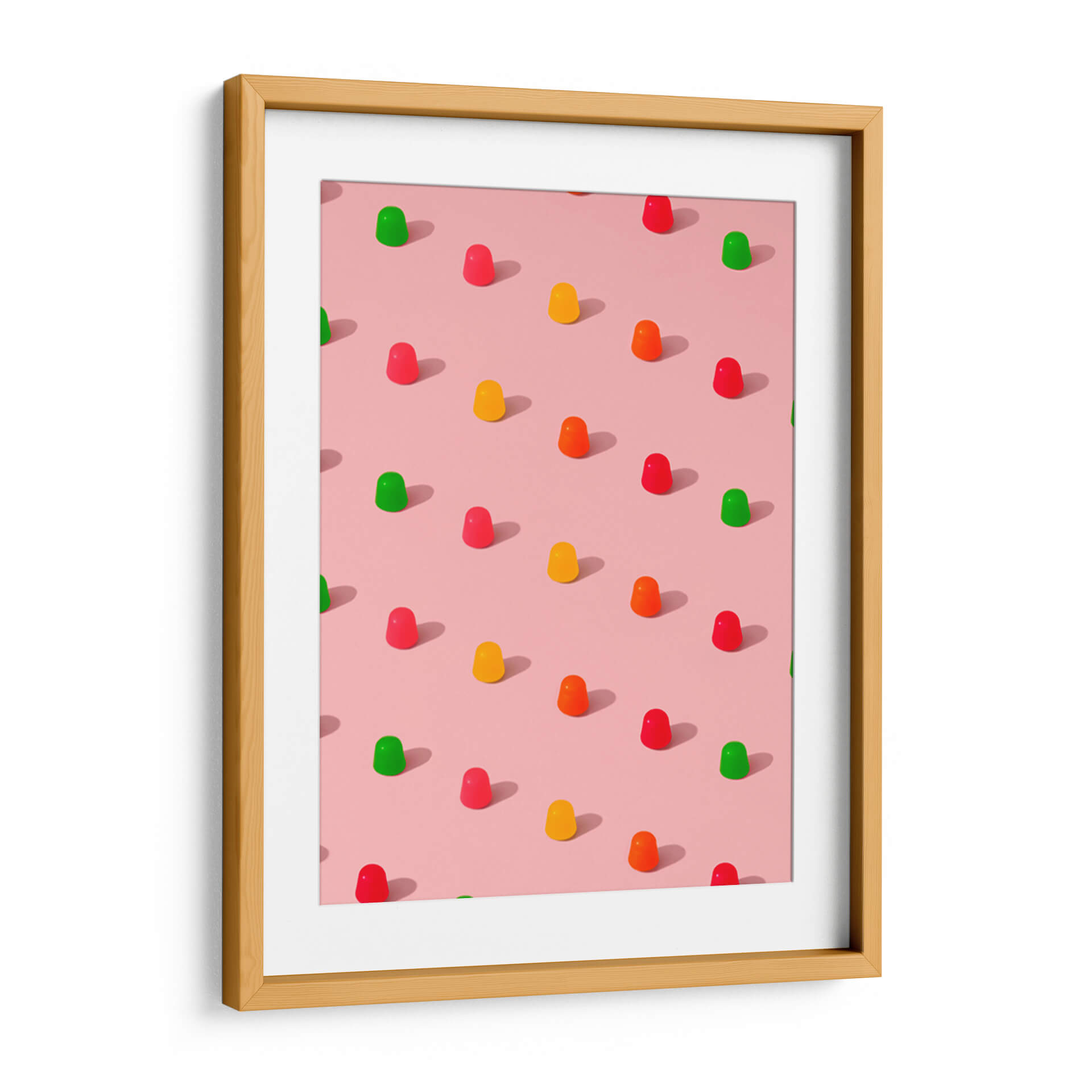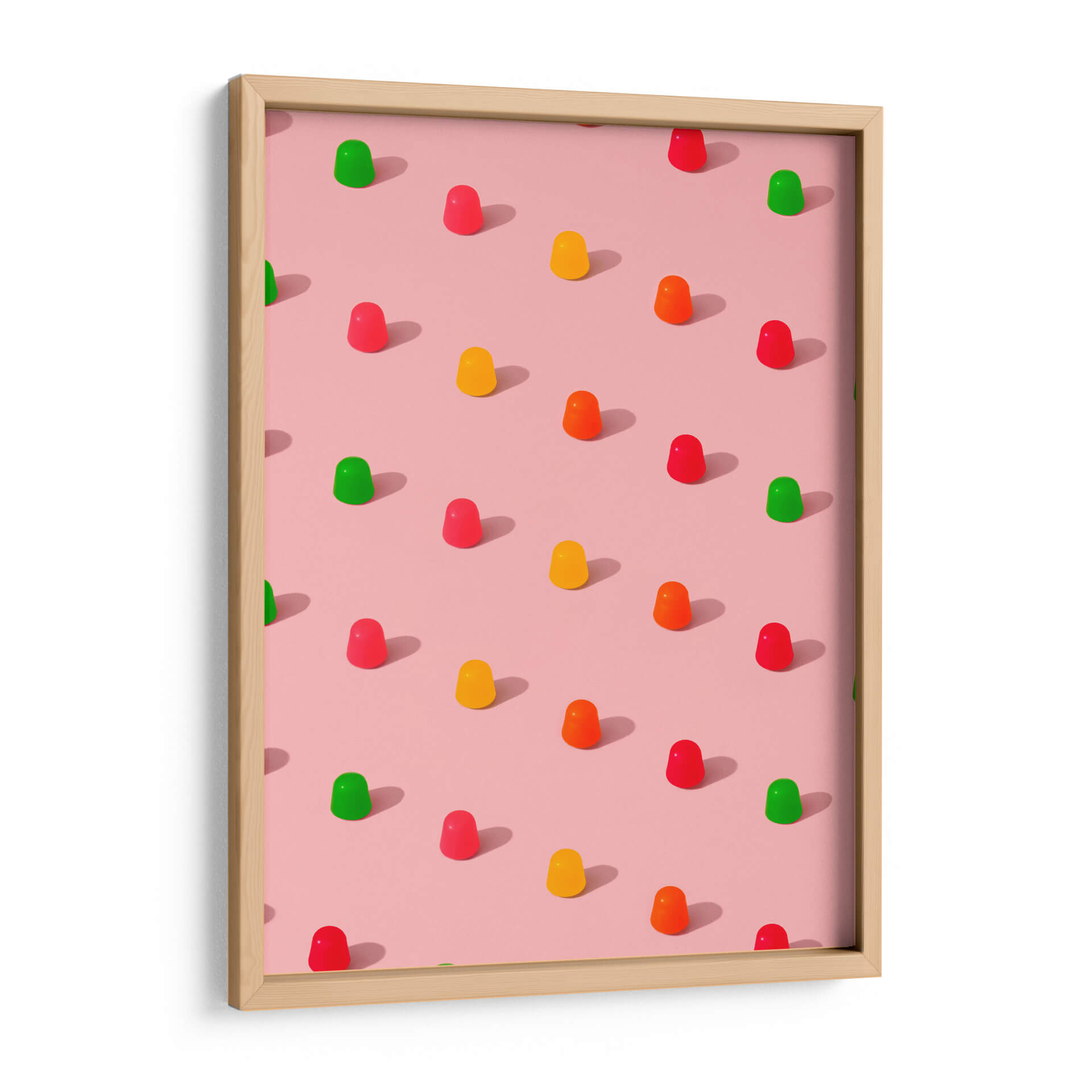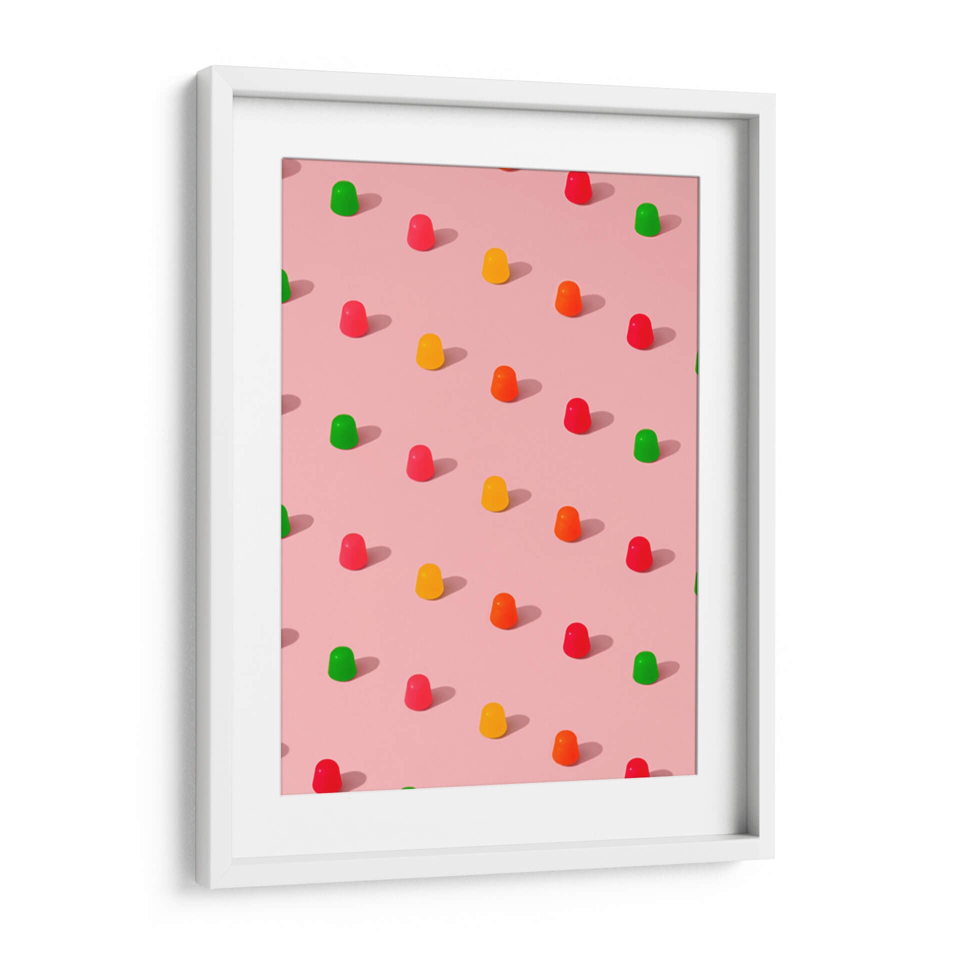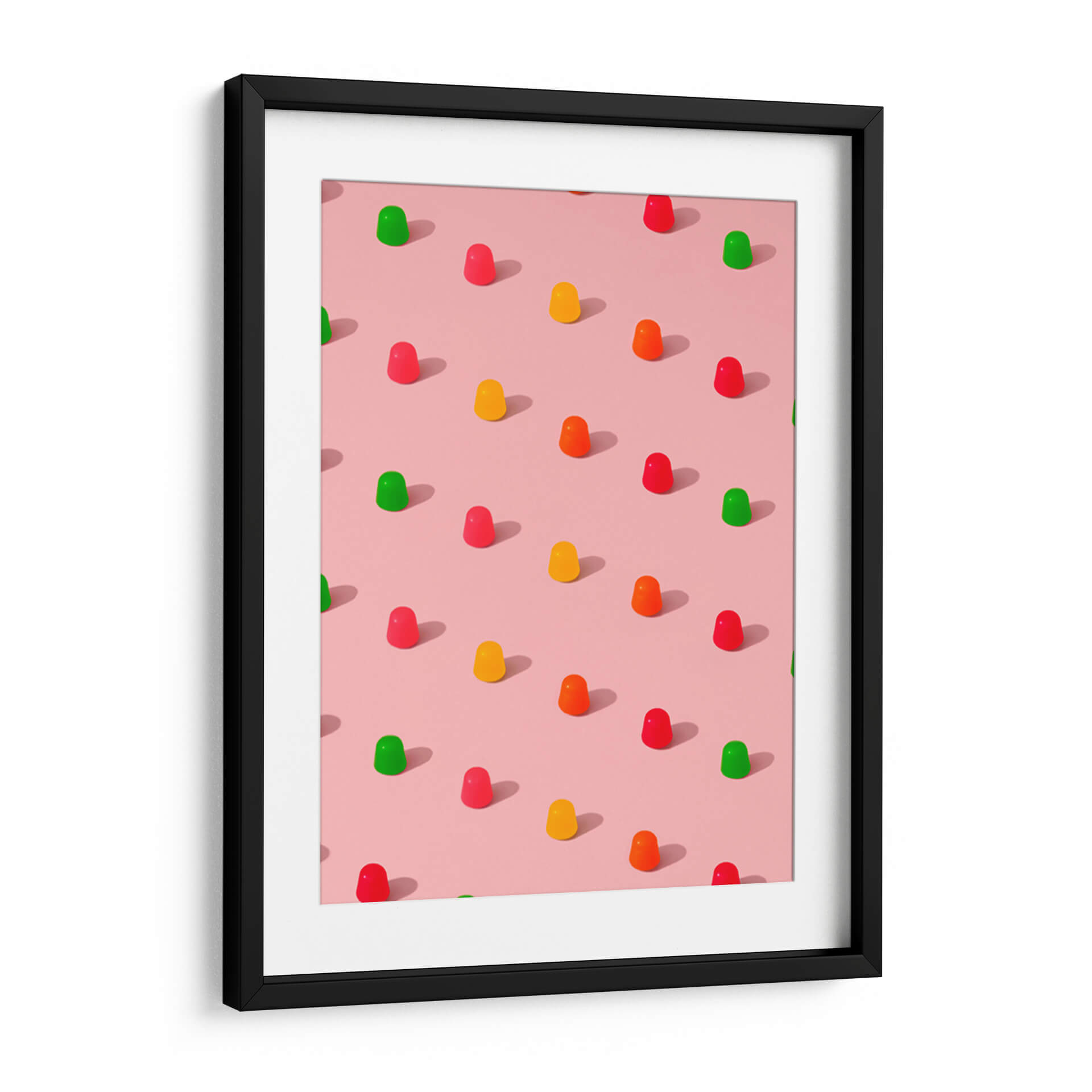 Sumérgete en un mundo de dulzura y color con este cautivador cuadro decorativo, "Gomitas de caramelo con lunares - Patrón repetitivo sobre fondo rosa", del artista Tom Windeknecht. Esta obra maestra visual captura la esencia juguetona de las gomitas de caramelo, dispuestas en un patrón repetitivo y simétrico sobre un suave fondo rosa. La paleta de colores vibrantes, que incluye rojos intensos, amarillos alegres, naranjas energéticos y verdes refrescantes, contrasta maravillosamente con la base pastel, creando una composición visualmente atractiva y llena de vida. El estilo gráfico y la atención al detalle en cada gomita, junto con las sutiles sombras proyectadas, aportan una sensación de profundidad y realismo a la pieza. Este cuadro decorativo es ideal para añadir un toque de alegría y modernidad a cualquier espacio. Su diseño pop y su atmósfera divertida lo convierten en la elección perfecta para la decoración de habitaciones infantiles, cocinas, salas de estar o incluso oficinas que buscan un ambiente más dinámico y optimista. Transforma tu hogar en un oasis de felicidad con esta pieza única que evoca recuerdos de infancia y momentos de puro disfrute. Es una obra que inspira sonrisas y conversaciones, perfecta para quienes aprecian el arte contemporáneo con un giro lúdico y encantador. Añade un toque de color y originalidad a tus paredes.