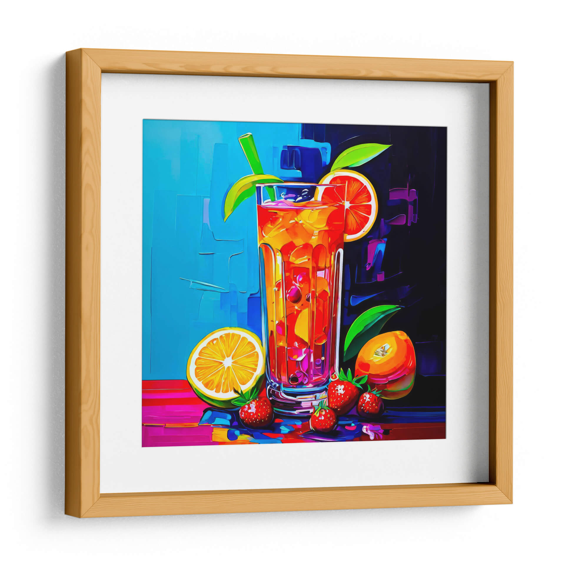 Sumérgete en la vibrante frescura de "Jaibol", una obra de arte digital que captura la esencia de un refrescante cóctel de frutas con una explosión de color y energía. Este cuadro decorativo es una celebración de los sentidos, presentando un vaso alto rebosante de una bebida escarlata, adornado con rodajas de naranja jugosa y detalles de hielo que brillan bajo una luz intensa. Alrededor, fresas rojas y vibrantes, junto a una rodaja de limón y una fruta exótica, complementan la escena, creando una composición dinámica y apetitosa. La paleta de colores, dominada por azules eléctricos, naranjas ardientes, rojos intensos y verdes exuberantes, evoca una sensación de alegría y vitalidad, perfecta para espacios que buscan un toque de optimismo y modernidad. El estilo artístico, con pinceladas audaces y un enfoque semi-abstracto, confiere una textura rica y una profundidad cautivadora a la pieza. "Jaibol" es ideal para añadir un punto focal llamativo a cocinas, comedores, o cualquier estancia que desee un estallido de color y una atmósfera alegre y sofisticada. Un verdadero deleite visual que invita a la celebración.