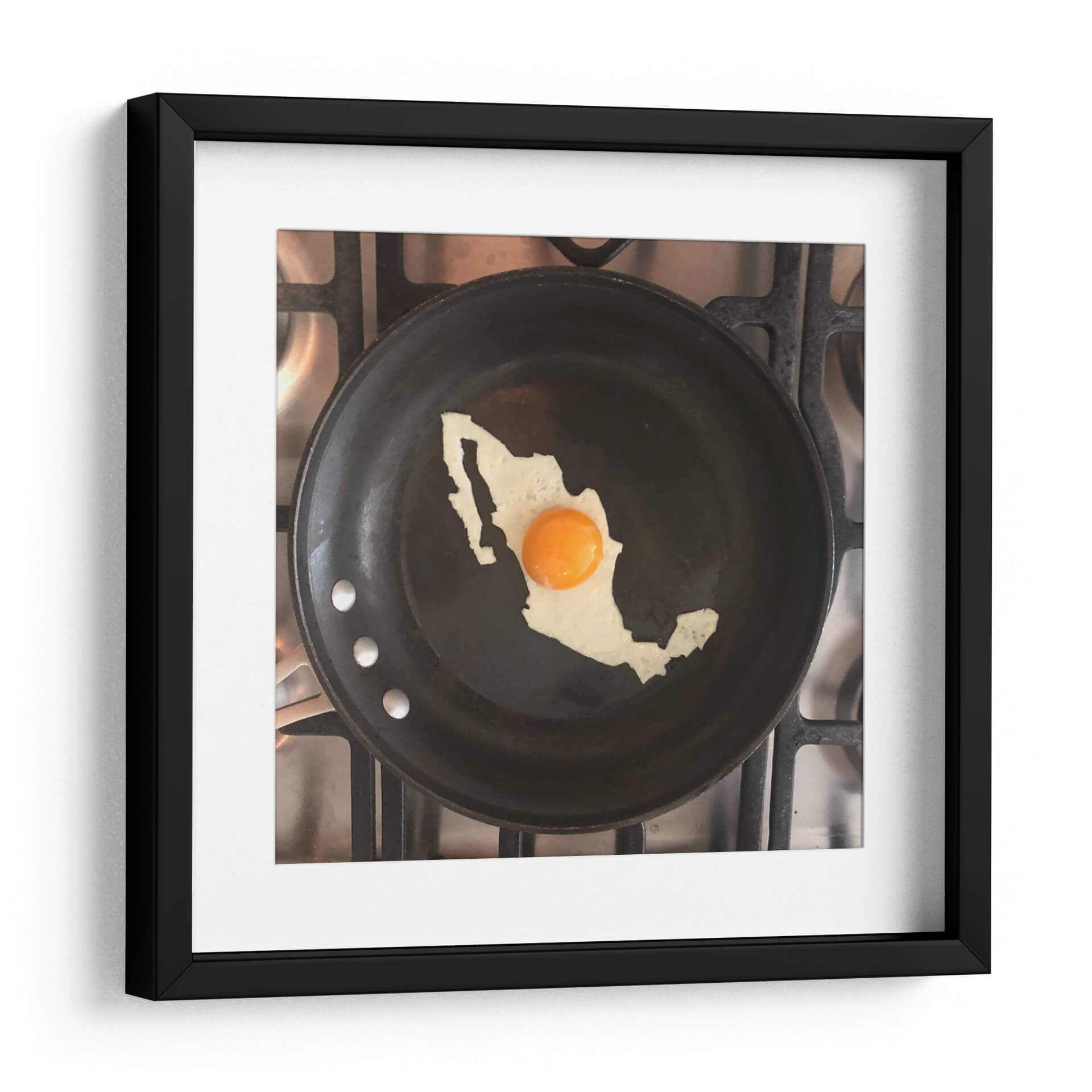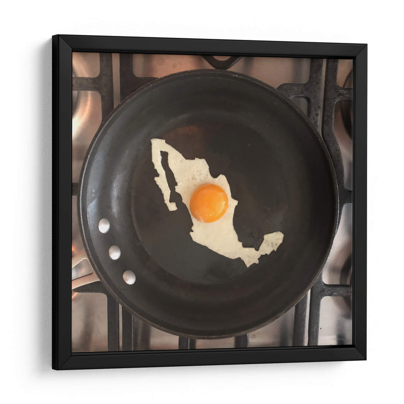 Captura la esencia de un desayuno icónico con esta obra de arte única titulada 'México' por Eggshibit. La imagen presenta una sartén negra colocada sobre una estufa, y dentro de ella, un huevo frito perfectamente cocinado que, de manera ingeniosa, ha adoptado la silueta del mapa de México. El contraste entre el blanco vibrante de la clara del huevo, el amarillo intenso de la yema y el fondo oscuro de la sartén crea una composición visualmente atractiva y llena de significado. Esta pieza de arte contemporáneo juega con la idea de lo cotidiano y lo nacional, fusionando la cultura gastronómica con la identidad de un país. Es una representación minimalista pero poderosa que evoca familiaridad, calidez y un toque de humor. El estilo fotográfico realista y la composición central hacen que el mapa de México en el huevo sea el foco indiscutible. Ideal para cocinas modernas, comedores o espacios que busquen un detalle original y conversacional. Añade un toque de sabor y orgullo a tu decoración con este lienzo que celebra a México de una manera deliciosa y artística.