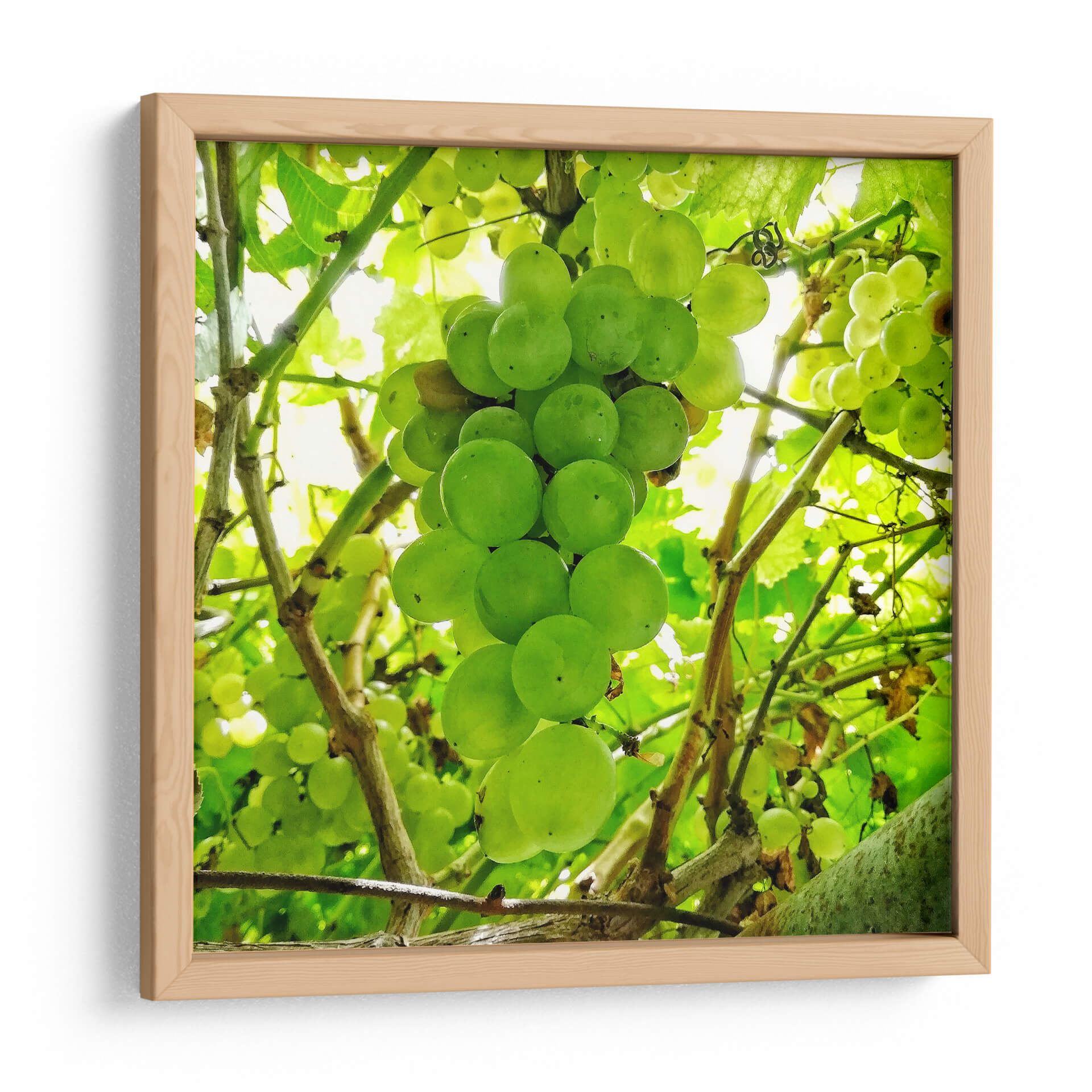 Embárcate en un viaje sensorial con "Parra", una obra de arte que captura la esencia vibrante de la naturaleza en su máxima expresión. Este cuadro decorativo presenta un primer plano detallado de un racimo de uvas verdes, exuberante y listo para ser cosechado, rodeado de su follaje frondoso y las ramas que lo sustentan. La luz natural se filtra a través de las hojas, creando un juego de luces y sombras que resalta la textura jugosa de las uvas y la vitalidad del entorno. Los tonos verdes, desde el esmeralda brillante de las frutas hasta los matices más profundos de las hojas, evocan una sensación de frescura, salud y abundancia. La composición, centrada en la magnificencia del racimo, invita a la contemplación y a la apreciación de los detalles más finos de la agricultura y la naturaleza. "Parra" es una pieza ideal para añadir un toque de vida y color a cocinas, comedores o cualquier espacio donde se desee una atmósfera de vitalidad y conexión con la tierra. Este cuadro decorativo es perfecto para aquellos que buscan una decoración que inspire tranquilidad y celebre la belleza del mundo natural.