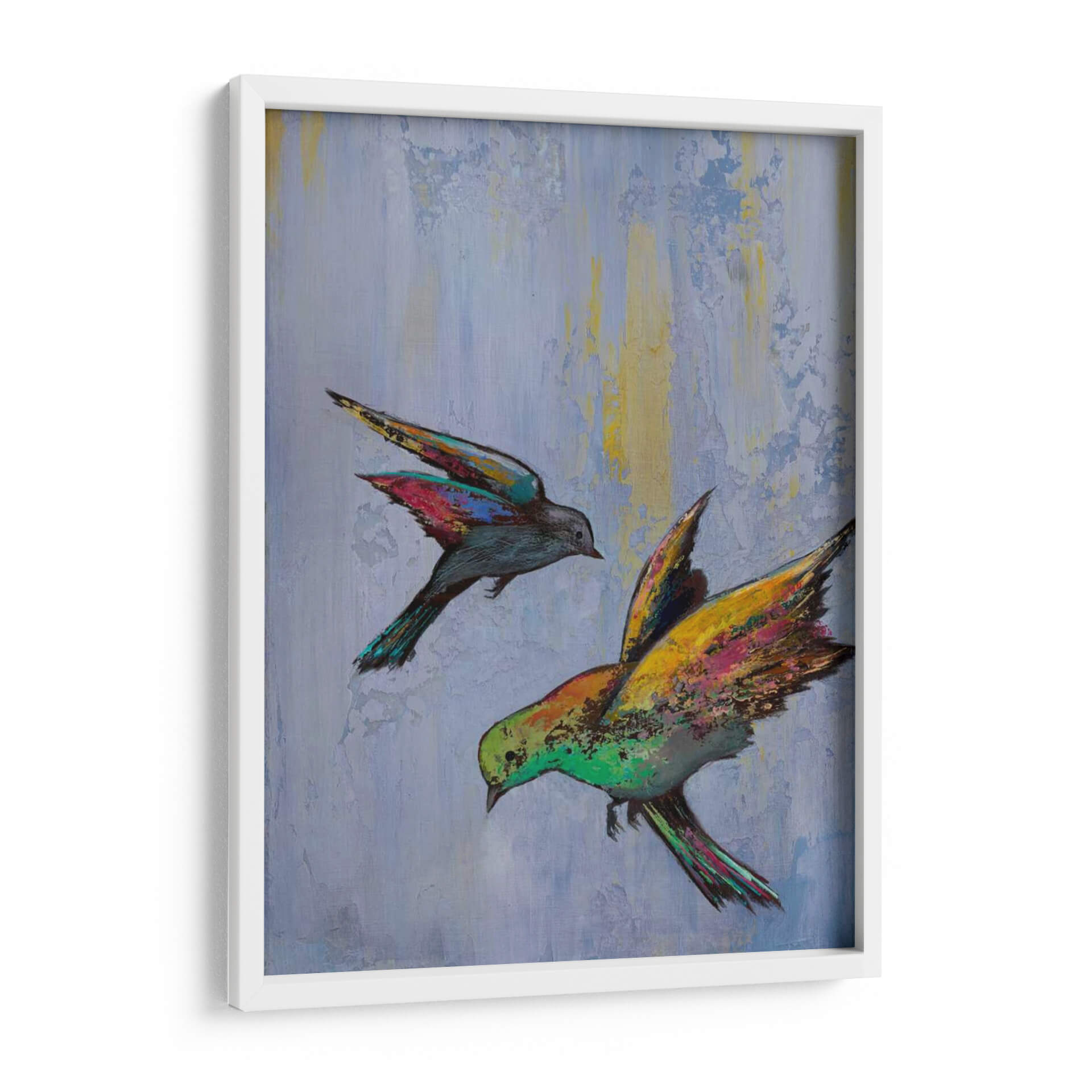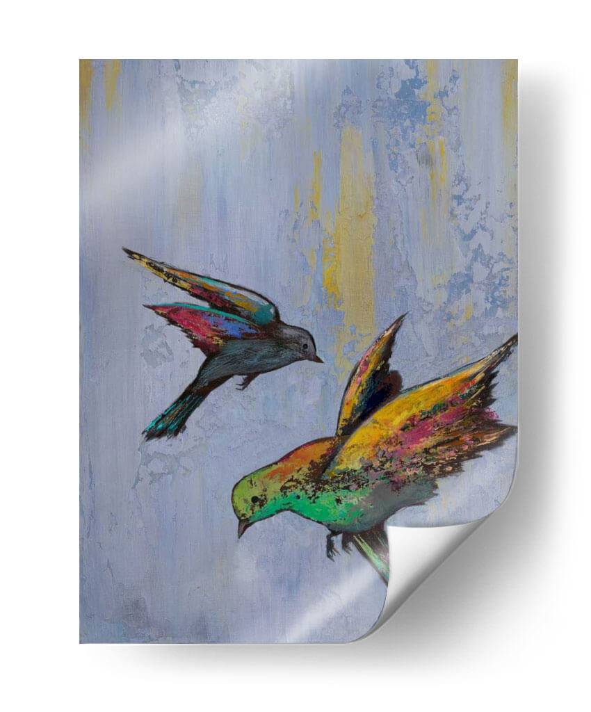 Embárcate en un viaje visual con 'Alas Brillantes II', una cautivadora obra de arte que captura la libertad y la belleza del vuelo. El artista Mehmet Altug presenta dos aves en pleno movimiento, con un estilo que combina lo abstracto con toques figurativos. La paleta de colores es vibrante y audaz, con el verde, amarillo, azul y toques de fucsia que contrastan maravillosamente con el fondo texturizado en tonos grises y azules pálidos. Las pinceladas, visibles y enérgicas, otorgan una sensación de movimiento y vitalidad a la pieza, sugiriendo la textura de las plumas y la ligereza del aire. Esta composición dinámica crea una atmósfera de optimismo y renovación, perfecta para añadir un punto focal lleno de vida a cualquier espacio. Ya sea que busques decorar tu sala de estar, dormitorio u oficina, este cuadro decorativo aportará una dosis de color y elegancia. La representación de las aves en pleno vuelo evoca sentimientos de aspiración y libertad, convirtiéndola en una adición inspiradora para tu hogar u oficina, un verdadero testimonio del arte contemporáneo.