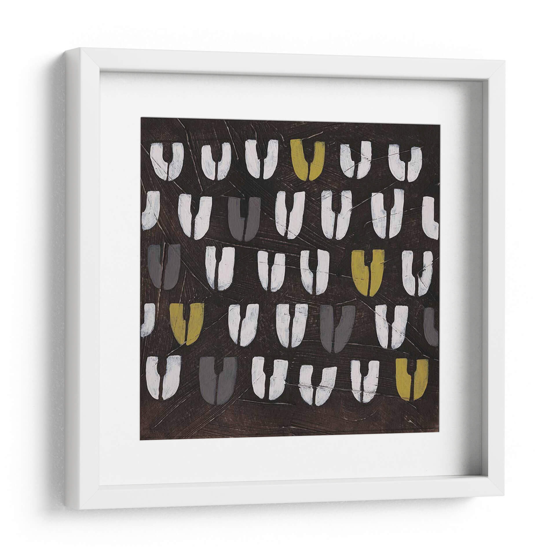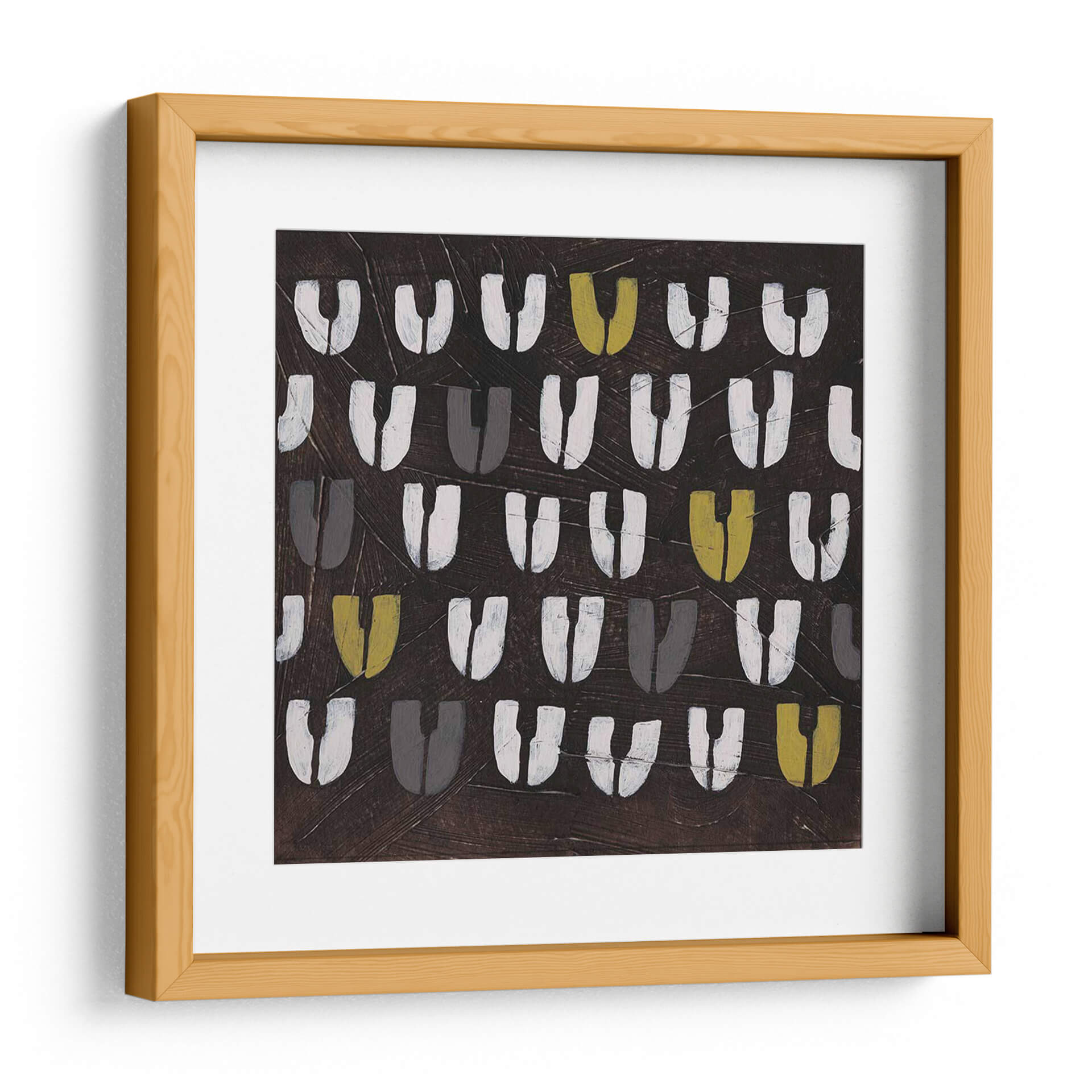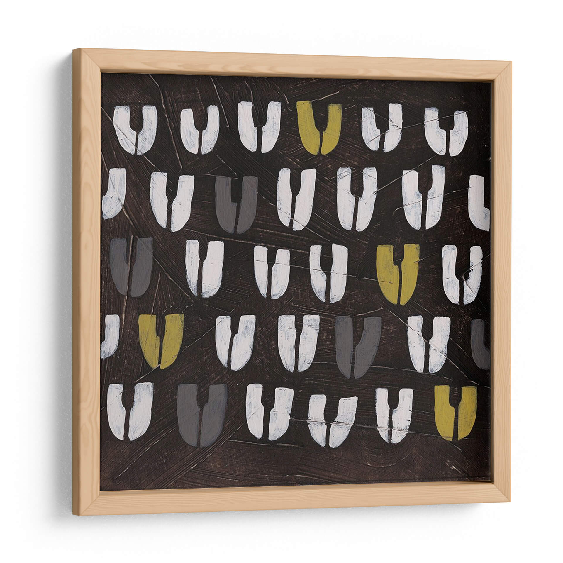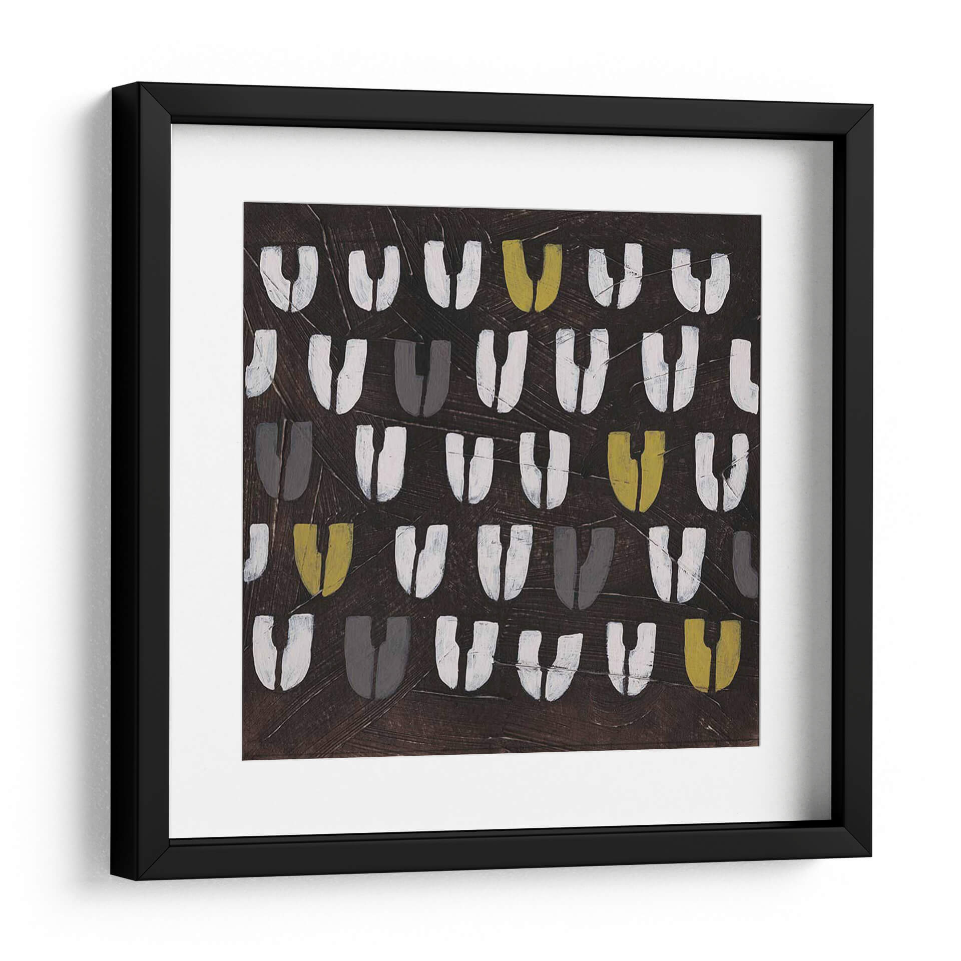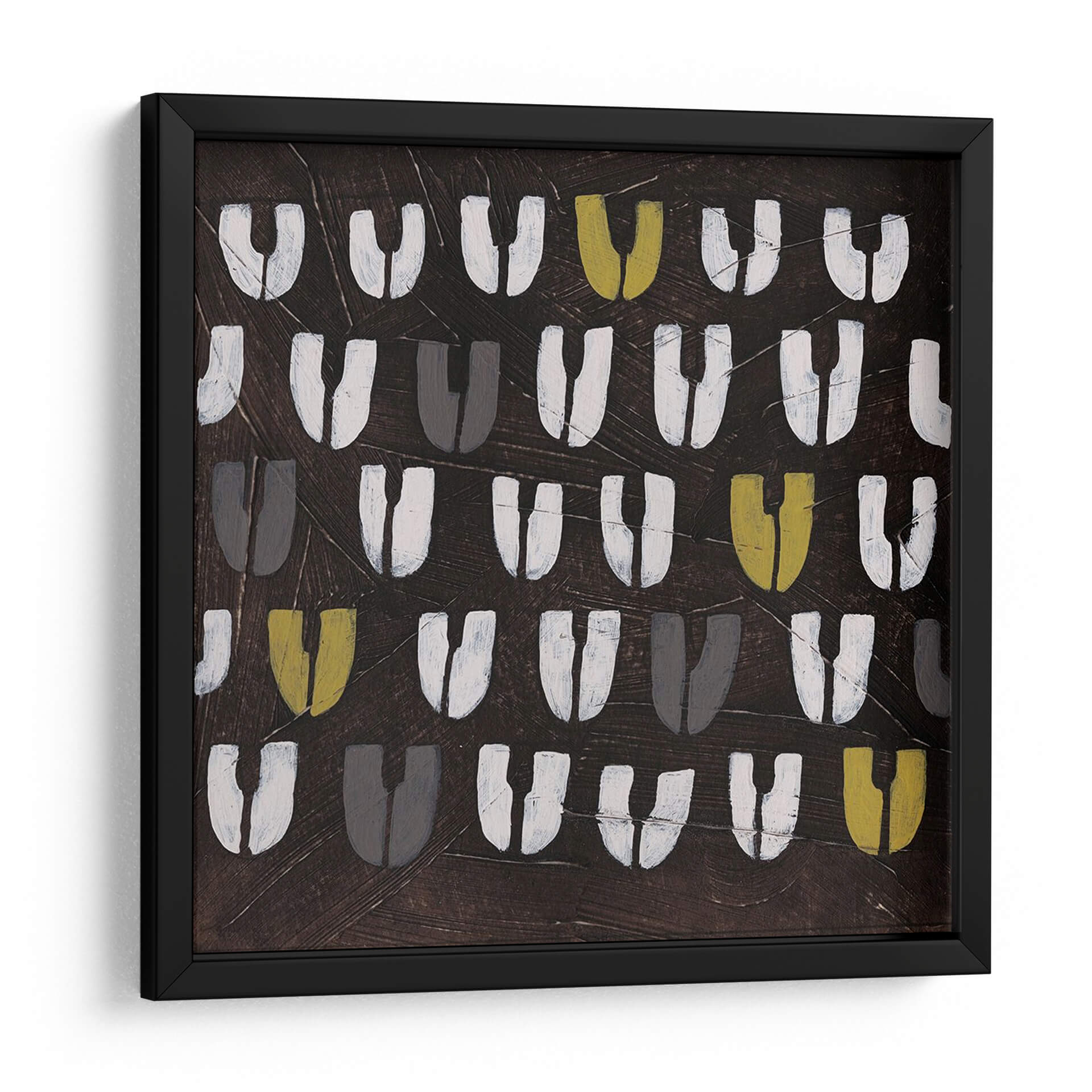 Sumérgete en la cautivadora abstracción de "Algoritmo V", una obra de arte contemporáneo de June Erica Vess que invita a la contemplación. La pieza se caracteriza por una fascinante repetición de formas orgánicas, reminiscentes de pétalos o brotes, dispuestas en un patrón rítmico sobre un fondo texturizado de tonos oscuros y terrosos. La paleta de colores, sutil pero impactante, combina el blanco puro y el gris carbón con toques vibrantes de amarillo mostaza, creando un equilibrio visual dinámico que atrae la mirada. La textura en el fondo, sugerida por pinceladas visibles y un acabado ligeramente desgastado, aporta profundidad y un carácter artesanal único a la composición. Este cuadro decorativo abstracto es ideal para espacios que buscan un toque de sofisticación moderna y una conexión con la naturaleza o los patrones subyacentes del mundo. Su diseño modular y su paleta de colores versátil lo convierten en una adición perfecta para salas de estar contemporáneas, oficinas minimalistas o incluso dormitorios, añadiendo un punto focal intrigante sin abrumar el entorno. "Algoritmo V" no es solo una pieza decorativa, sino una invitación a explorar la belleza de la repetición y la sutil armonía del color en el arte abstracto.