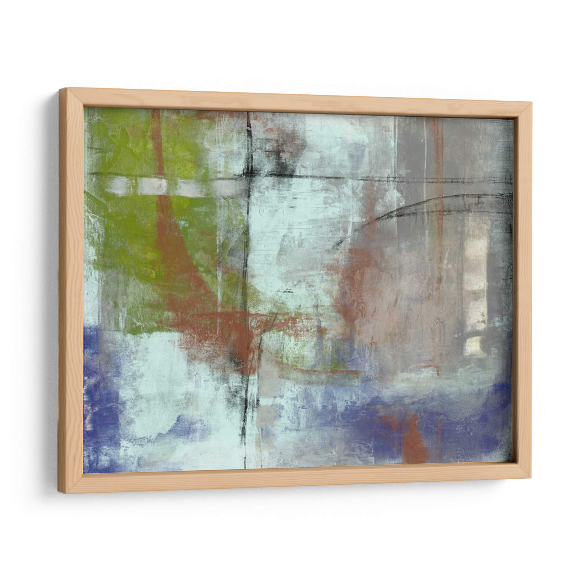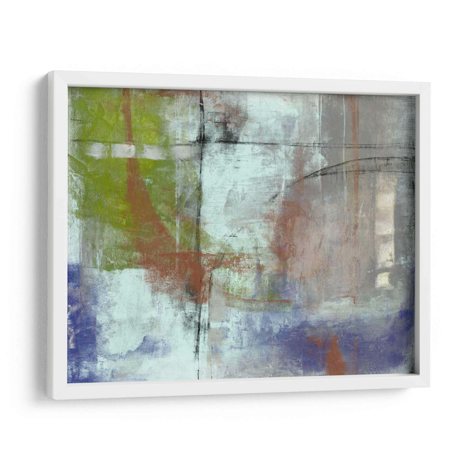 Sumérgete en la expresión artística de Jennifer Goldberger con "Arco Vibrante II", un cuadro decorativo que redefine la abstracción contemporánea. Esta obra cautiva con su audaz juego de texturas y una paleta de colores que fusiona verdes musgo profundos, toques terrosos de óxido y el sereno azul lavanda, todo ello puntuado por sutiles pinceladas de negro y blanco. Las capas de pintura, aplicadas con una técnica que sugiere profundidad y movimiento, crean un paisaje emocional que invita a la contemplación. Las líneas verticales y horizontales, entrelazadas con curvas orgánicas, aportan una estructura dinámica que evoca tanto la arquitectura urbana como la fluidez de la naturaleza. "Arco Vibrante II" es más que una simple pieza decorativa; es una ventana a la introspección y un catalizador para la conversación, ideal para añadir un toque de sofisticación moderna a tu sala de estar, oficina o cualquier espacio que busque inspiración y carácter. Transforma tu entorno con este lienzo abstracto que promete capturar miradas y estimular la imaginación, convirtiéndose en el punto focal de tu decoración.