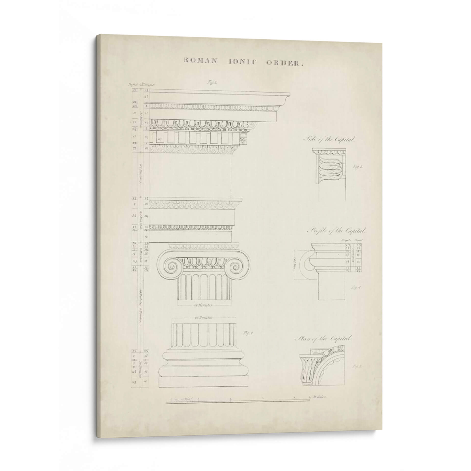 Embárcate en un viaje arquitectónico con nuestro exclusivo cuadro decorativo 'Arquitectura Griega y Romana V', una obra maestra de Thomas Kelly que captura la magnificencia de los órdenes clásicos. Este diseño, que evoca la elegancia atemporal de las estructuras antiguas, presenta un detallado estudio del orden jónico romano, con intrincados volutas y ornamentación que hablan de un legado de diseño sofisticado. La paleta de colores neutros, dominada por tonos beige y marfil, aporta una sensación de serenidad y erudición, haciendo de esta pieza un complemento perfecto para espacios que buscan un toque de refinamiento intelectual y calma. Ideal para bibliotecas, estudios, oficinas o cualquier rincón de tu hogar donde desees infundir una atmósfera de conocimiento y estilo clásico. Este cuadro decorativo no es solo una pieza de arte, sino una ventana a la historia y la armonía del diseño arquitectónico, invitando a la contemplación y al aprecio por las formas que han definido la belleza a lo largo de los siglos. Añade una dimensión de profundidad y carácter a tu decoración con esta representación clásica.