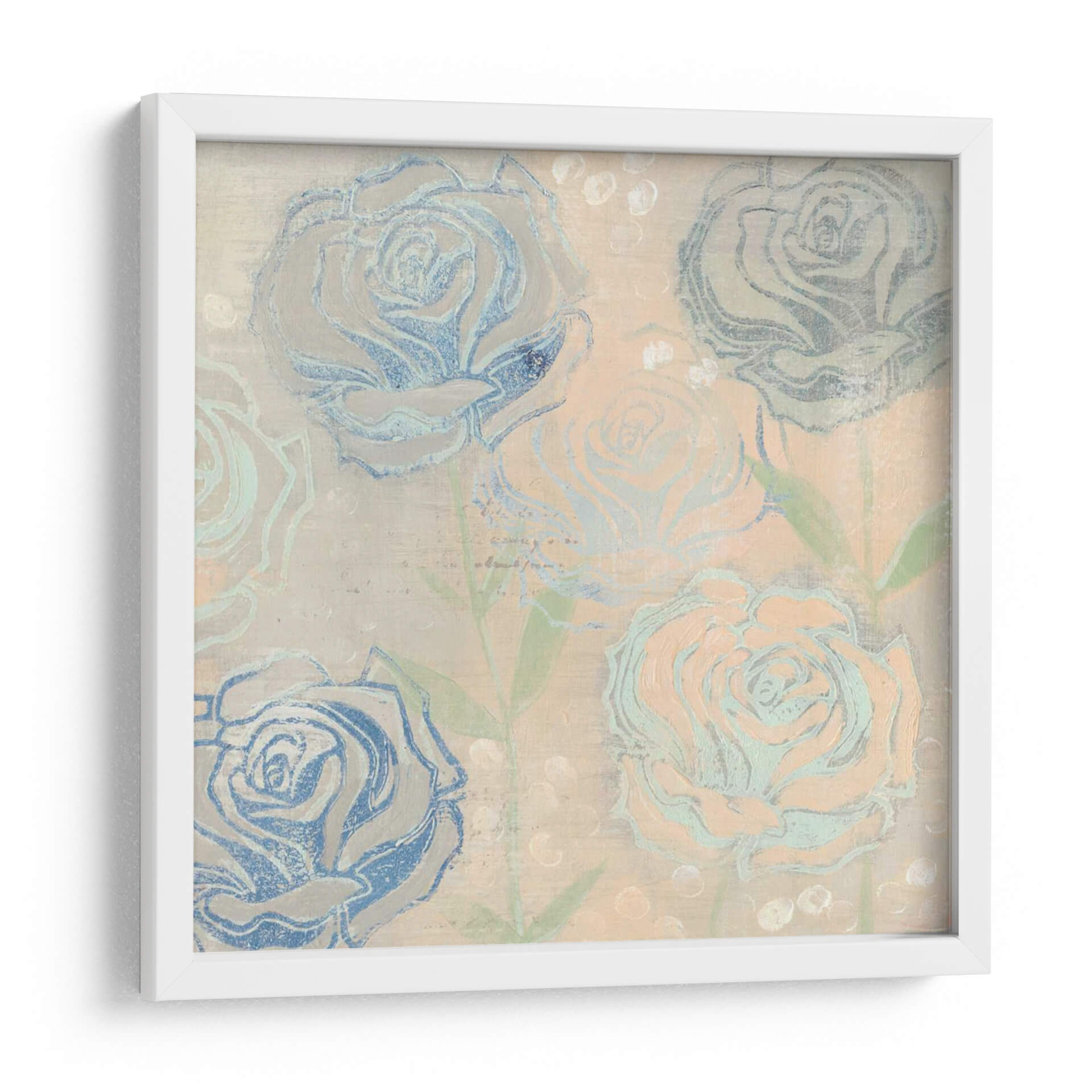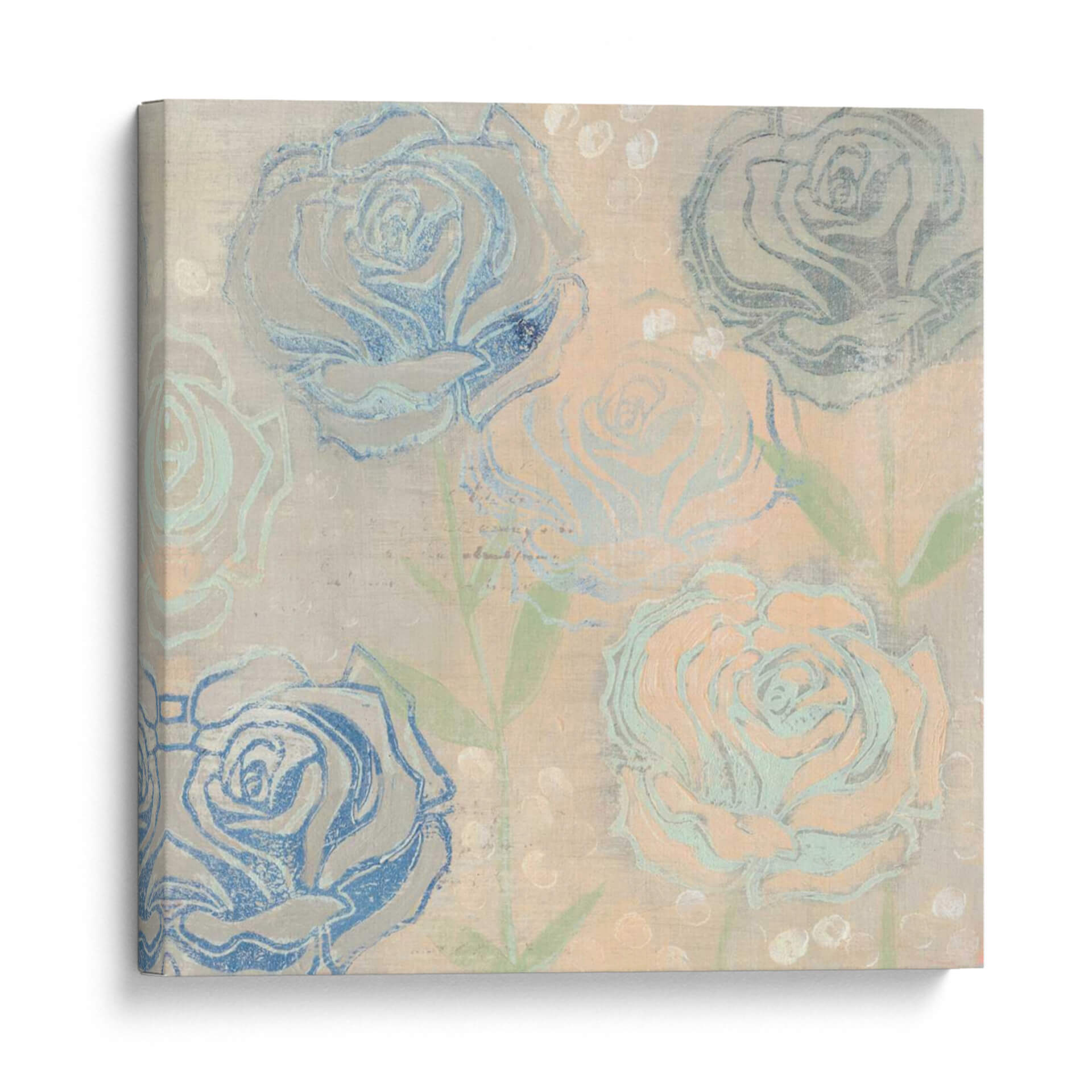 Transforma tu espacio con la delicadeza etérea de 'Cache Rose II' de Grace Popp. Este cuadro decorativo abstracto presenta un cautivador arreglo de rosas estilizadas en tonos pastel de azul pálido, melocotón suave y verde menta, todo sobre un fondo texturizado de lino en tono neutro. La composición evoca una sensación de calma y serenidad, con las formas florales apareciendo como delicados grabados sobre tela, sugiriendo una elegancia sutil y atemporal. Las pinceladas sutiles y la técnica de superposición de colores crean una profundidad visual y una atmósfera soñadora, perfecta para añadir un toque de sofisticación tranquila a cualquier habitación. Ideal para dormitorios, salones o espacios de trabajo que buscan inspiración y paz, este lienzo floral abstracto es una elección exquisita para quienes aprecian el arte contemporáneo con un toque romántico y delicado. Deja que la suave paleta de colores y las formas fluidas de 'Cache Rose II' aporten un aire de frescura y refinamiento a tu hogar, creando un oasis de serenidad visual que te invite a la contemplación y al bienestar.