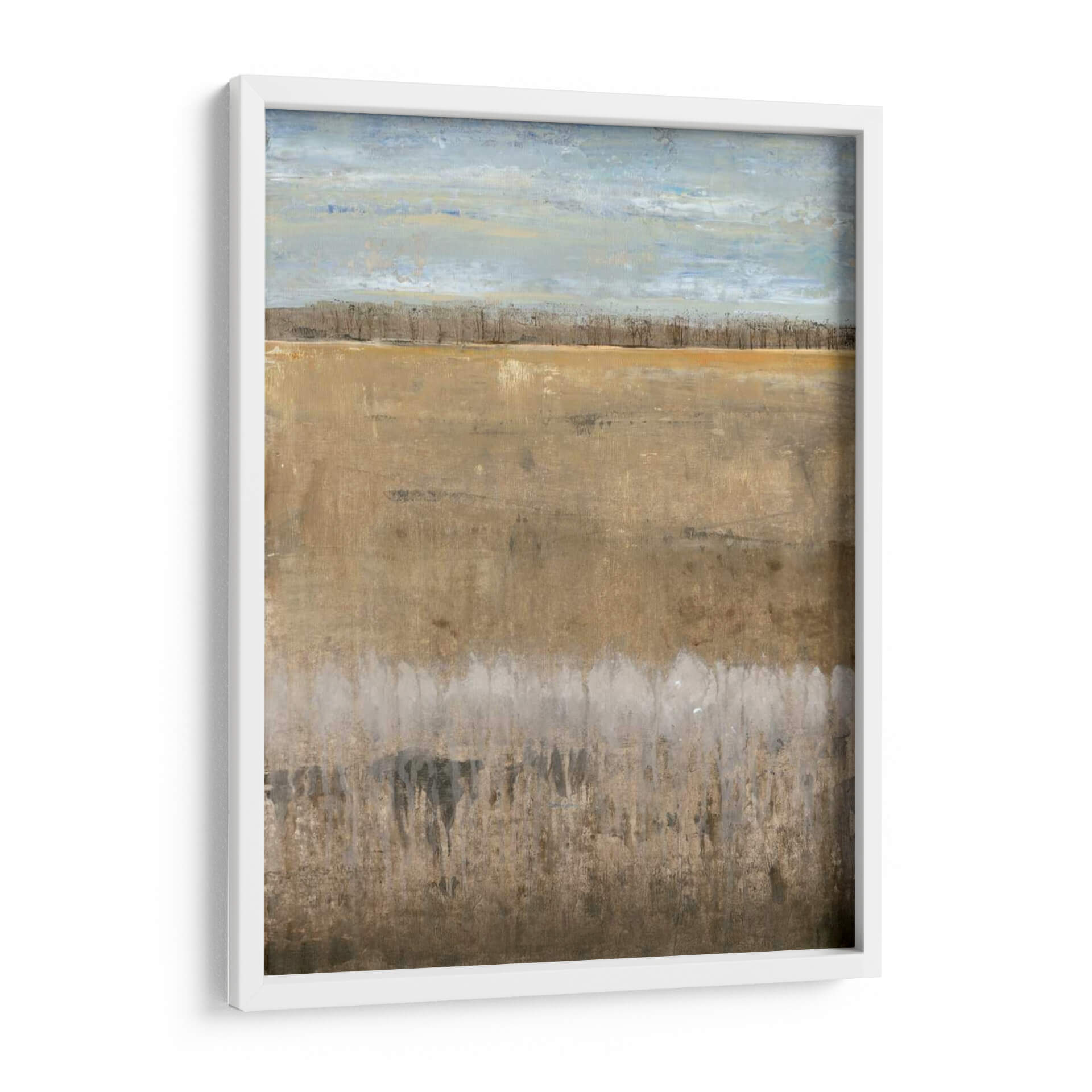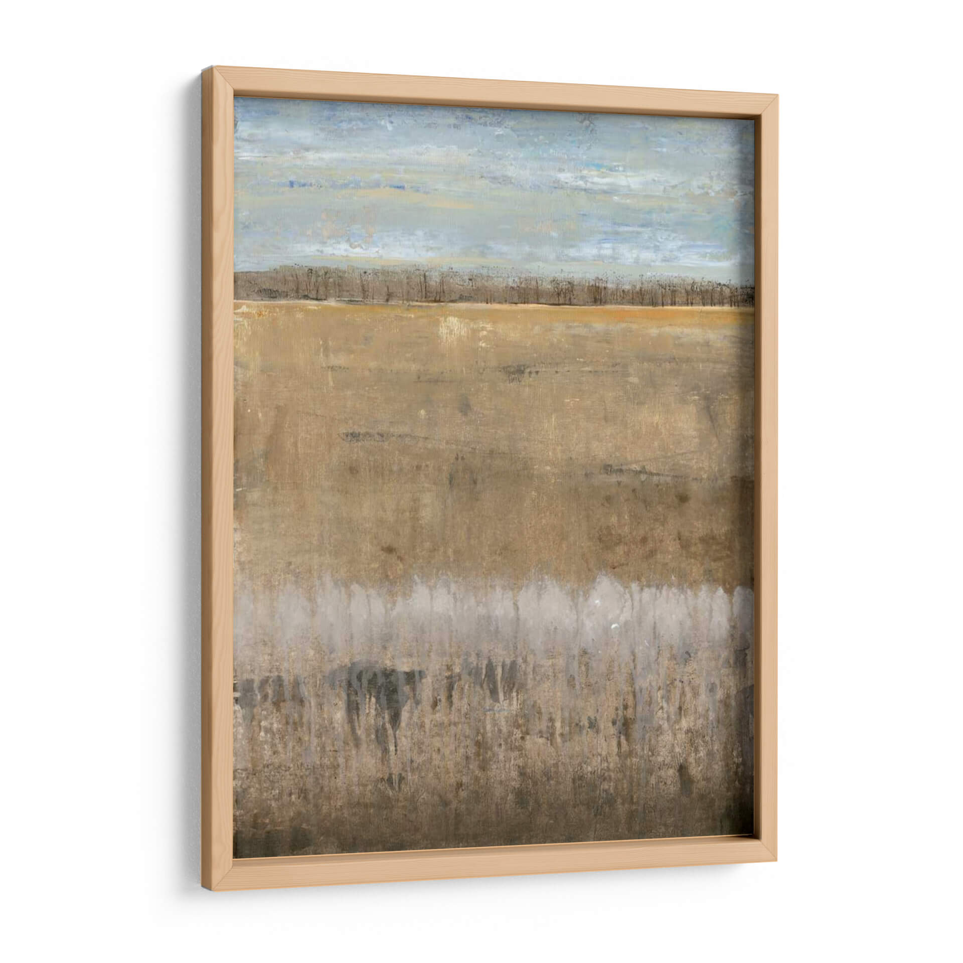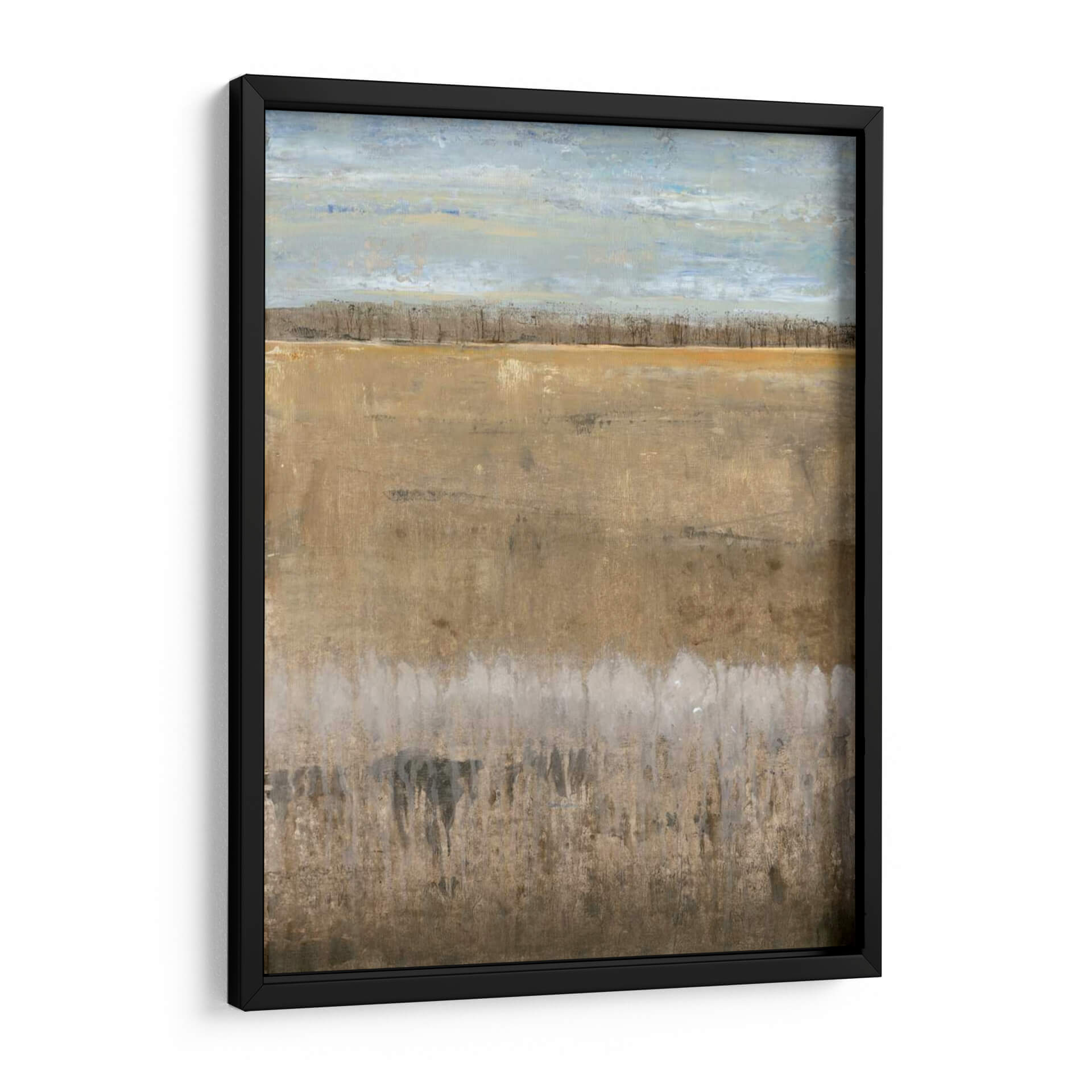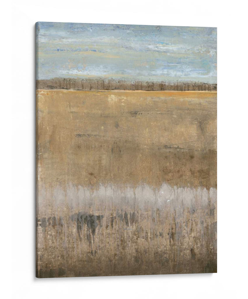 Sumérgete en la serenidad de "Crescendo II", una obra de arte abstracta del artista Tim O'Toole que evoca la calma de un paisaje atemporal. Los tonos tierra dominantes, que van desde ocres cálidos hasta marrones profundos, se entrelazan con pinceladas sutiles de azul cielo y gris plomizo, creando una atmósfera de introspección y paz. La composición, con una línea de horizonte sugerida por una franja de árboles estilizados, divide el lienzo en una vasta extensión de campo y un cielo etéreo, capturando la esencia de la naturaleza en su forma más pura y abstracta. Las texturas ricas y las veladuras aplicadas con maestría invitan a la contemplación, haciendo de este cuadro decorativo una pieza ideal para añadir un toque de sofisticación y tranquilidad a cualquier espacio. Ya sea en tu sala de estar, dormitorio u oficina, "Crescendo II" se convertirá en un punto focal sereno, una ventana a la calma que transforma tu entorno y refleja un gusto por el arte contemporáneo sutil y evocador.