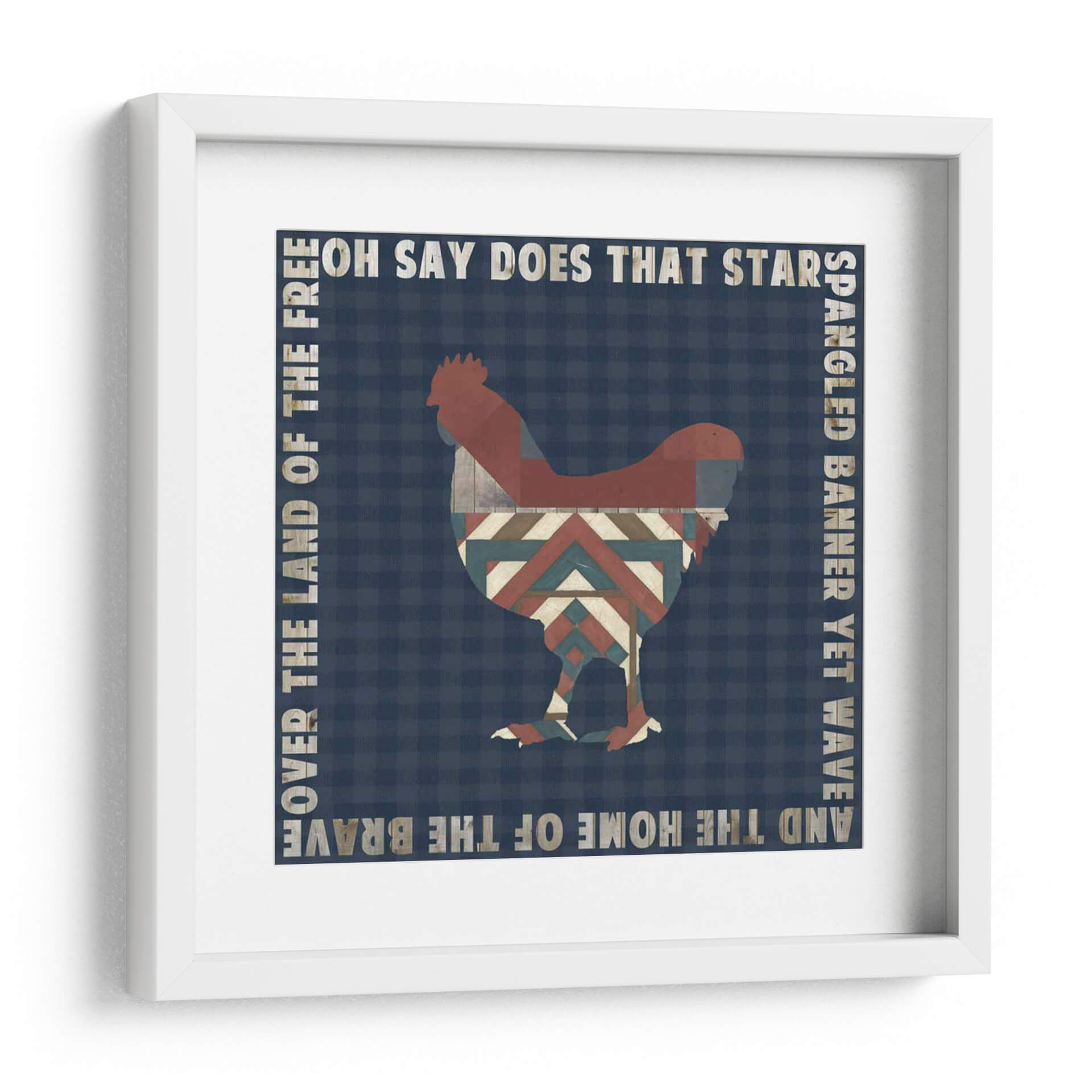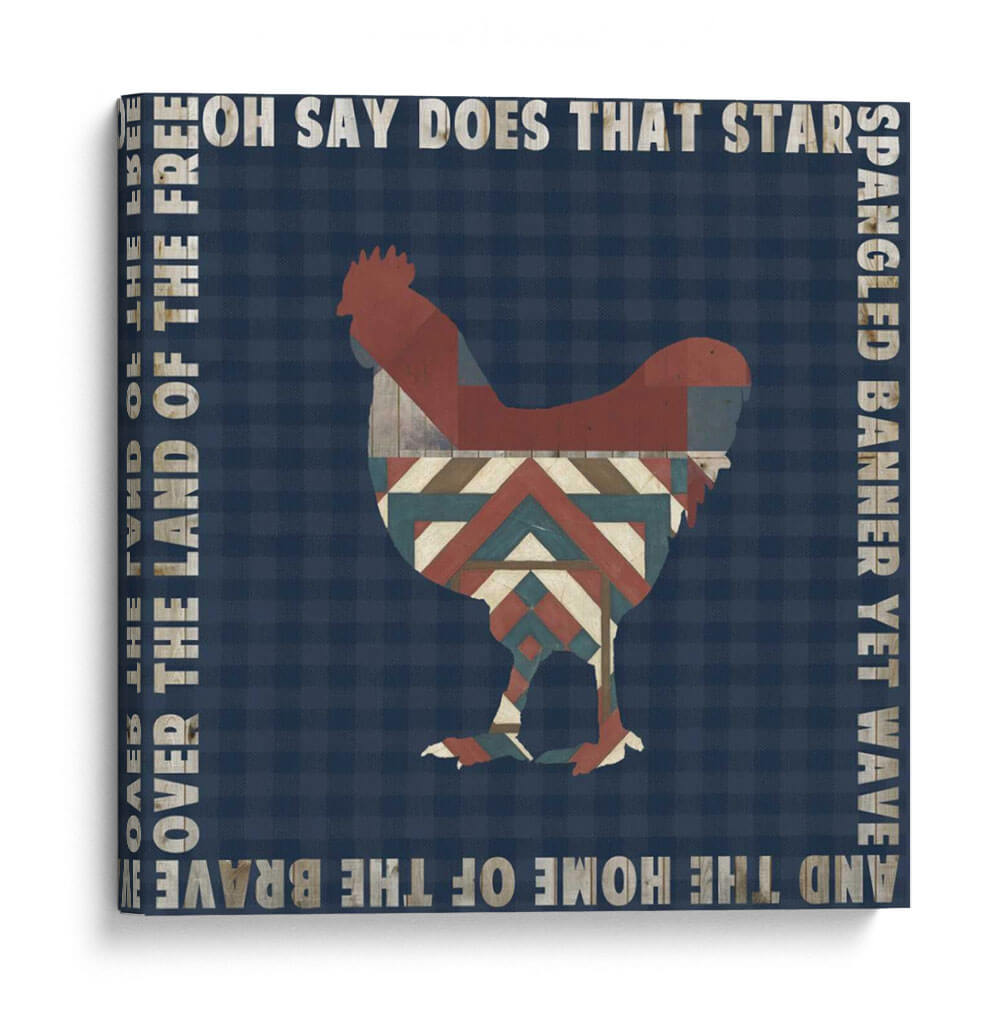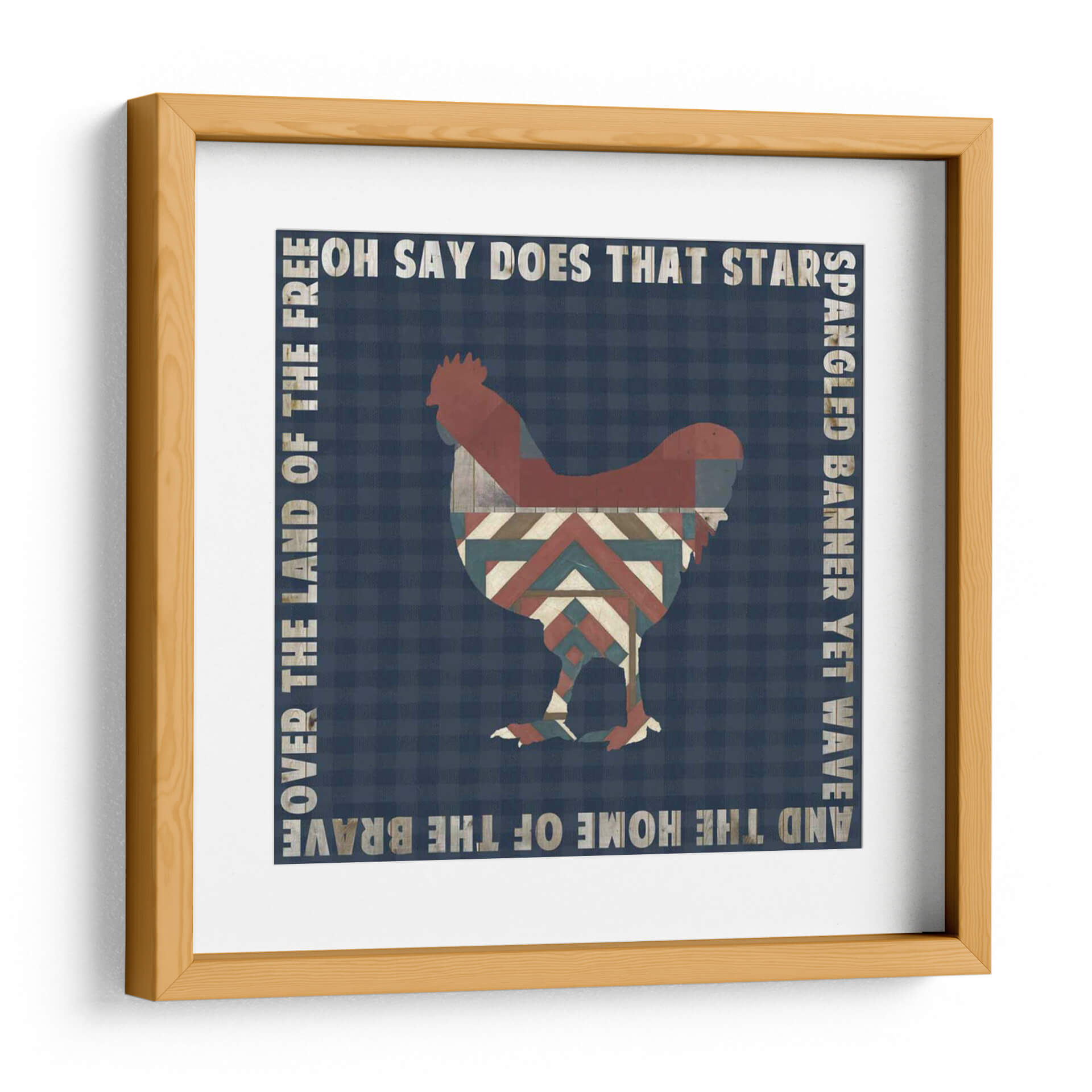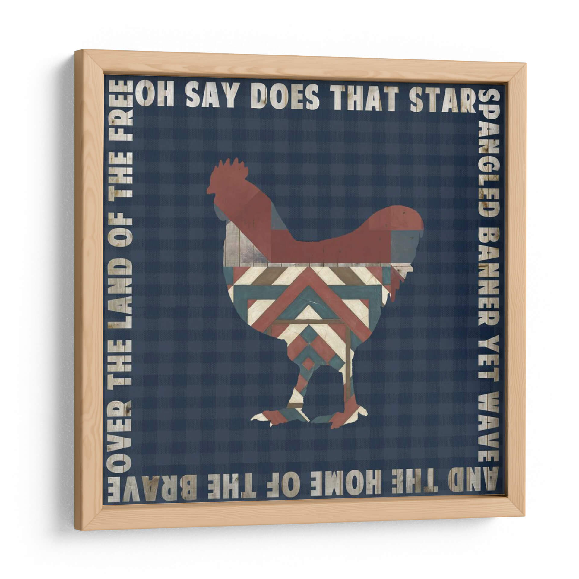 Celebra el espíritu patriótico con este cautivador cuadro decorativo, "Cuarto En La Colección De La Granja H." del artista Studio W. La obra presenta una silueta estilizada de un gallo, un símbolo clásico de la vida rural y la audacia, construido con un intrincado patrón geométrico que evoca la bandera estadounidense. Los colores predominantes, rojo, blanco y azul, se fusionan con toques de madera rústica y tonos tierra, creando una paleta rica y texturizada que atrae la mirada. El fondo de cuadros escoceses en azul marino añade un aire de encanto campestre y tradición. Este cuadro es perfecto para infundir carácter y un toque de nostalgia americana a tu sala de estar, comedor o incluso a un espacio de oficina que busque inspiración. Su diseño único y su resonancia temática lo convierten en una pieza de conversación ideal, aportando calidez, orgullo y un estilo distintivo a cualquier ambiente. Añade esta obra a tu colección para un toque de arte que honra las raíces y la identidad.