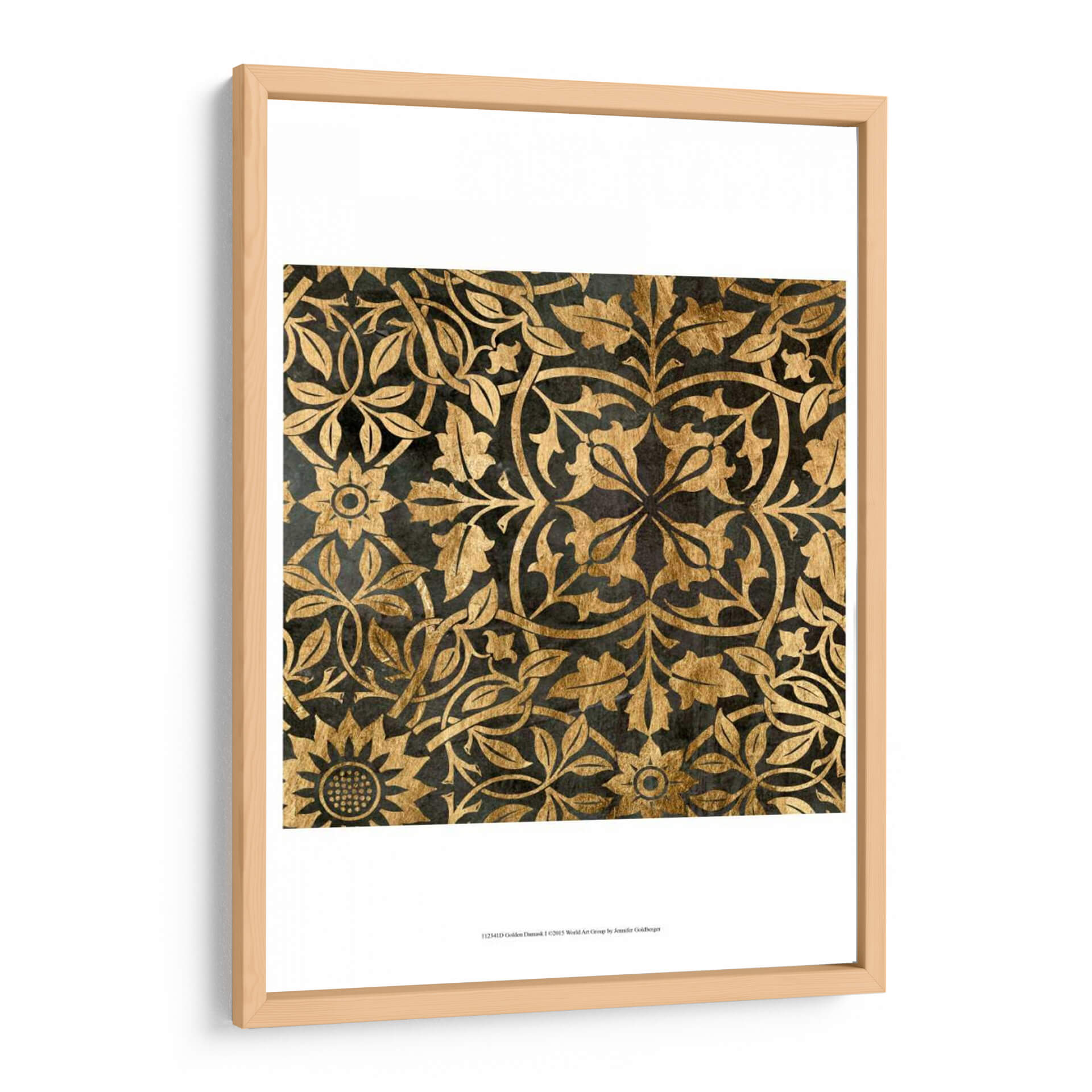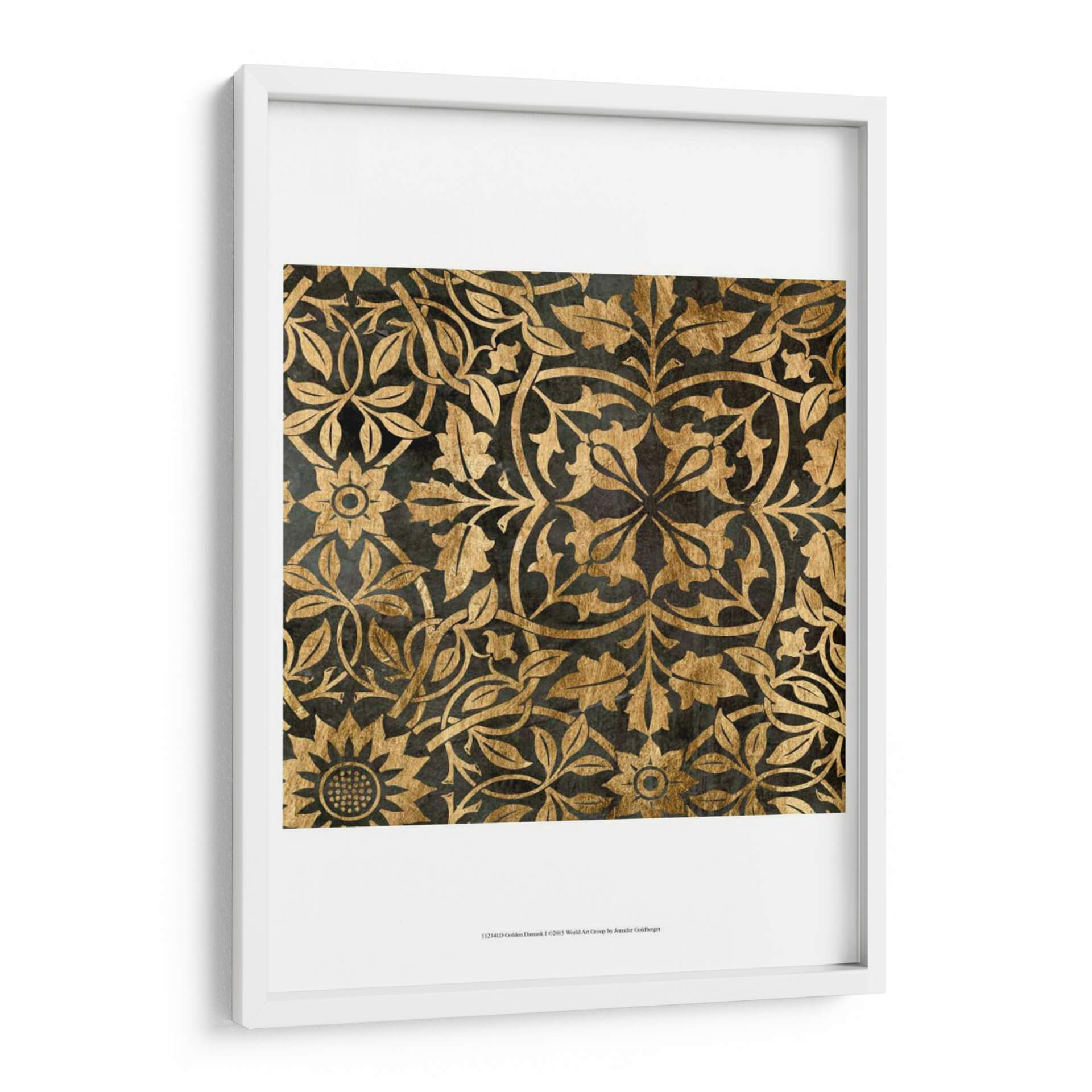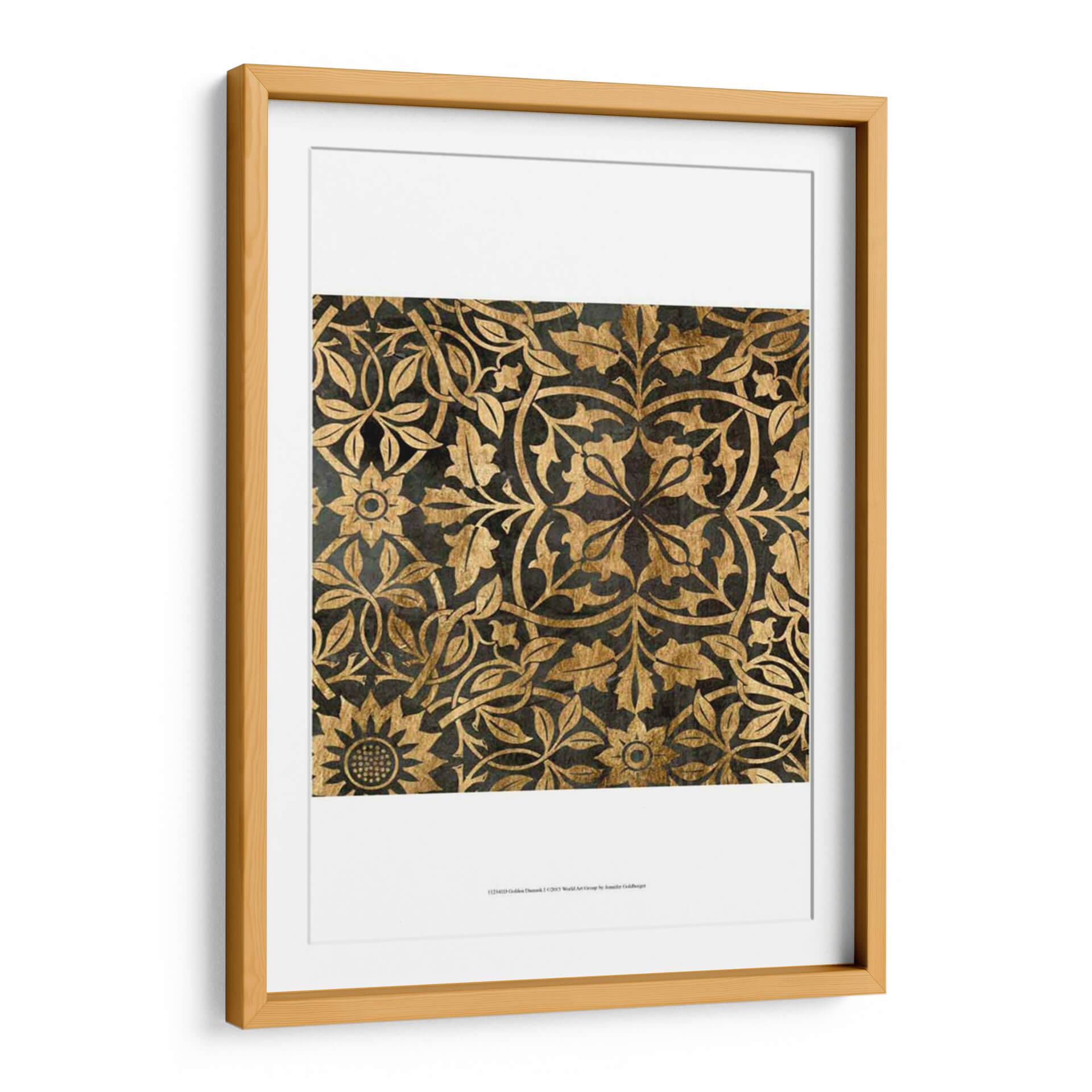 Sumérgete en la opulencia y el detalle intrincado de "Damasco Dorado I", una obra de arte de Jennifer Goldberger que evoca elegancia atemporal. Este cuadro decorativo presenta un patrón botánico damasceno en tonos dorados vibrantes sobre un fondo oscuro y texturizado, creando un contraste visualmente impactante. Las volutas y las flores estilizadas se entrelazan en una composición simétrica y armoniosa, que recuerda a los ricos textiles y los intrincados diseños de épocas pasadas. La paleta de colores, dominada por el oro brillante y los negros profundos, confiere una sensación de lujo y sofisticación, haciendo de esta pieza un acento perfecto para espacios que buscan un toque de glamour y refinamiento. Ideal para añadir un punto focal histórico y artístico a salones, comedores o estudios, "Damasco Dorado I" inspira admiración y añade una dimensión de opulencia clásica a la decoración moderna. Su diseño detallado y su rica paleta de colores lo convierten en una elección excepcional para quienes aprecian el arte con un legado ornamental y una ejecución contemporánea.