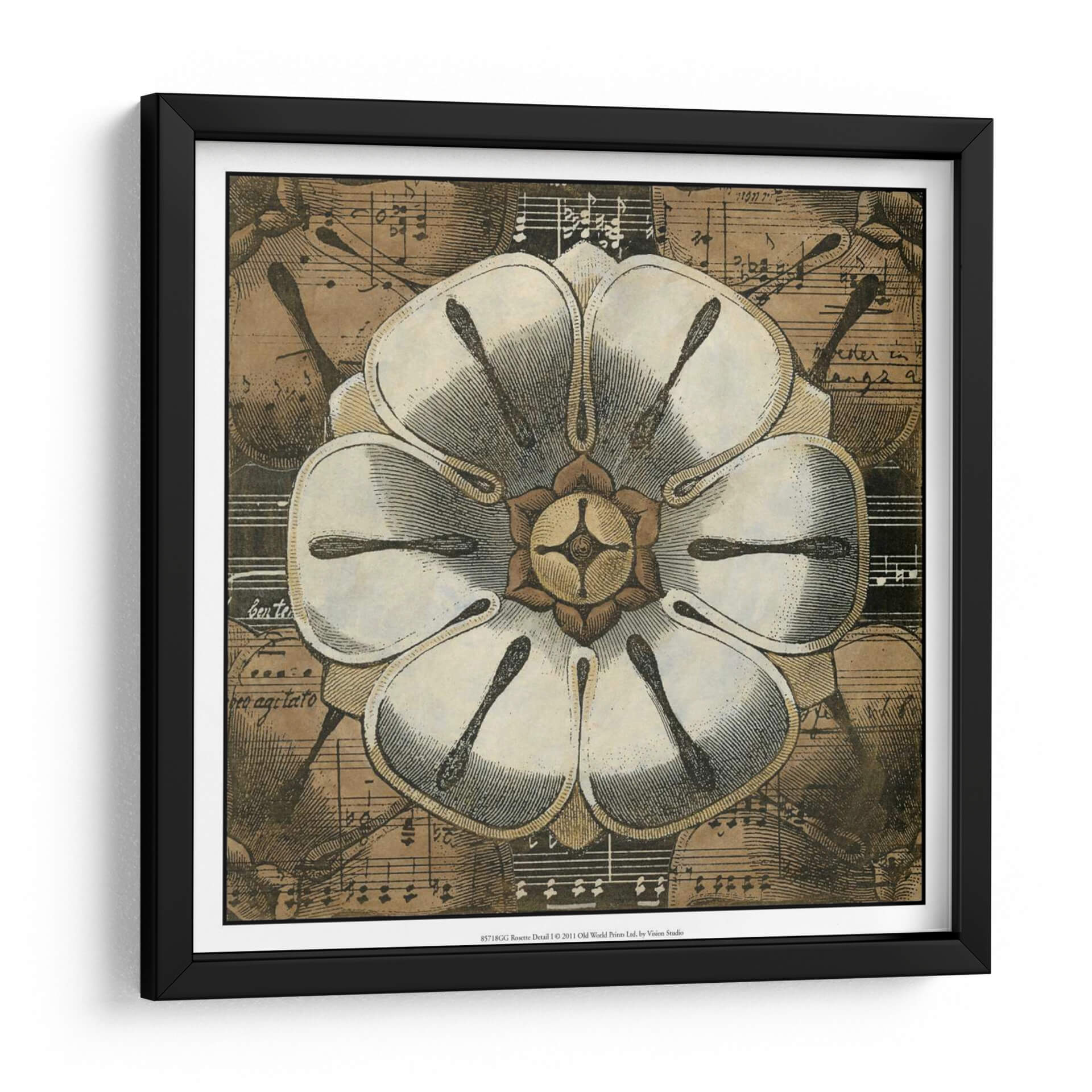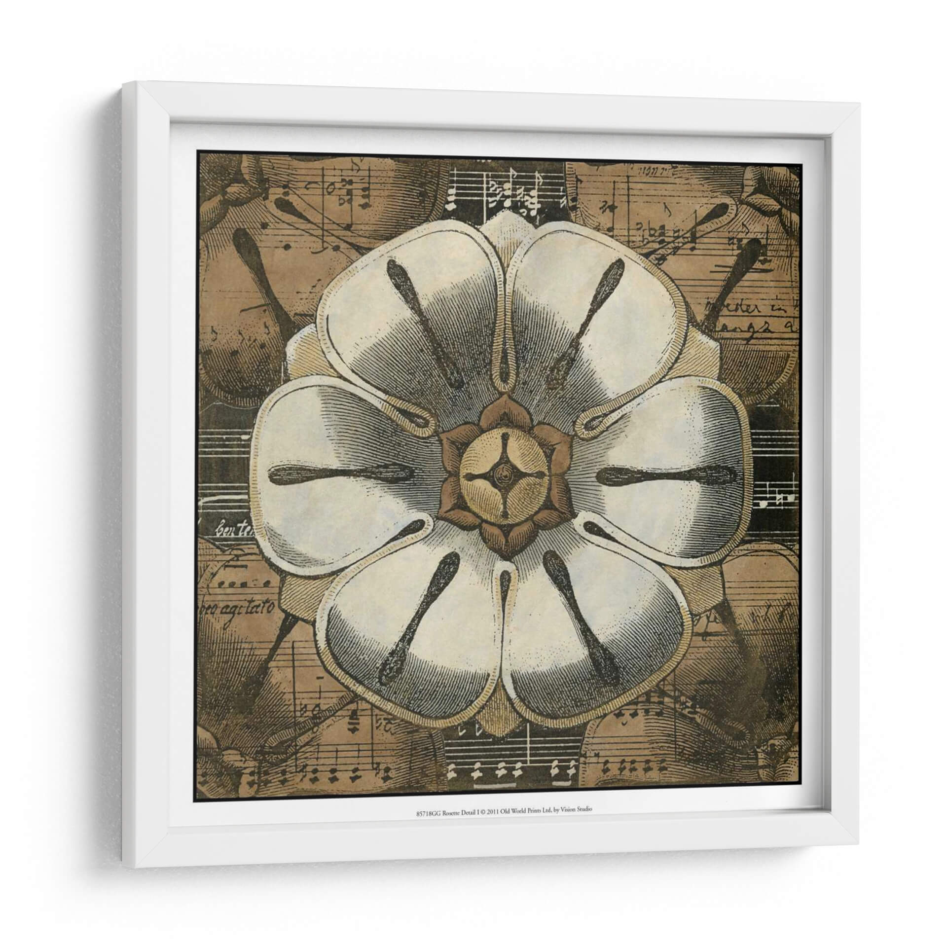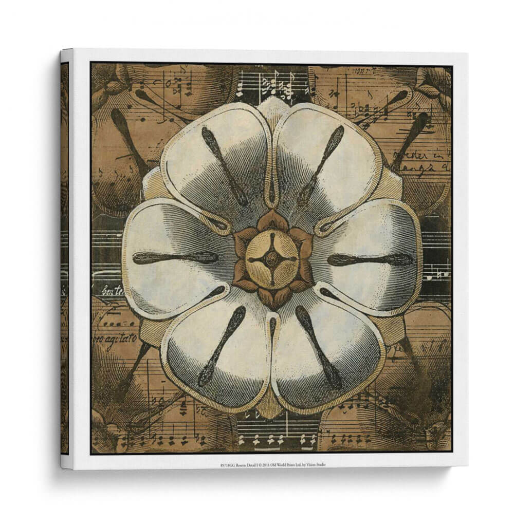 Sumérgete en la belleza atemporal de 'Detalle De Roseta I', una obra de arte que fusiona la delicadeza botánica con la elegancia de la música. Este cuadro decorativo presenta una detallada ilustración de una roseta en primer plano, cuyas pétalos blancos y texturas finas capturan la mirada. El fondo, compuesto por partituras antiguas y sutiles notas musicales, añade una capa de profundidad y sofisticación, evocando una atmósfera de calma y armonía. Los tonos tierra y sepia predominantes otorgan a la pieza una calidez vintage, ideal para espacios que buscan un toque de clasicismo y serenidad. Su composición simétrica y el contraste entre la claridad de la flor y la riqueza del fondo la convierten en un punto focal cautivador para salones, estudios o dormitorios. 'Detalle De Roseta I' no es solo una imagen, sino una invitación a apreciar la intrincada belleza que se esconde en la naturaleza y la música, transformando cualquier pared en una galería de inspiración. Perfecta para amantes del arte botánico, la música clásica y la decoración con carácter.