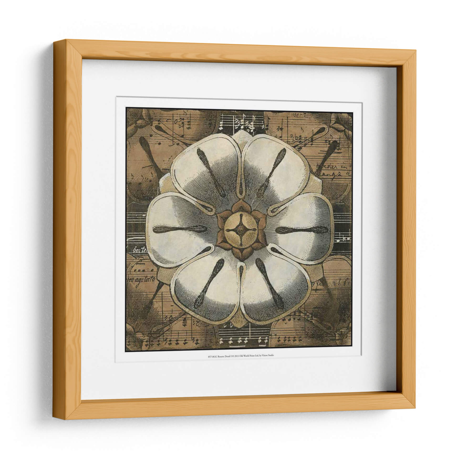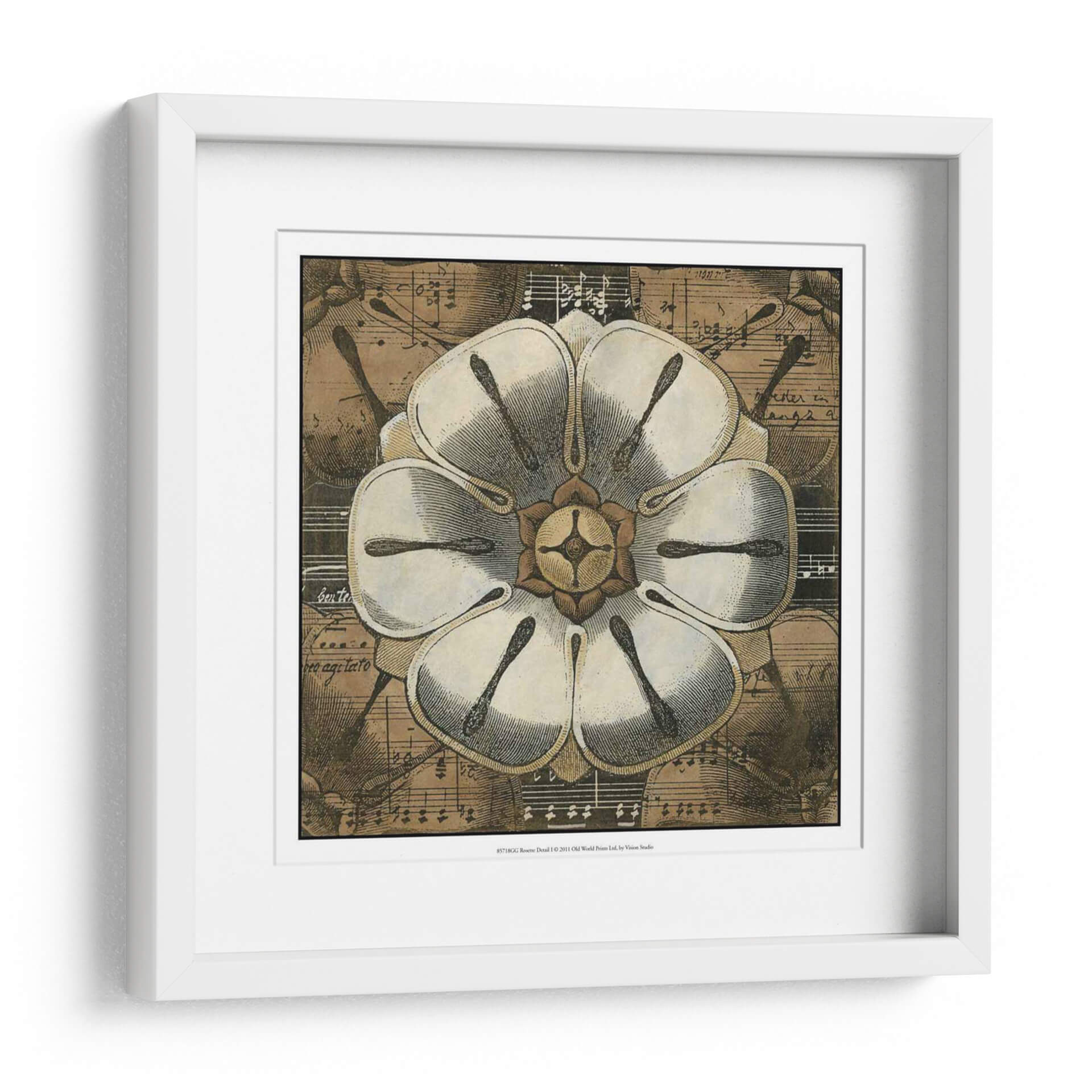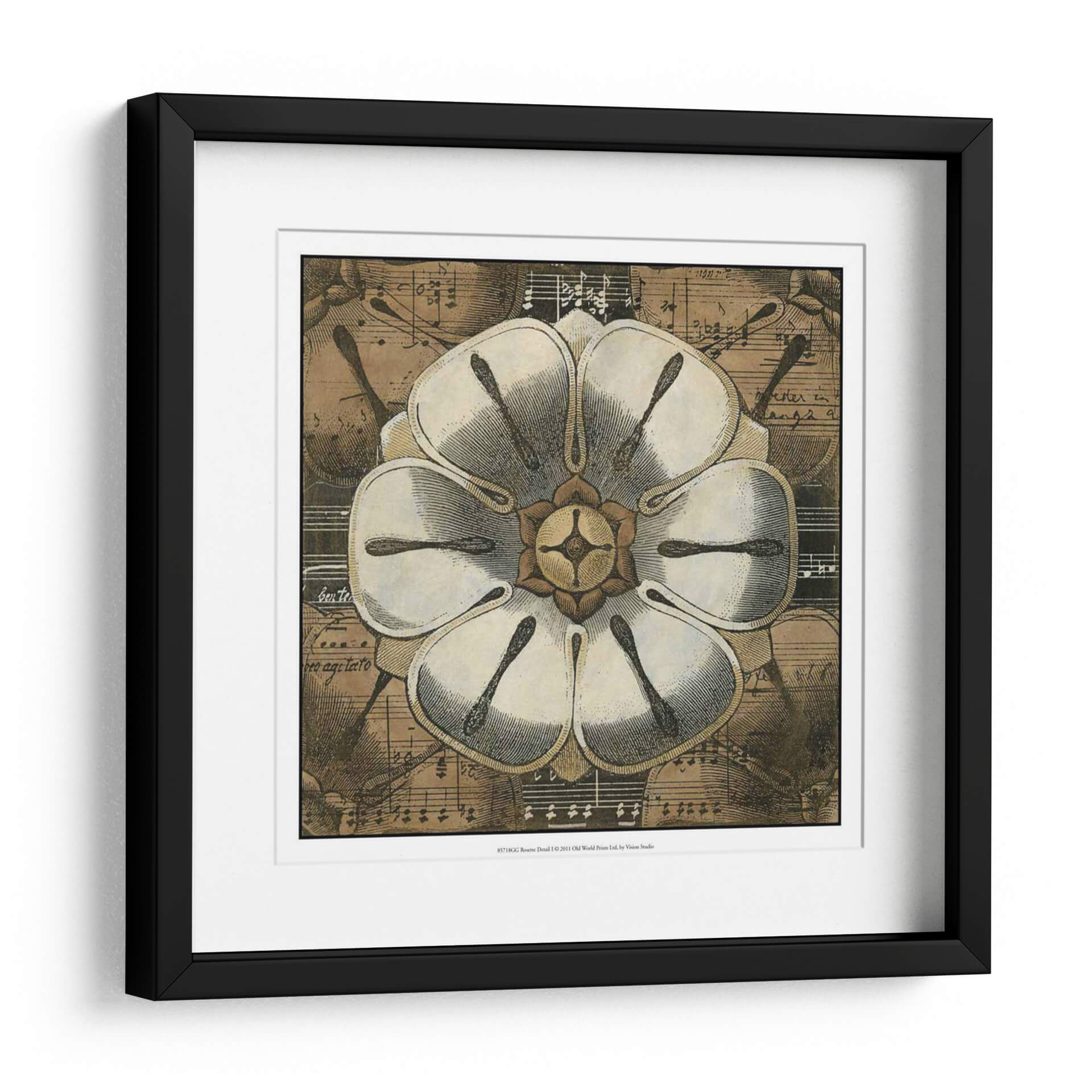 Sumérgete en la belleza atemporal de 'Detalle De Roseta I', una obra de arte que fusiona la delicadeza botánica con la elegancia de la música. Este cuadro decorativo presenta una detallada ilustración de una roseta en primer plano, cuyas pétalos blancos y texturas finas capturan la mirada. El fondo, compuesto por partituras antiguas y sutiles notas musicales, añade una capa de profundidad y sofisticación, evocando una atmósfera de calma y armonía. Los tonos tierra y sepia predominantes otorgan a la pieza una calidez vintage, ideal para espacios que buscan un toque de clasicismo y serenidad. Su composición simétrica y el contraste entre la claridad de la flor y la riqueza del fondo la convierten en un punto focal cautivador para salones, estudios o dormitorios. 'Detalle De Roseta I' no es solo una imagen, sino una invitación a apreciar la intrincada belleza que se esconde en la naturaleza y la música, transformando cualquier pared en una galería de inspiración. Perfecta para amantes del arte botánico, la música clásica y la decoración con carácter.