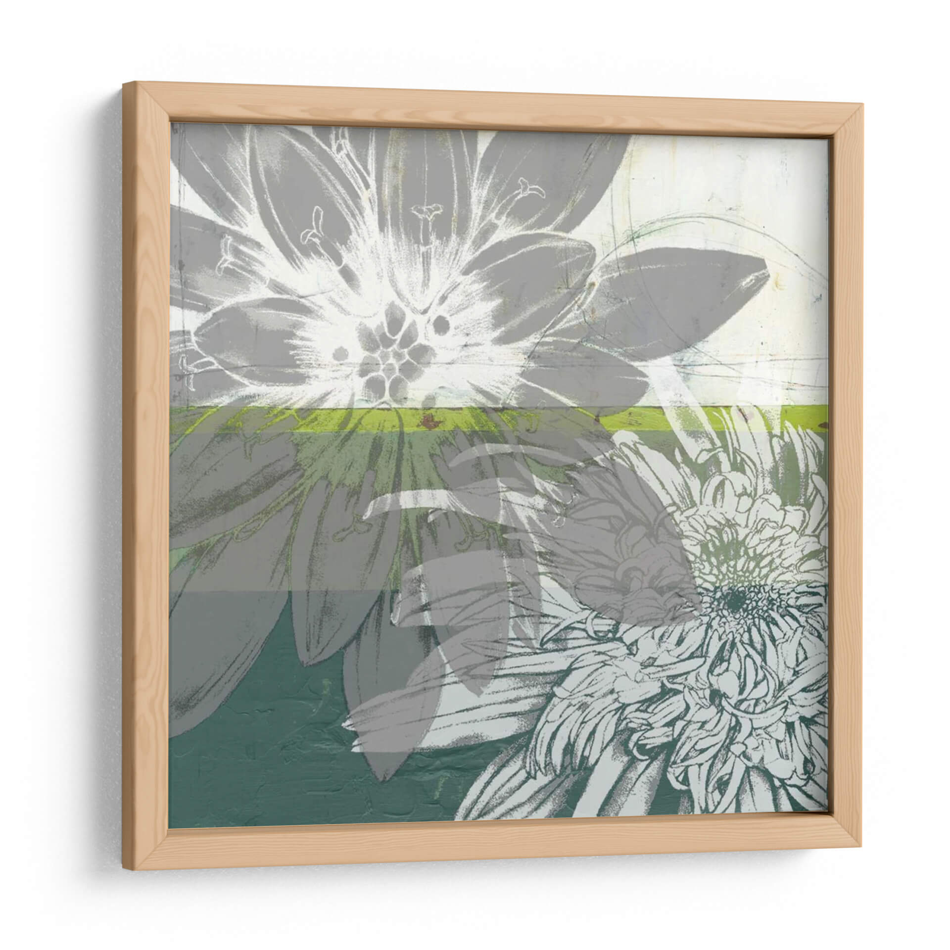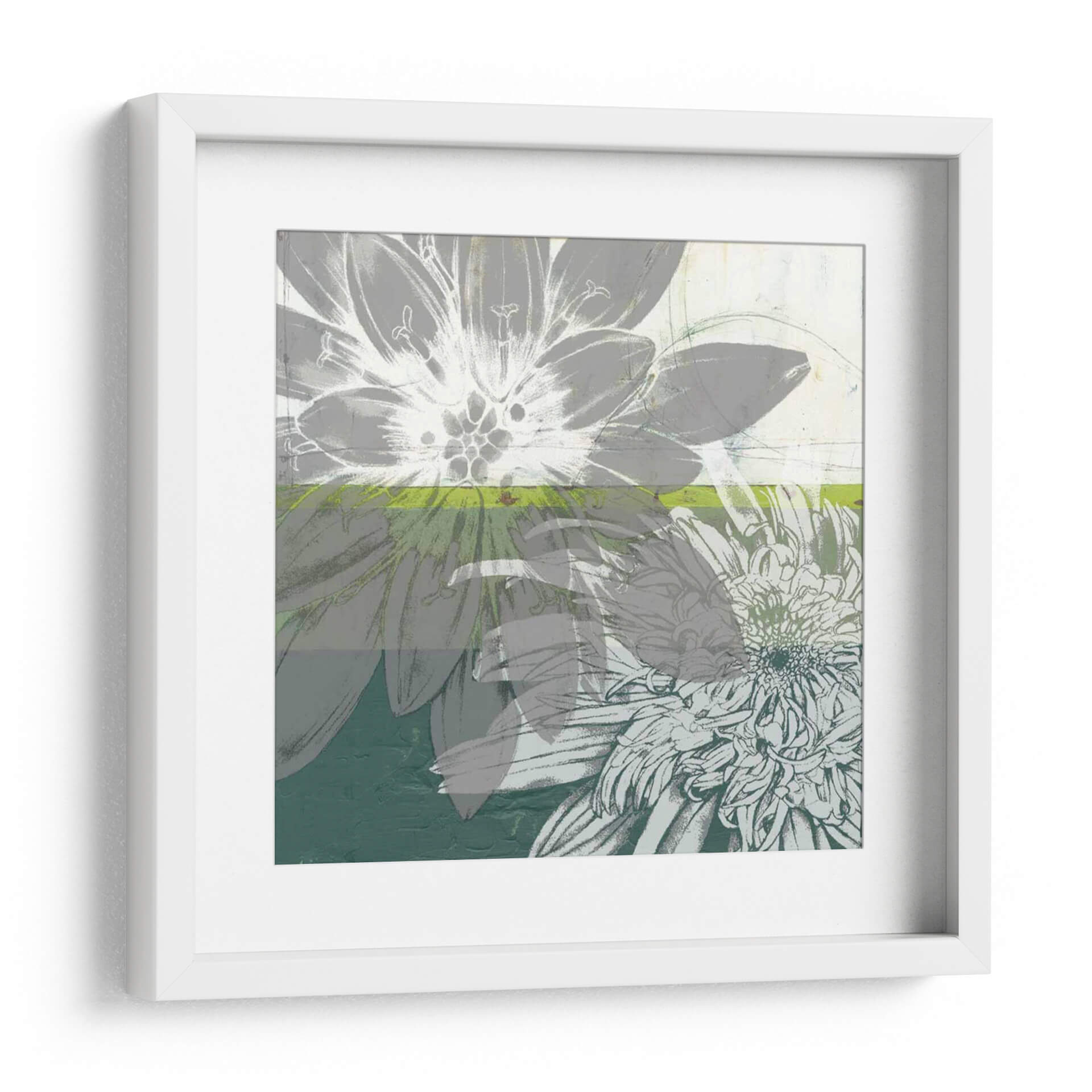 Sumérgete en la delicadeza botánica con "Floraciones Gráficas I" de Jennifer Goldberger, una obra de arte digital que captura la esencia de las flores con un toque moderno y abstracto. Los pétalos se despliegan en una sinfonía de grises, blancos y sutiles toques de verde lima, creando una atmósfera de serenidad y sofisticación. La composición, que superpone los contornos florales con texturas pictóricas, evoca una sensación de profundidad y movimiento, como si las flores emergieran de un lienzo pictórico. Esta pieza es ideal para añadir un acento de elegancia contemporánea a cualquier espacio, desde un salón moderno hasta una oficina tranquila. Su paleta de colores neutros y su diseño gráfico la convierten en una adición versátil y atemporal para quienes buscan una decoración que combine arte y naturaleza con un estilo único. "Floraciones Gráficas I" no es solo un cuadro, es una invitación a contemplar la belleza efímera de la naturaleza a través de una lente artística innovadora, transformando tu hogar en una galería personal.