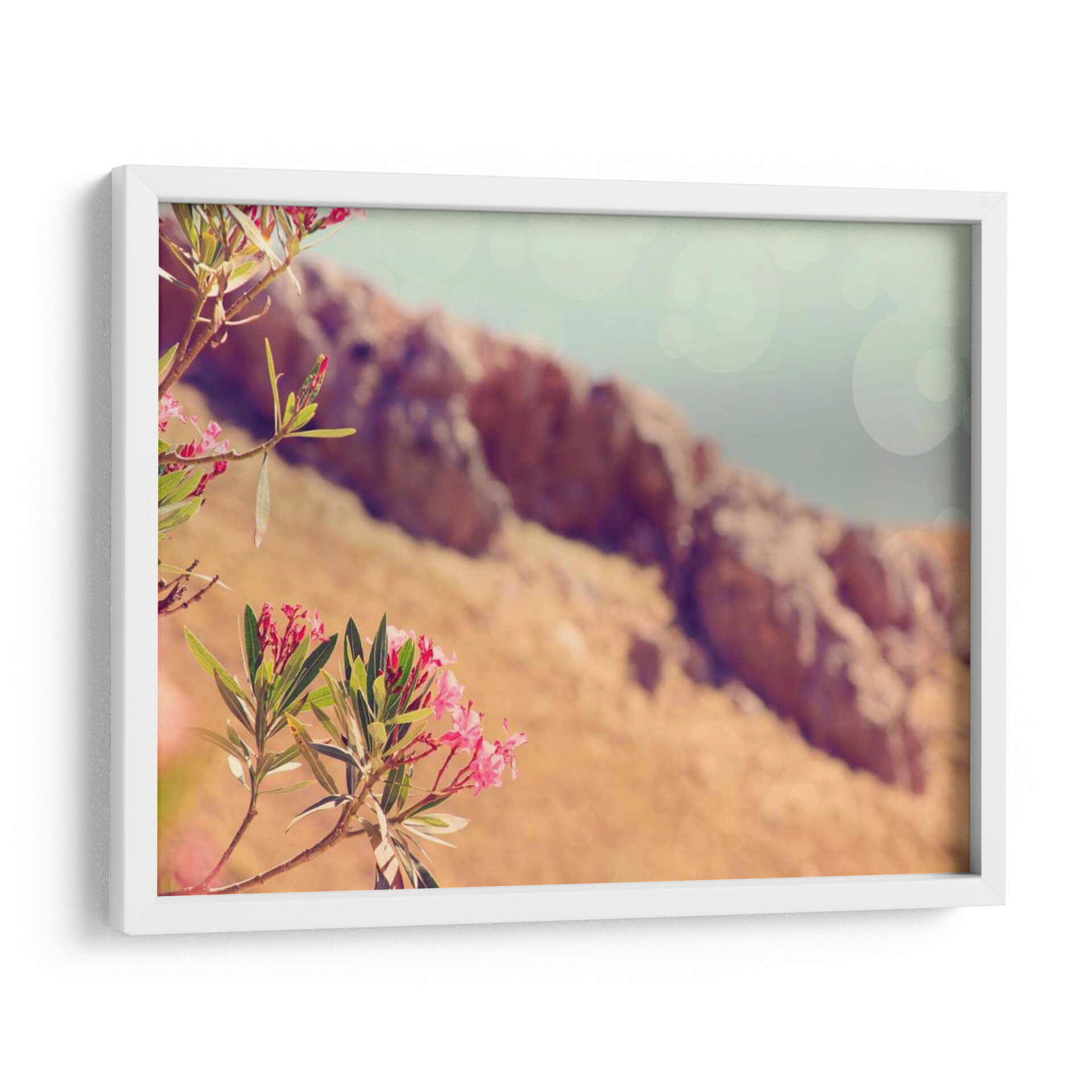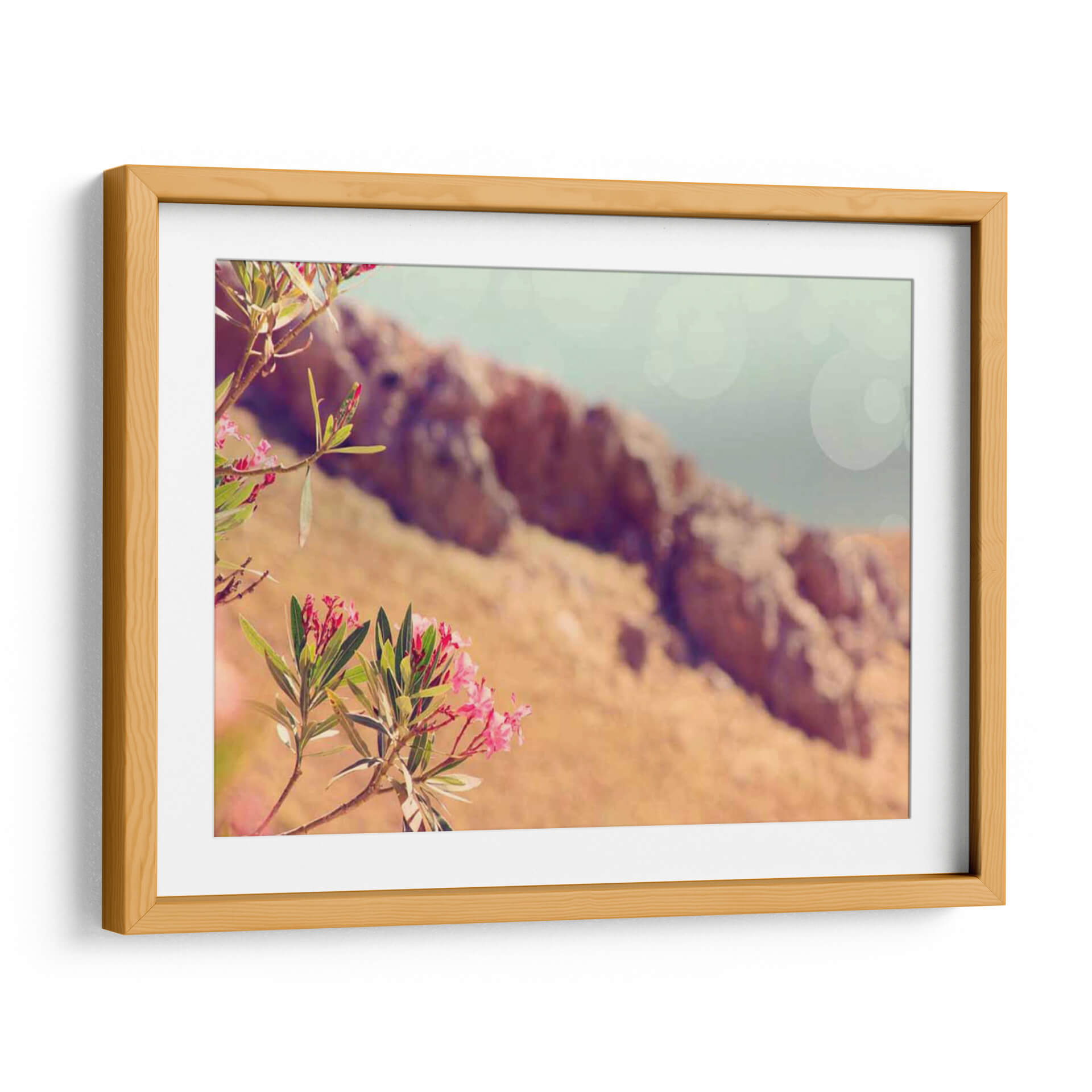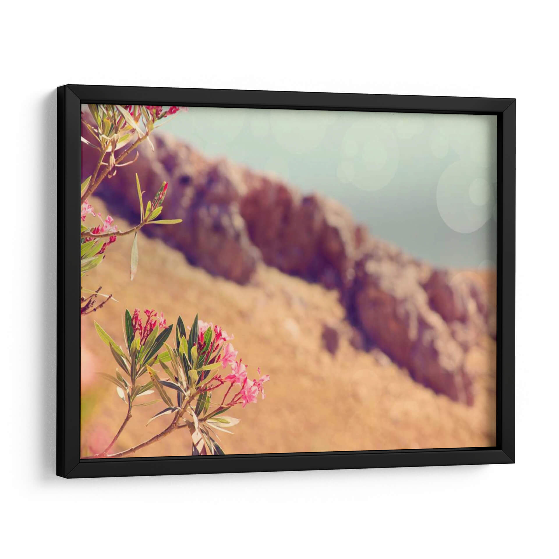 Adéntrate en la serenidad y el encanto natural con 'Flores En El Paraíso I', una obra maestra de Sylvia Coomes que captura la delicadeza de la flora en un entorno idílico. Este cuadro decorativo presenta un primer plano de vibrantes flores rosadas y exuberante follaje verde, contrastando suavemente con el cálido y terroso fondo de una ladera rocosa bañada por la luz del sol. La paleta de colores, dominada por tonos tierra cálidos, verdes vibrantes y toques sutiles de rosa, evoca una sensación de paz y tranquilidad, ideal para infundir calma en cualquier espacio. El estilo, que fusiona realismo floral con un toque etéreo y desenfocado en el fondo, crea una atmósfera soñadora y relajante. 'Flores En El Paraíso I' es perfecto para añadir un punto de frescura y elegancia natural a tu sala de estar, dormitorio o cualquier rincón que necesite un soplo de aire fresco y belleza botánica. Su composición equilibrada y su vibrante energía lo convierten en un elemento decorativo versátil y cautivador.