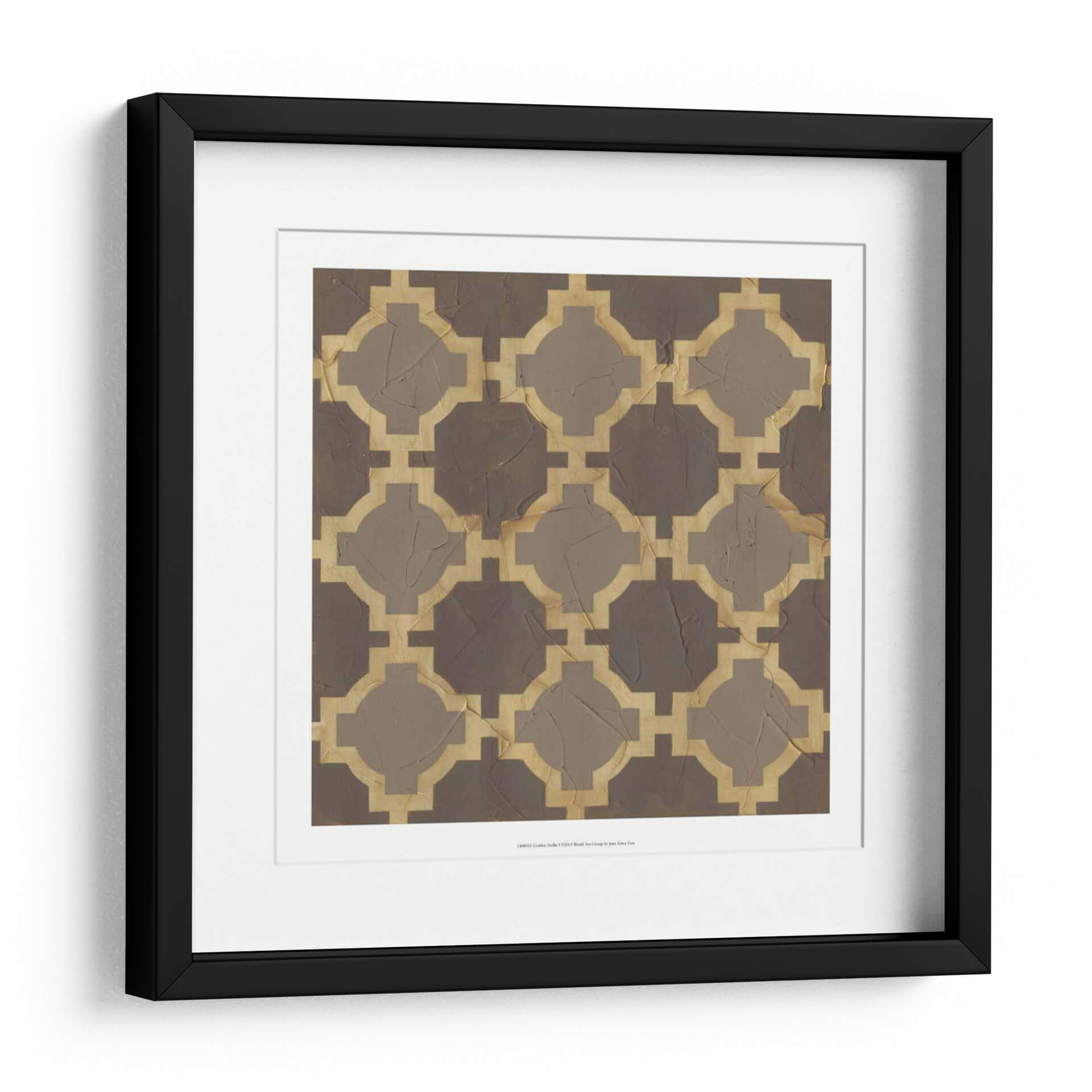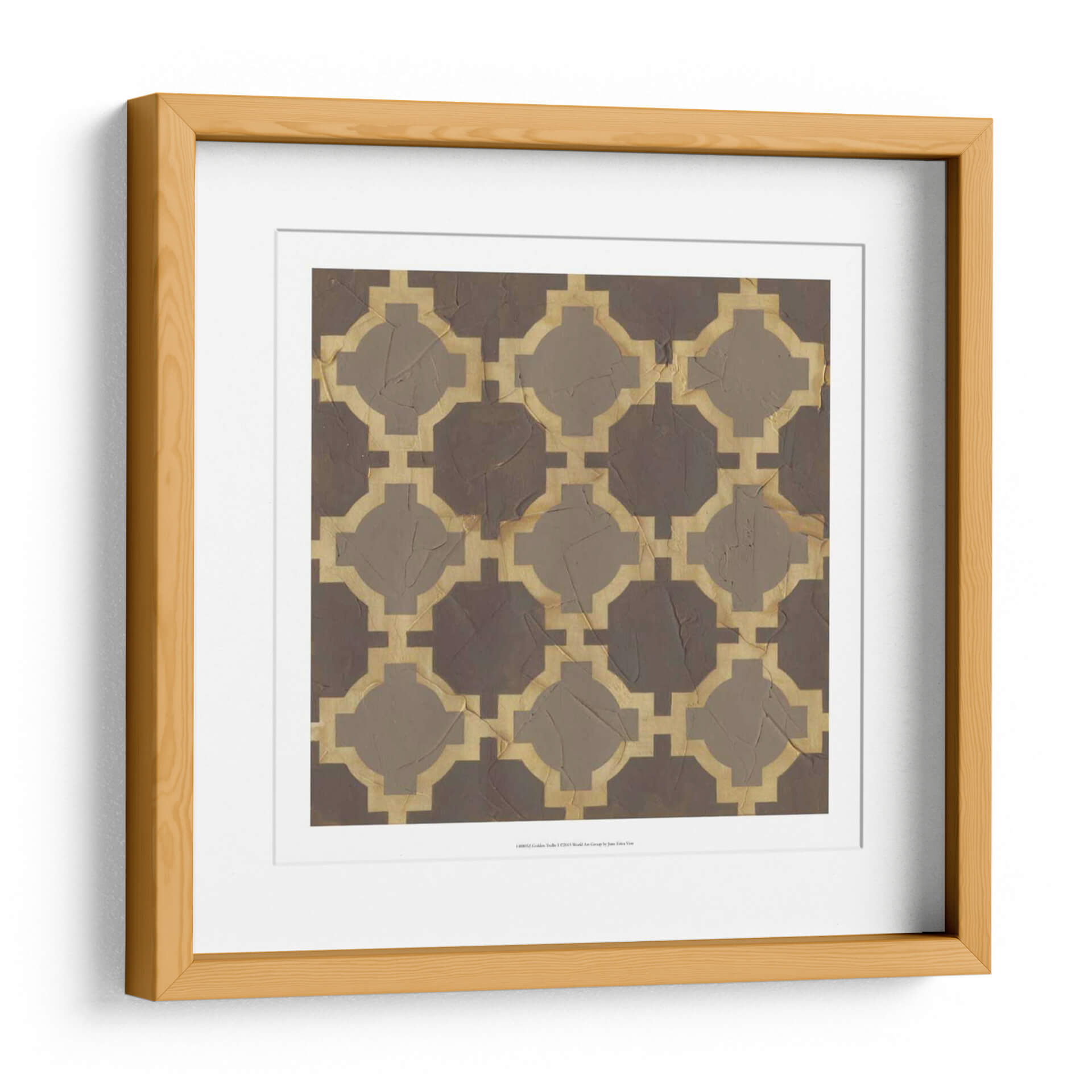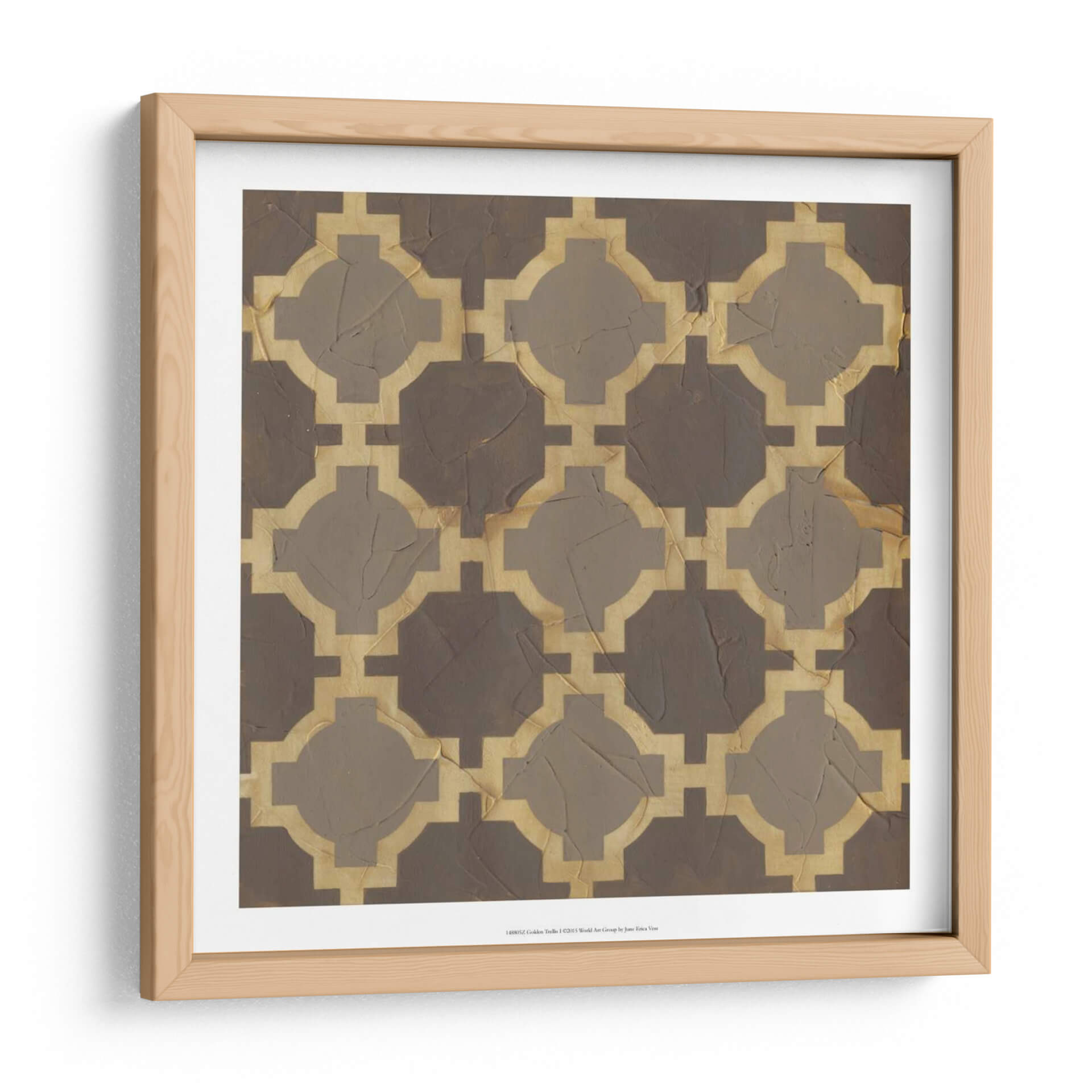 Sumérgete en la elegancia atemporal de 'Golden Trellis I', una obra de arte contemporáneo que evoca sofisticación y profundidad visual. Este cuadro decorativo presenta un intrincado patrón geométrico que recuerda a celosías intrincadas, ejecutado con una paleta de colores tierra y dorados sutiles. Los tonos cálidos de marrón y gris se entrelazan con acentos dorados, creando un efecto visual rico y texturizado que invita a la contemplación. La composición, inspirada en motivos arquitectónicos clásicos y adaptada a un lenguaje moderno, aporta un aire de refinamiento y estructura a cualquier espacio. La sutil rugosidad y las variaciones tonales en la superficie añaden una dimensión táctil, haciendo que la pieza sea aún más cautivadora. 'Golden Trellis I' es ideal para añadir un toque de distinción a una sala de estar, un estudio o una entrada, funcionando como un punto focal sereno pero impactante. Su diseño versátil se integra a la perfección en una variedad de estilos decorativos, desde el moderno hasta el tradicional, aportando calidez y un sentido de lugar consolidado. Descubre cómo este diseño puede transformar tu hogar u oficina en un santuario de buen gusto y estilo.
