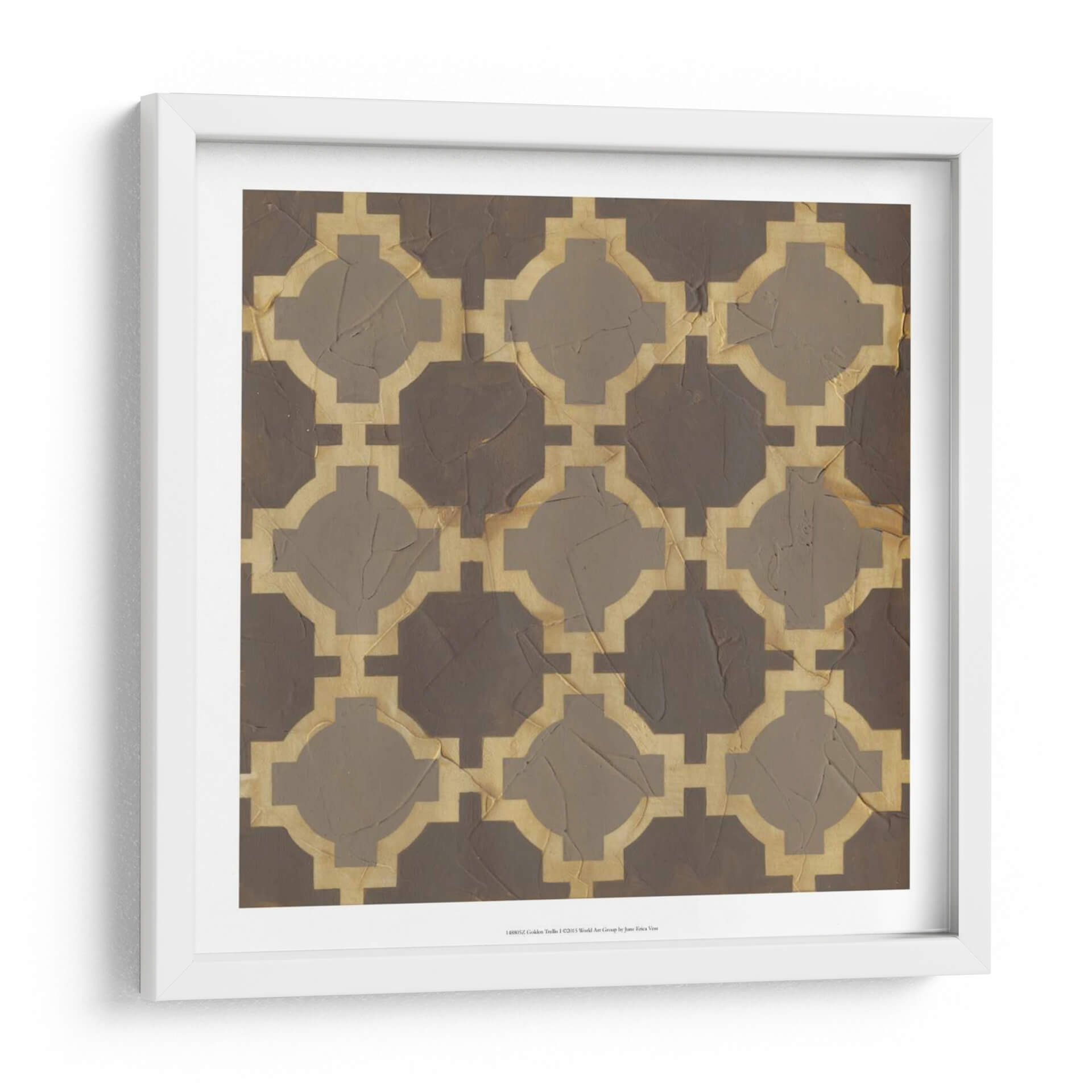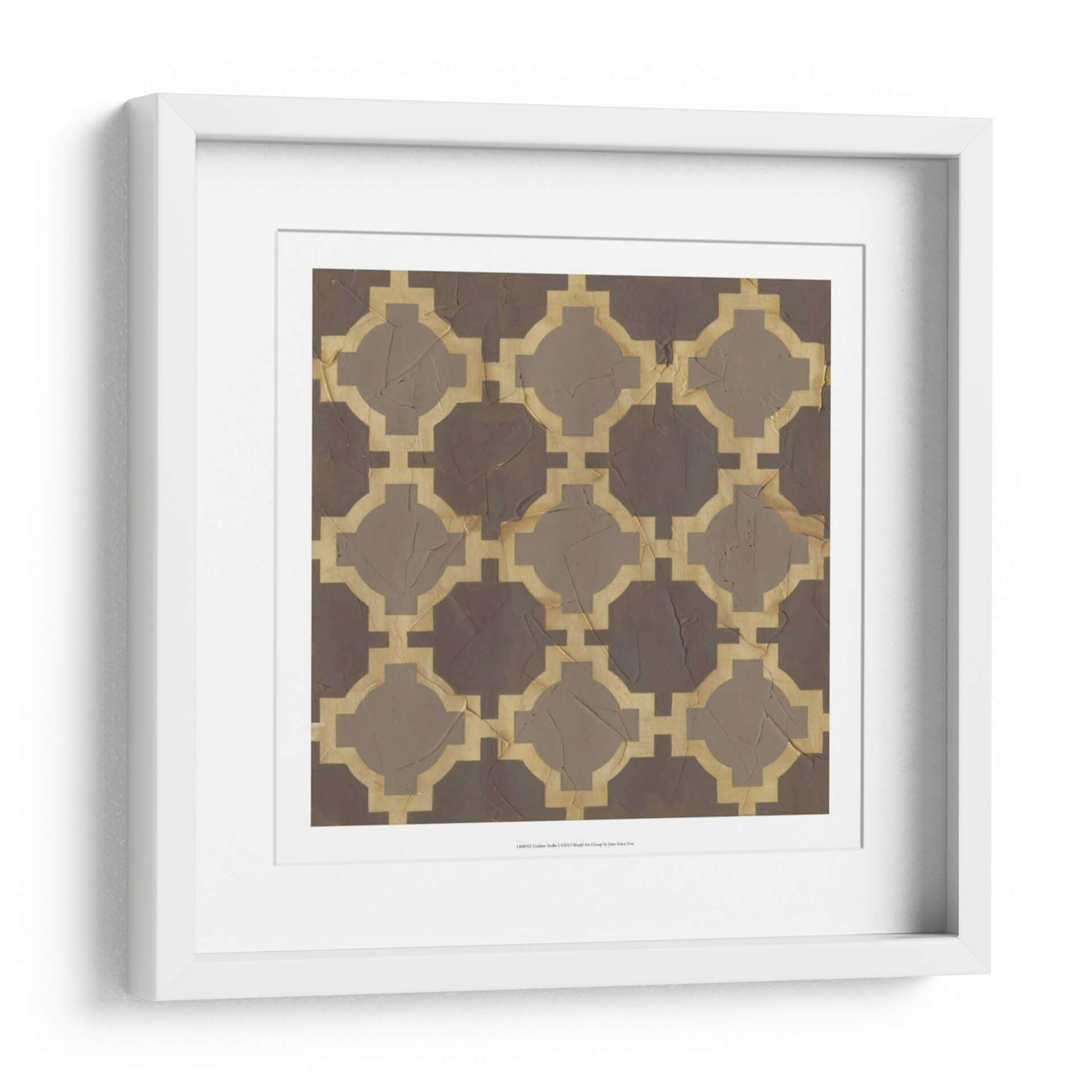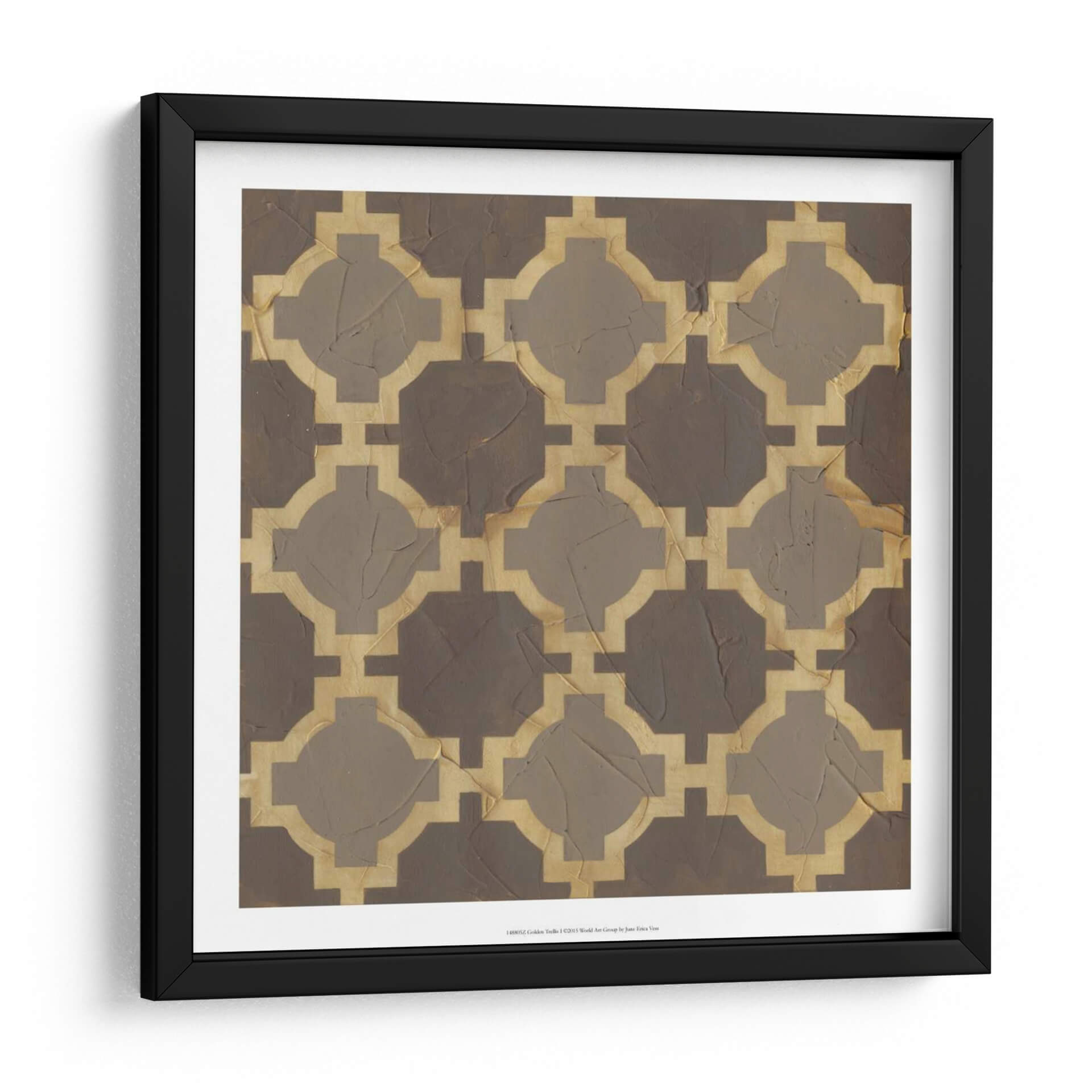 Sumérgete en la elegancia atemporal de 'Golden Trellis I', una obra de arte contemporáneo que evoca sofisticación y profundidad visual. Este cuadro decorativo presenta un intrincado patrón geométrico que recuerda a celosías intrincadas, ejecutado con una paleta de colores tierra y dorados sutiles. Los tonos cálidos de marrón y gris se entrelazan con acentos dorados, creando un efecto visual rico y texturizado que invita a la contemplación. La composición, inspirada en motivos arquitectónicos clásicos y adaptada a un lenguaje moderno, aporta un aire de refinamiento y estructura a cualquier espacio. La sutil rugosidad y las variaciones tonales en la superficie añaden una dimensión táctil, haciendo que la pieza sea aún más cautivadora. 'Golden Trellis I' es ideal para añadir un toque de distinción a una sala de estar, un estudio o una entrada, funcionando como un punto focal sereno pero impactante. Su diseño versátil se integra a la perfección en una variedad de estilos decorativos, desde el moderno hasta el tradicional, aportando calidez y un sentido de lugar consolidado. Descubre cómo este diseño puede transformar tu hogar u oficina en un santuario de buen gusto y estilo.