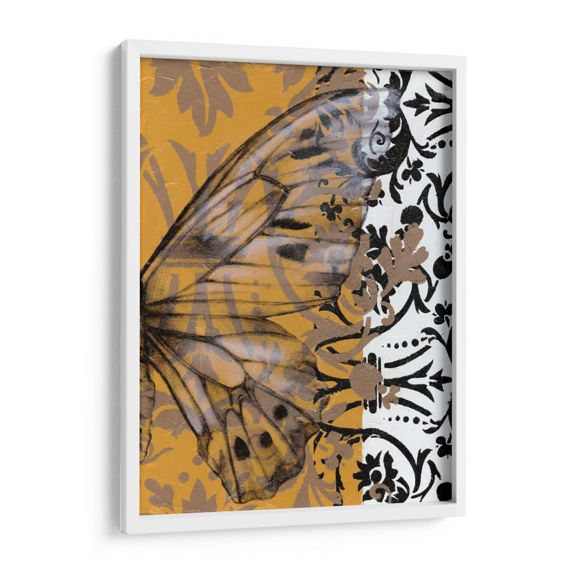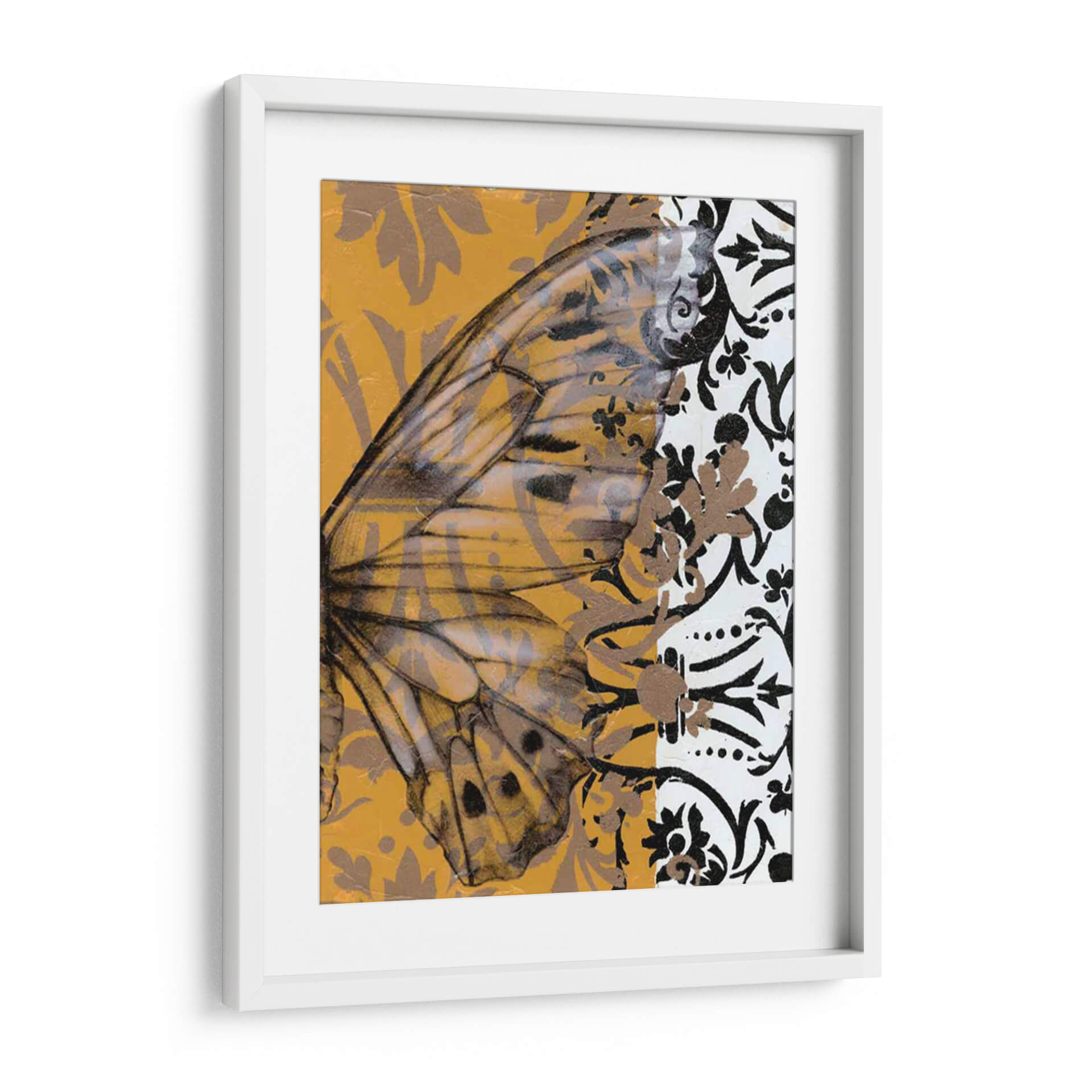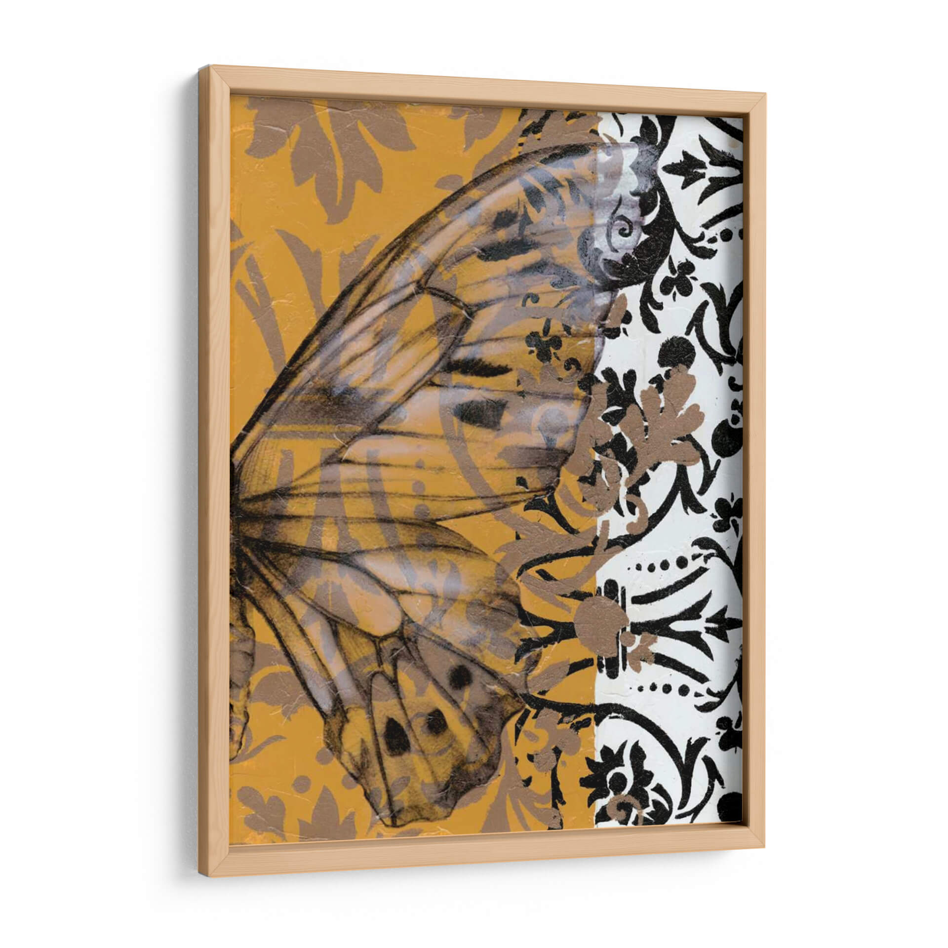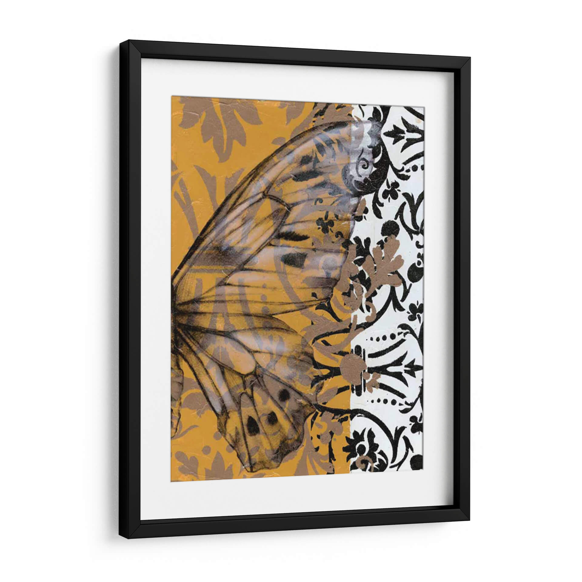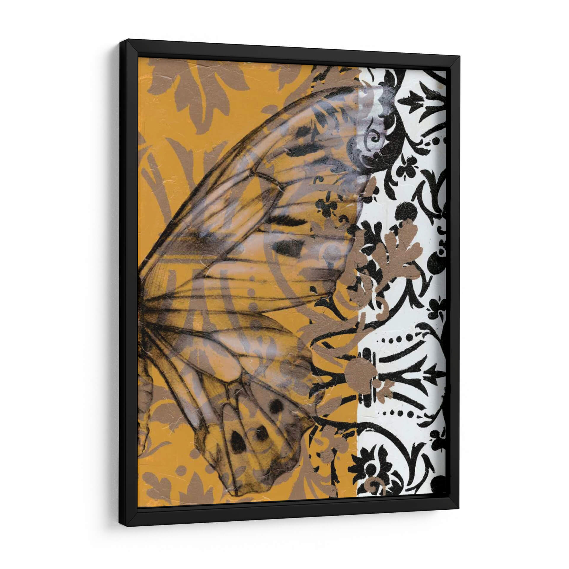 Sumérgete en la fascinante obra de arte 'Jarmans Vestido Iv' de Jennifer Goldberger, una pieza que captura la delicadeza de la naturaleza entrelazada con patrones ornamentales. Este cuadro decorativo presenta una detallada representación de un ala de mariposa, con sus intrincadas venas y sutiles manchas, emergiendo sobre un fondo vibrante de color mostaza y motivos florales texturizados en tonos tierra. La composición se divide, introduciendo un contraste impactante con un panel en blanco y negro adornado con un intrincado diseño damascado y floral, creando una dinámica visual única. La paleta de colores, dominada por el cálido mostaza y los toques de marrón y negro, evoca una sensación de elegancia rústica y sofisticación. Esta obra es perfecta para añadir un toque de encanto botánico y un acento de color distintivo a cualquier sala de estar, dormitorio o estudio. El estilo, que fusiona lo figurativo con lo ornamental y un toque de arte urbano, la convierte en una pieza versátil que puede complementar desde decoraciones modernas hasta espacios más eclécticos, aportando misterio y belleza.