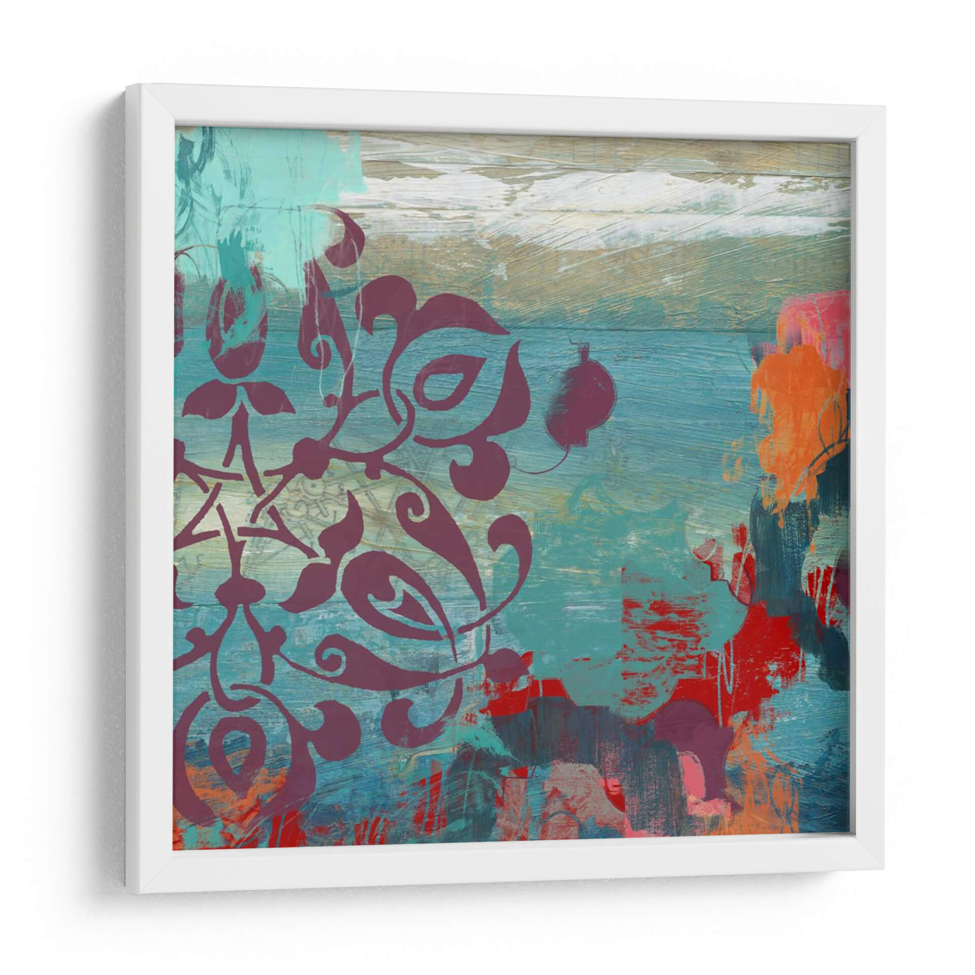 Sumérgete en la vibrante abstracción de 'Joyero Tone Garden I', una obra de arte cautivadora de June Erica Vess. Este cuadro decorativo despliega una rica paleta de tonos turquesa, profundos borgoñas y vibrantes acentos anaranjados y rojos, creando una composición dinámica y cautivadora. El estilo combina delicados motivos ornamentales superpuestos a texturas rústicas y pinceladas audaces, evocando una sensación de profundidad y misterio. Las formas fluidas y los contrastes de color invitan a la contemplación, añadiendo un toque de sofisticación moderna y energía a cualquier espacio. Ideal para aquellos que buscan una pieza de arte contemporáneo que aporte carácter y un toque de color distintivo a salones, oficinas o estudios. 'Joyero Tone Garden I' no es solo una decoración, sino una expresión artística que transforma tu entorno y estimula la conversación, convirtiéndose en el punto focal perfecto para interiores que buscan personalidad y un estilo inconfundible. Descubre cómo esta pieza puede revitalizar tu hogar.
