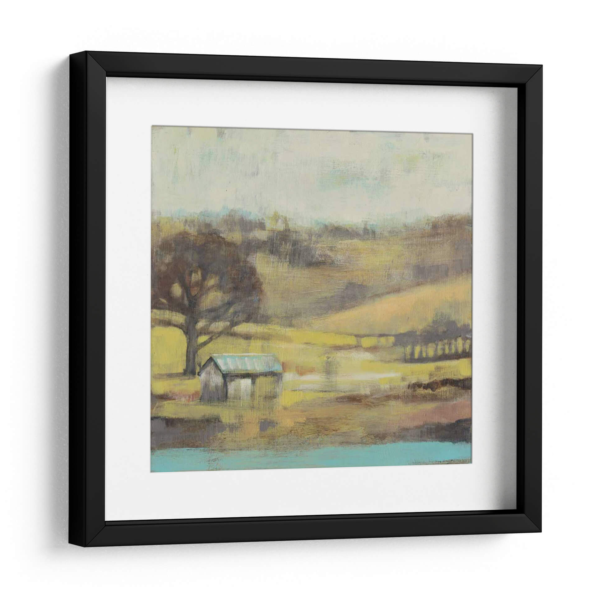 Sumérgete en la serena belleza de "Niebla Pastoral I", una obra maestra de Jennifer Goldberger que captura la esencia de un paisaje rural envuelto en una atmósfera etérea. Esta pieza, caracterizada por su estilo impresionista y una paleta de colores tierra con toques de turquesa vibrante, evoca una sensación de paz y nostalgia. Los suaves trazos del pincel dan vida a un campo ondulado, un árbol solitario y una pequeña cabaña rústica, todo ello difuminado por una delicada niebla que añade misterio y profundidad. Los tonos ocres y dorados del paisaje se complementan perfectamente con el azul cerúleo del agua o el cielo, creando un contraste armonioso que atrae la mirada. "Niebla Pastoral I" es ideal para añadir un toque de calma y sofisticación a tu hogar u oficina, transformando cualquier espacio en un refugio de tranquilidad. Este cuadro decorativo es perfecto para quienes buscan conectar con la naturaleza y apreciar la belleza sutil de los momentos cotidianos. Añade esta pieza única a tu colección y deja que su atmósfera envolvente transporte tus sentidos a un campo sereno.