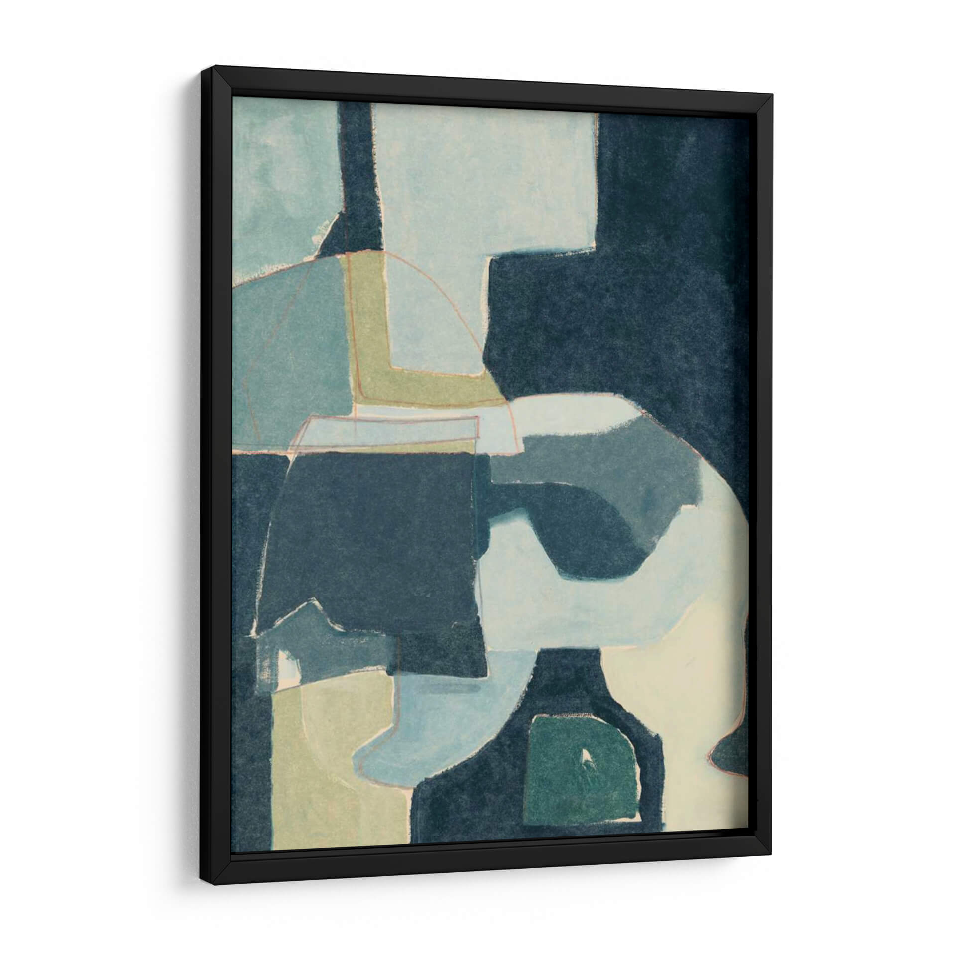 Sumérgete en la serena belleza de 'Nota Azul III', una cautivadora obra de arte abstracto del artista Rob Delamater. Esta pieza maestra visual se caracteriza por su armoniosa composición de formas geométricas y orgánicas, entrelazadas en una paleta de colores que evoca la tranquilidad del océano y la sutileza de un cielo al amanecer. Tonos profundos de azul marino contrastan delicadamente con suaves azules celestes, verdes apagados y toques de beige, creando una atmósfera de calma y contemplación. Las líneas finas y los contornos sutiles añaden profundidad y movimiento, invitando al espectador a explorar las múltiples capas de significado. 'Nota Azul III' es más que un simple cuadro decorativo; es una invitación a la introspección y un punto focal sofisticado para cualquier espacio. Ideal para salas de estar modernas, estudios serenos o dormitorios que buscan un toque de elegancia discreta y contemporánea, esta obra de arte abstracto en tonos azules transformará tu hogar u oficina en un santuario de paz y estilo. Añade una dimensión de sofisticación artística a tu decoración con esta pieza única que resuena con serenidad y diseño contemporáneo.
