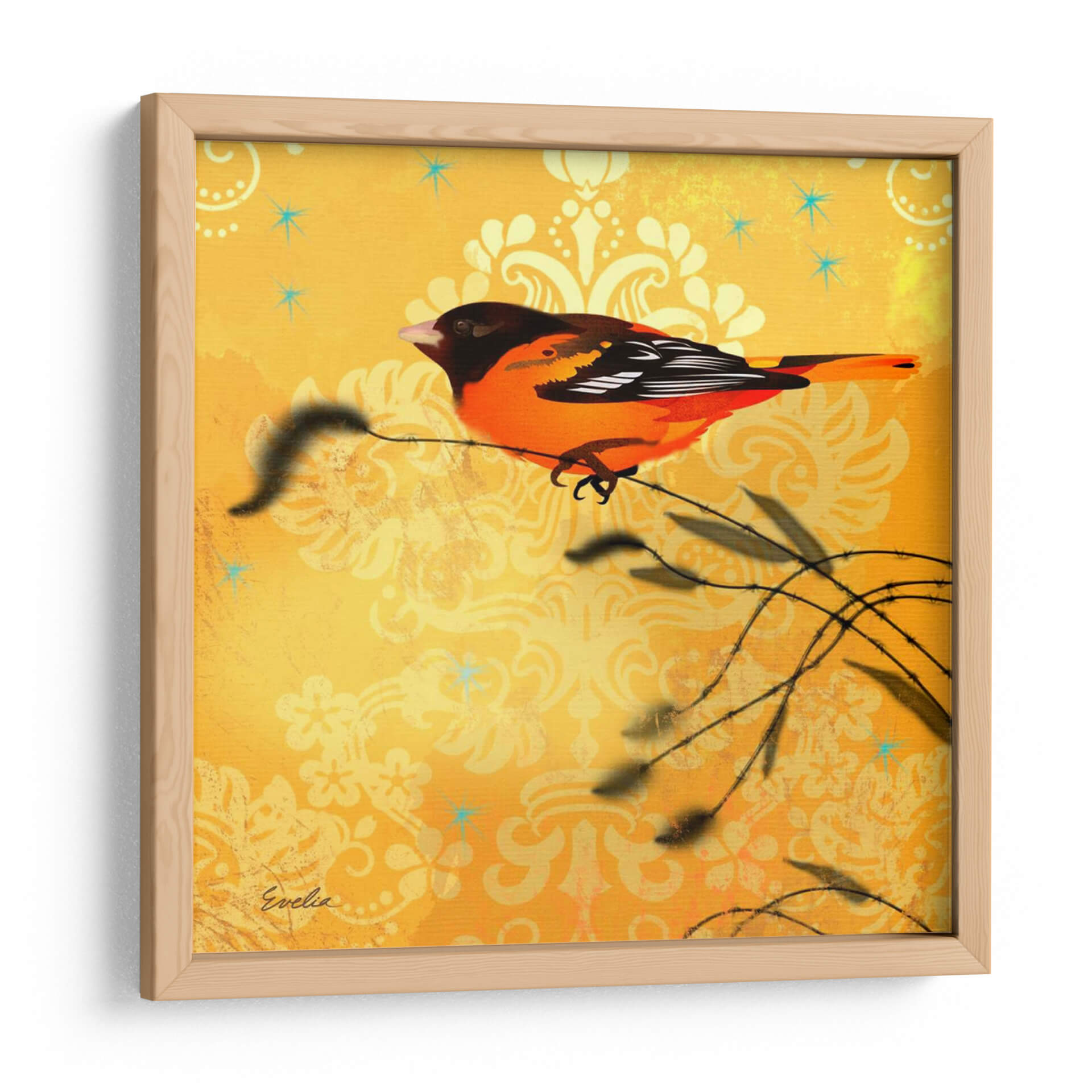 Aporta un toque de vibrante naturaleza y elegancia a tu hogar con el cuadro decorativo 'Oriole Y Cartouche I', una obra maestra del artista Evelia Designs. Esta cautivadora pieza presenta un oriol posado delicadamente sobre una rama, con un fondo que evoca un damasco ornamental en tonos dorados y amarillos intensos. La paleta de colores cálidos y la textura sutil crean una atmósfera acogedora y llena de vida, perfecta para cualquier espacio que busque una inyección de color y estilo. La composición, que combina la delicadeza de la figura aviar con el patrón decorativo, genera un equilibrio visual fascinante. Este cuadro decorativo es ideal para salones modernos, dormitorios tranquilos o como punto focal en una oficina, añadiendo un aire de sofisticación y conexión con la naturaleza. Su diseño único lo convierte en una pieza de conversación, capaz de transformar cualquier ambiente. Descubre la belleza de la fauna y el arte abstracto entrelazados en esta obra inspiradora de Evelia Designs, un lienzo que celebra la armonía cromática y la expresividad artística. Añade una pincelada de alegría y distinción a tus paredes con este impresionante cuadro.