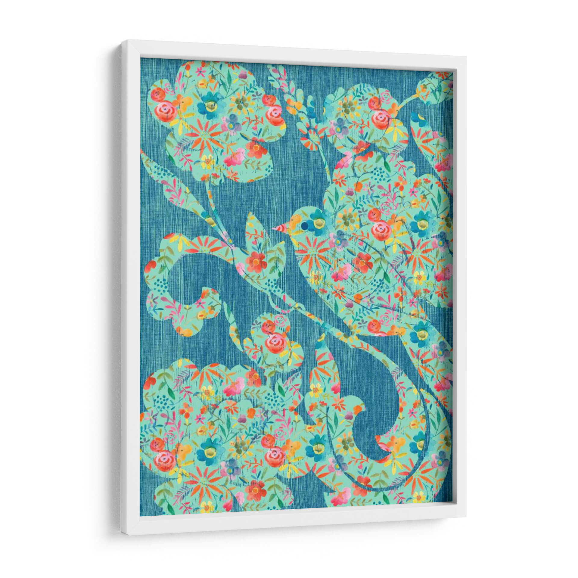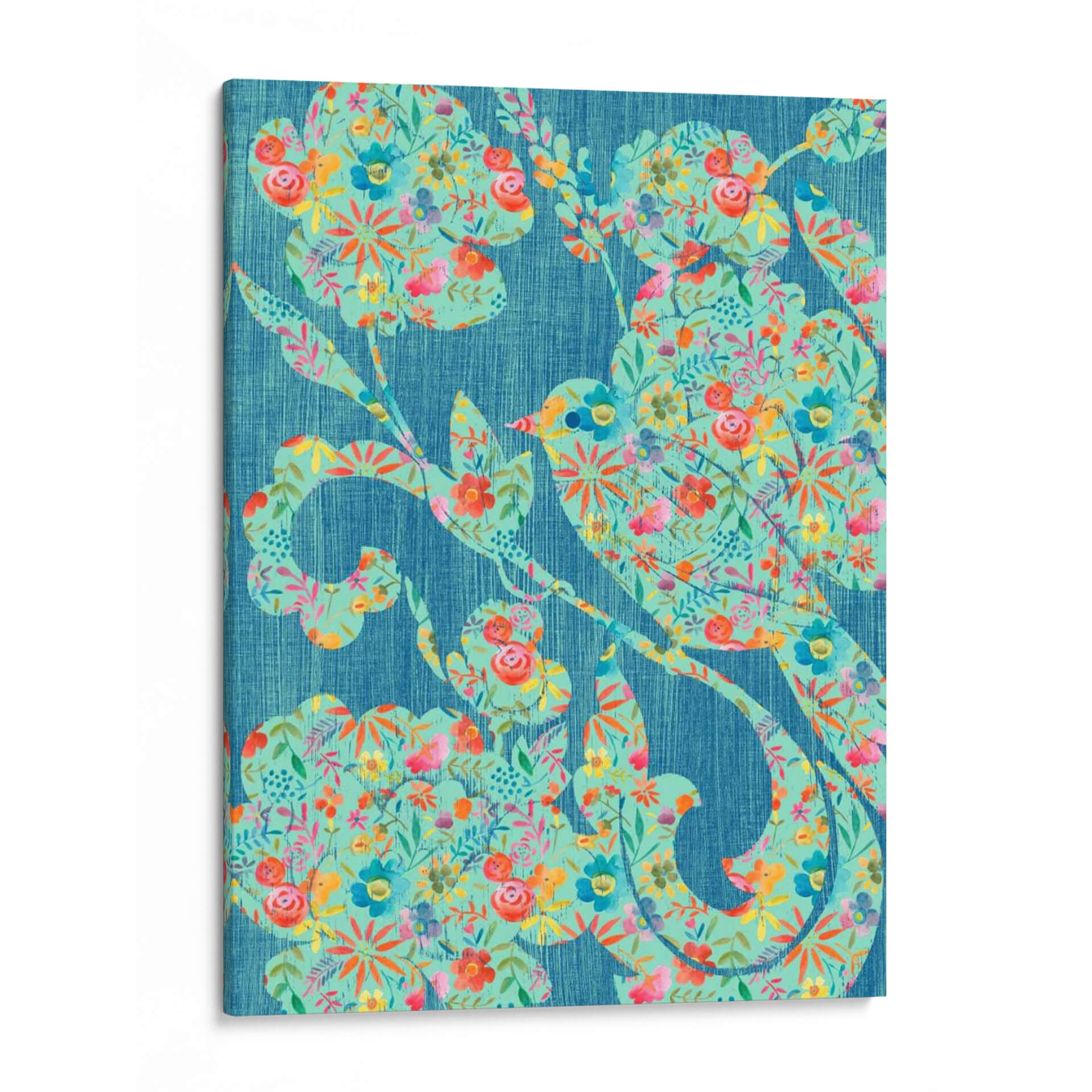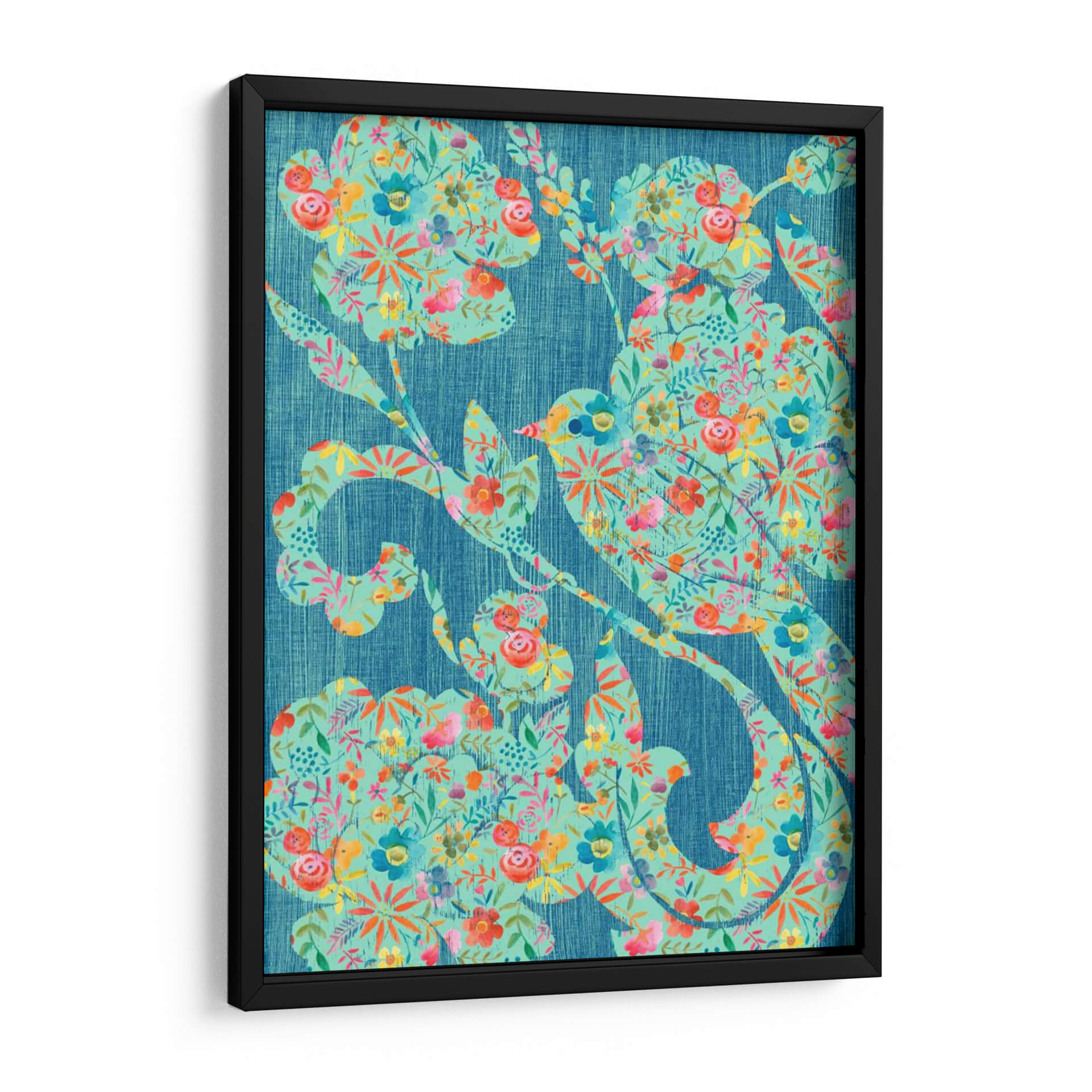 Adéntrate en un universo de color y fantasía con "Pájaros Florales II", una obra de arte que captura la esencia de la naturaleza en su máxima expresión. Este cuadro decorativo presenta un pájaro delicadamente silueteado sobre un fondo texturizado en tono azulado, pero lo que realmente lo define es la vibrante explosión floral que compone su figura y el entorno. Cada pétalo, cada hoja, está pintado con una paleta de colores cálidos y alegres, que incluyen rojos intensos, naranjas ardientes, amarillos solares y toques de azul y rosa, creando un contraste fascinante con el fondo. El estilo, que podríamos definir como una fusión entre lo figurativo y lo abstracto decorativo, invita a la contemplación y al disfrute visual. La composición, con el pájaro posado en una rama florida, transmite una sensación de paz, alegría y conexión con la vida. "Pájaros Florales II" es ideal para añadir un toque de vitalidad y encanto a cualquier estancia, desde una sala de estar moderna hasta un dormitorio acogedor o una oficina creativa. Este cuadro decorativo es una pieza que atraerá miradas y generará conversaciones, aportando una dosis de optimismo y belleza a tu hogar. Descubre cómo esta obra puede transformar tu espacio y reflejar tu amor por la naturaleza y el arte vibrante.