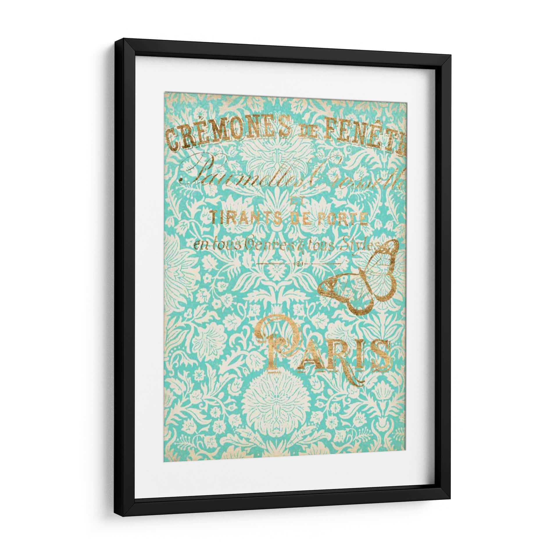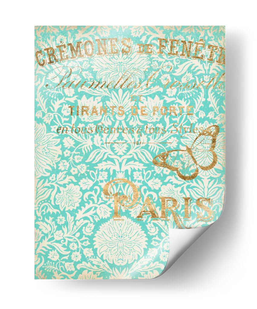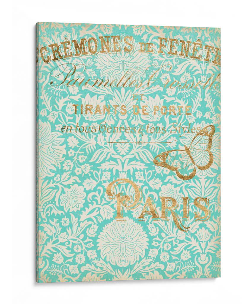 Sumérgete en la elegancia atemporal de "París En Oro II", una obra de arte que evoca la sofisticación y el encanto de la capital francesa. Este cuadro decorativo presenta un intrincado patrón floral en tonos turquesa y blanco, adornado con detalles dorados que aportan un toque de lujo y calidez. La composición visual se ve realzada por elegantes tipografías y la delicada silueta de una mariposa dorada, elementos que transportan a una época de refinamiento y estilo. La paleta de colores, dominada por el vibrante turquesa y el brillante oro, crea una atmósfera de serenidad y distinción, perfecta para añadir un acento de color y personalidad a cualquier espacio. Ideal para salones, comedores o estudios que busquen una pieza de conversación con un aire vintage y chic. Este cuadro decorativo, inspirado en la estética parisina, es una elección acertada para quienes aprecian el arte detallado y los diseños que fusionan lo clásico con lo contemporáneo, añadiendo un toque de distinción inigualable a tu decoración.