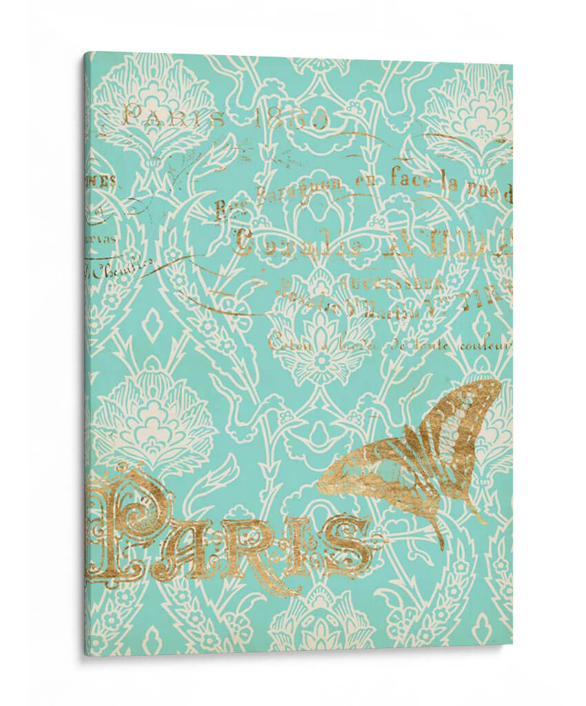 Sumérgete en la elegancia atemporal de "París En Oro Iii", una obra de arte que captura la esencia de la ciudad de la luz con un toque de sofisticación moderna. Este cuadro decorativo presenta un intrincado patrón damasco en un vibrante tono turquesa, adornado con detalles en dorado que evocan lujo y distinción. Destaca la presencia de un elegante texto en francés y una delicada mariposa, elementos que añaden profundidad y narrativa a la composición. Los colores fríos del fondo turquesa se complementan a la perfección con los destellos dorados, creando una atmósfera de calma y refinamiento. El estilo combina elementos clásicos con un toque contemporáneo, resultando en una pieza versátil que puede realzar cualquier espacio. Es ideal para añadir un punto de interés elegante a una sala de estar, un toque de ensueño a un dormitorio, o un aire de distinción a una oficina. "París En Oro Iii" no es solo una decoración, sino una invitación a soñar con paseos por las calles parisinas, una pieza que añade carácter y personalidad a tu hogar.