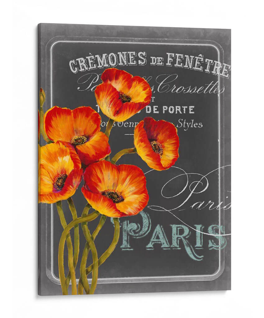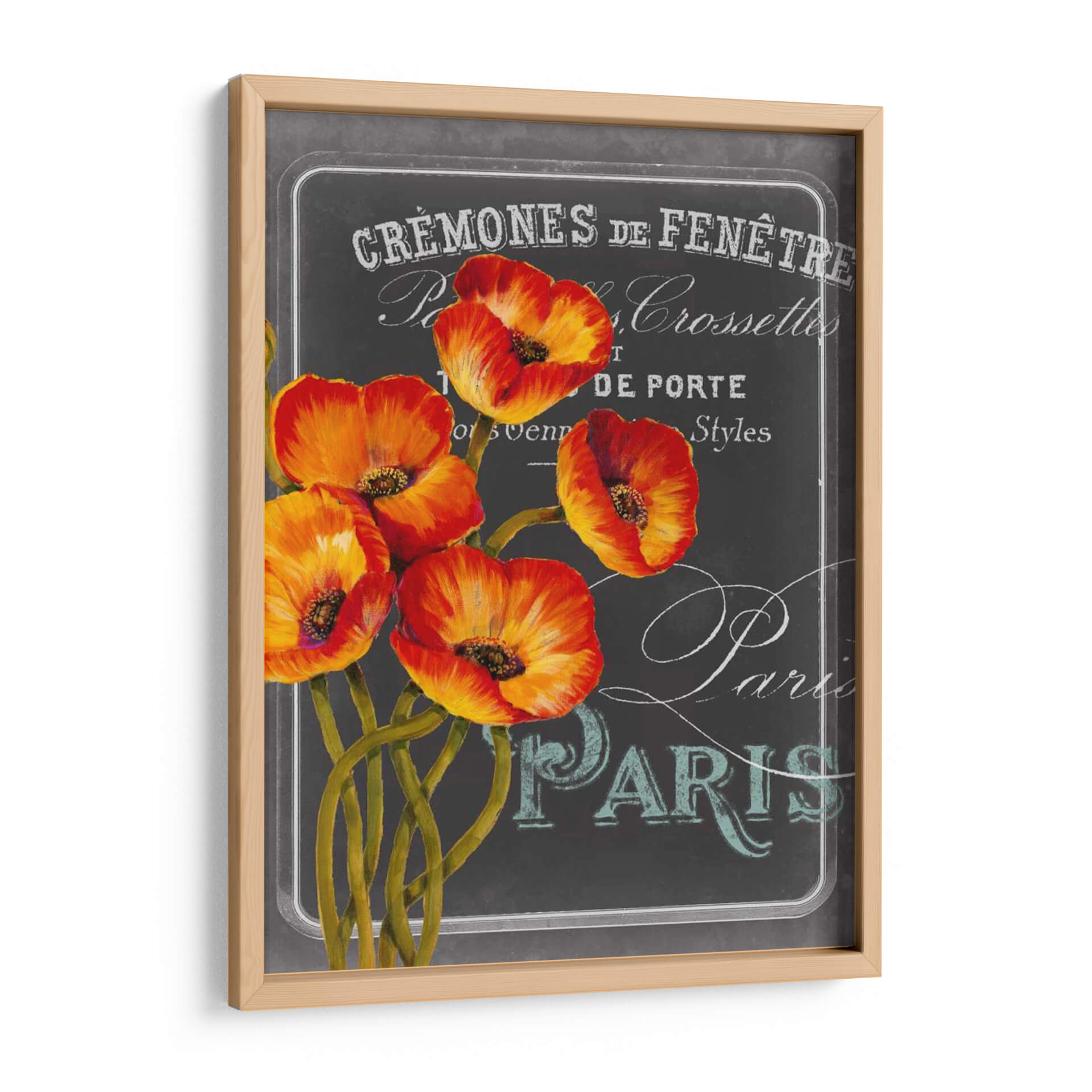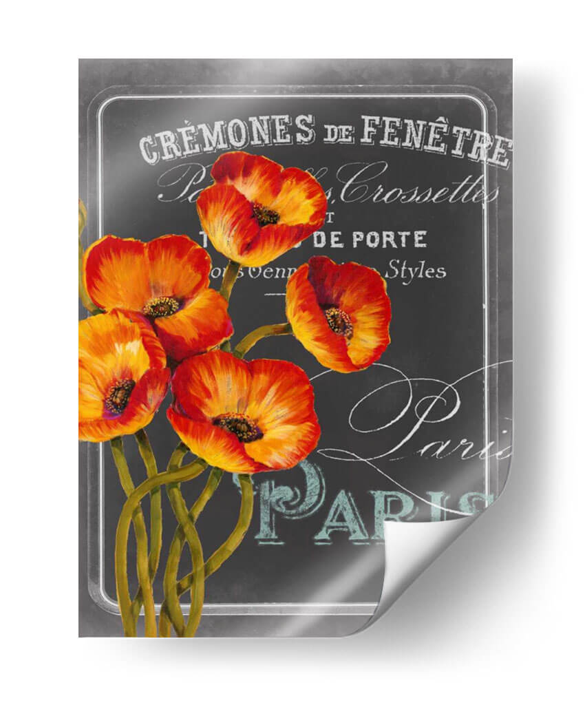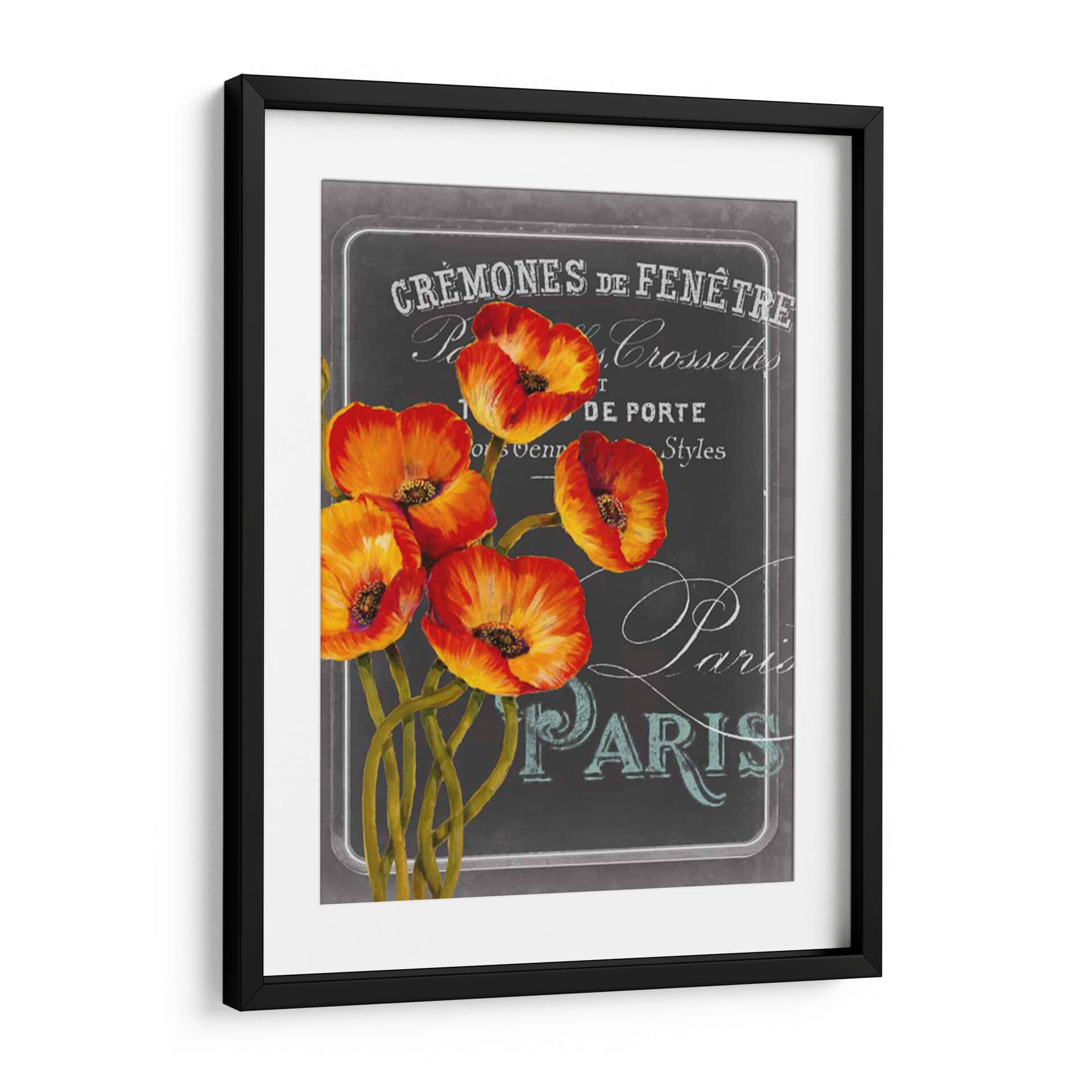 Este encantador cuadro decorativo, titulado "Pizarra Paris Iii" por Studio W, captura la esencia de la campiña francesa con un toque artístico moderno. La obra presenta un vibrante ramo de amapolas rojas y anaranjadas, cuyos pétalos detallados y explosivos contrastan maravillosamente con el fondo oscuro y texturizado que evoca una pizarra. La composición floral, realista pero con un trazo painterly, se asienta sobre un texto estilizado en francés que sugiere una conexión parisina, añadiendo un aire de sofisticación y nostalgia. Los tonos cálidos de las flores, desde el rojo intenso hasta el amarillo brillante en el centro, se combinan con los tallos verdes y el fondo de pizarra gris oscuro, creando una paleta de colores equilibrada y atractiva. Este cuadro es ideal para añadir un toque de color y vida a cualquier espacio, ya sea una sala de estar, un comedor o incluso una cocina. Su estilo rústico chic y su temática floral lo convierten en una pieza versátil, perfecta para quienes buscan una decoración de pared que combine elegancia, romance y un guiño a la cultura francesa. Una adición inspiradora que aportará calidez y carácter a tu hogar.