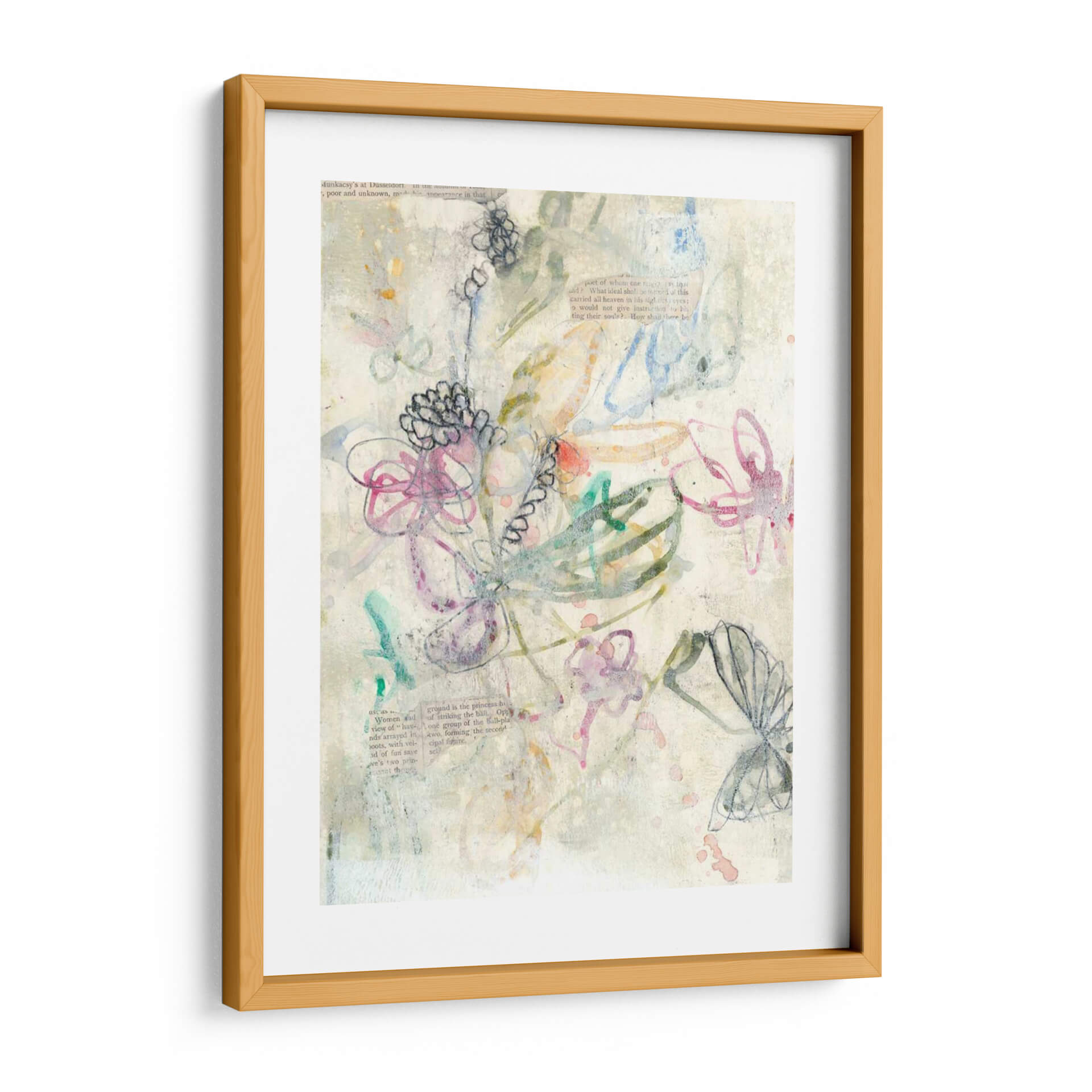 Sumérgete en la delicadeza y el encanto de "Ramo De Whimsy I", una obra de arte contemporáneo que evoca una sensación de ligereza y alegría. La pieza presenta un delicado arreglo de formas florales y elementos etéreos, creados con una técnica mixta que fusiona acuarela, tinta y fragmentos de texto antiguo, aportando una textura rica y un aire de misterio. La paleta de colores se centra en tonos pastel suaves, con toques vibrantes de fucsia, verde menta y amarillo pálido, que se entrelazan sobre un fondo neutro y texturizado. Esta composición abstracta y fluida invita a la contemplación, sugiriendo la belleza efímera de la naturaleza y la nostalgia de lo escrito. "Ramo De Whimsy I" es ideal para añadir un toque de sofisticación y dulzura a cualquier espacio, desde una sala de estar acogedora hasta un dormitorio sereno o una oficina creativa. Su estilo único lo convierte en un punto focal cautivador, capaz de transformar un ambiente y reflejar una sensibilidad artística refinada. Descubre la magia de este cuadro decorativo y permite que su encanto atemporal embellezca tu hogar u oficina, creando un rincón de inspiración y calma visual.