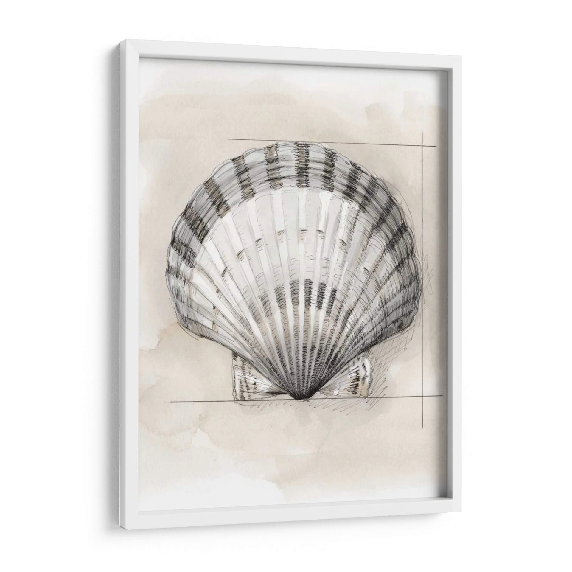 Sumérgete en la delicadeza y la belleza natural con "Shell Esquemático III", una obra de arte exquisita del artista Megan Meagher. Este cuadro decorativo captura la esencia de una concha marina con un trazo artístico que combina la precisión del boceto con la suavidad de la acuarela. Los tonos neutros y terrosos del fondo, sutilmente manchados, crean una atmósfera de calma y serenidad, realzando los detalles intrincados de la concha. La composición se centra en la figura principal, utilizando líneas finas y sombreados para dar profundidad y volumen, mientras que un encuadre lineal minimalista aporta un toque contemporáneo. Esta pieza evoca una sensación de conexión con el mar y la naturaleza, ideal para espacios que buscan un refugio de paz y elegancia. "Shell Esquemático III" es perfecto para añadir un elemento orgánico y sofisticado a tu sala de estar, dormitorio o estudio, complementando decoraciones modernas, escandinavas o costeras. Deja que la sutileza y el encanto de esta obra transformen tu hogar en un oasis de tranquilidad y estilo, invitando a la contemplación y al deleite visual con cada mirada.
