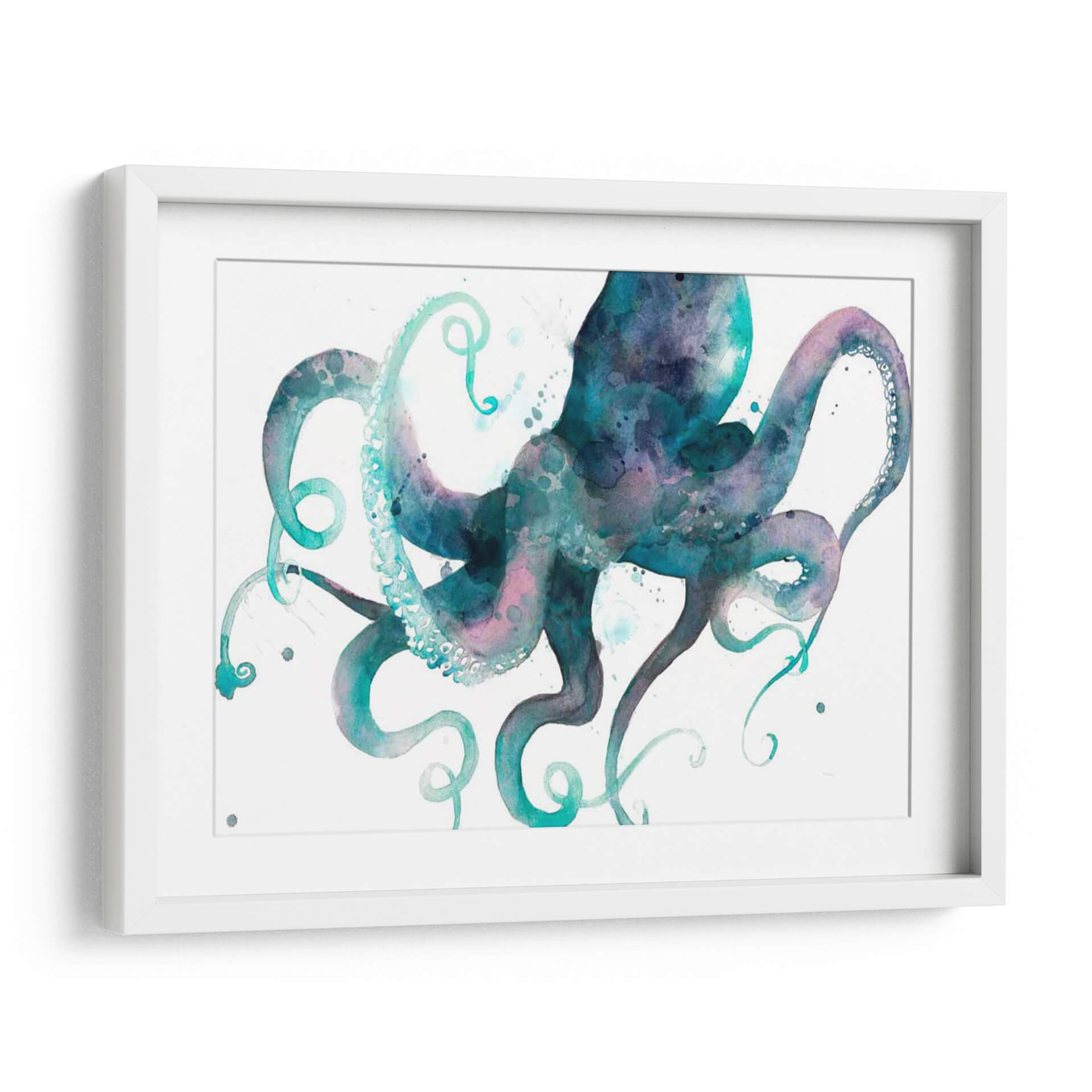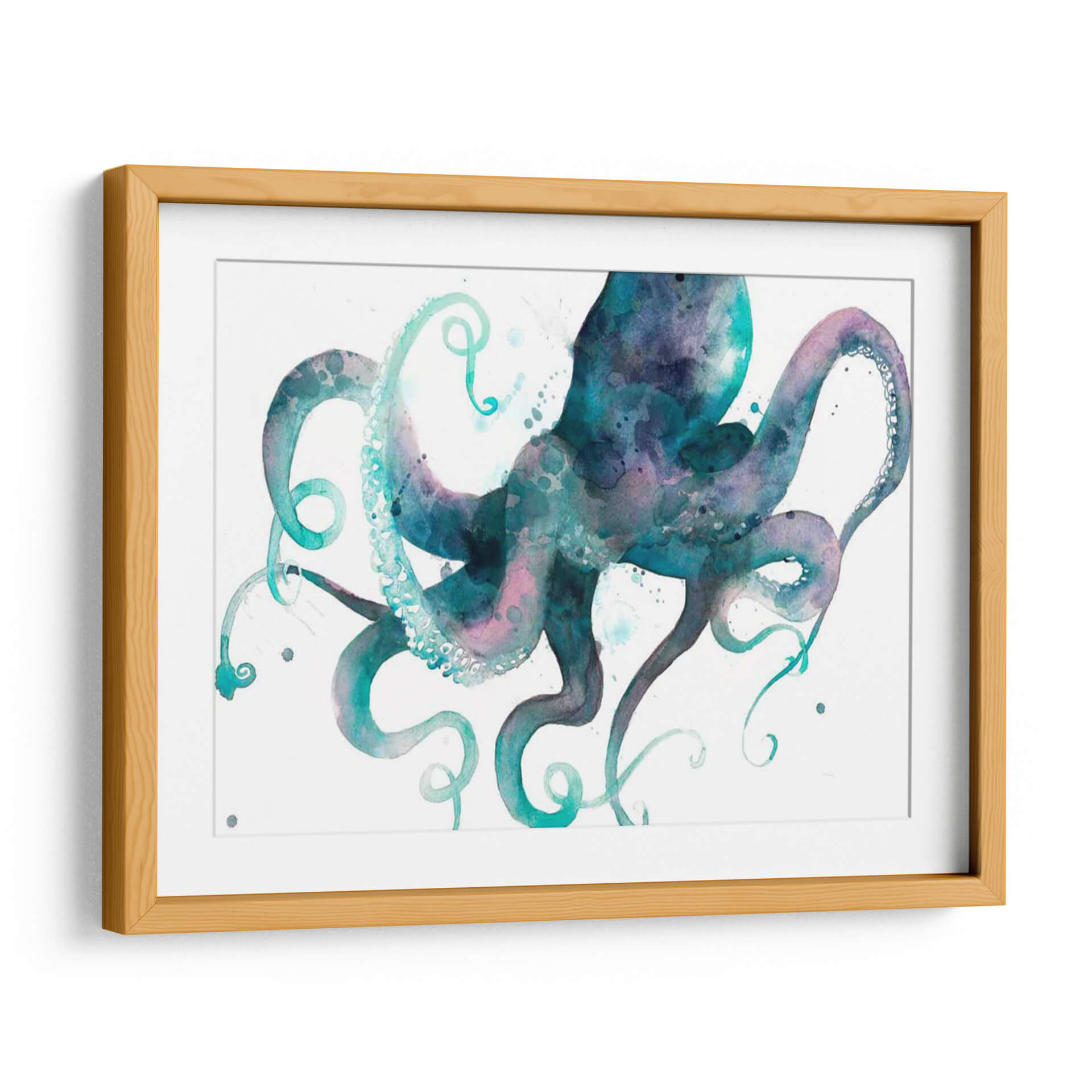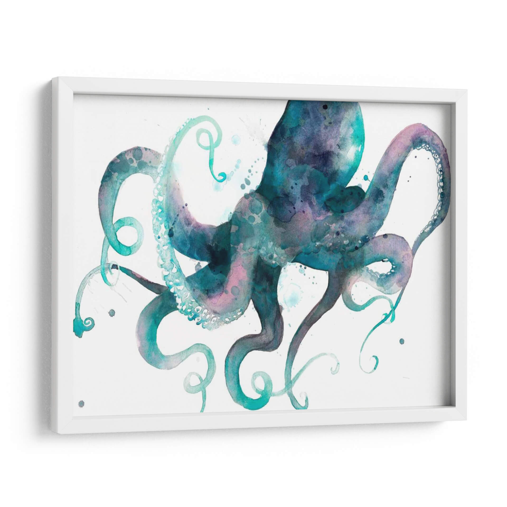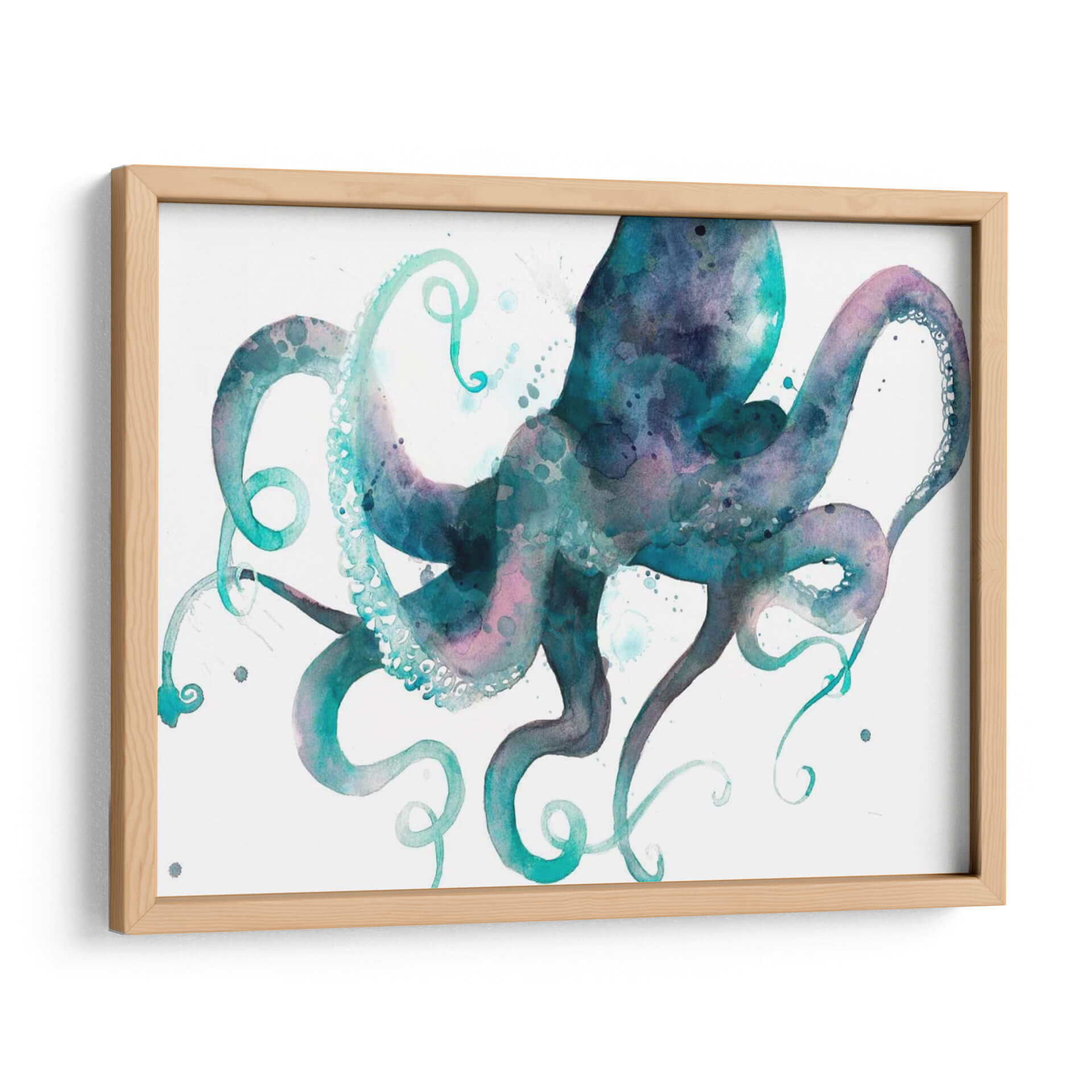 Sumérgete en las profundidades marinas con "Tentáculos II", una cautivadora obra de arte de Grace Popp que captura la enigmática belleza de un pulpo en acuarela. Esta pieza evoca una sensación de misterio y fluidez, con sus tentáculos elegantemente desplegados sobre un fondo blanco inmaculado. La paleta de colores, dominada por vibrantes tonos de azul turquesa, morado profundo y toques de rosa pálido, crea un contraste hipnotizante que atrae la mirada y estimula la imaginación. El estilo de acuarela, con sus sutiles difuminados y salpicaduras, confiere a la obra una ligereza etérea y un toque de dinamismo, como si el pulpo danzara en las corrientes. La composición es equilibrada, permitiendo que la figura central sea el foco de atención sin abrumar el espacio. "Tentáculos II" es ideal para añadir un toque de sofisticación y naturaleza marina a cualquier estancia, desde una sala de estar moderna hasta un sereno dormitorio o una oficina inspiradora. Este cuadro decorativo es perfecto para amantes del arte, entusiastas del océano y cualquiera que busque una pieza única que celebre la vida marina con elegancia y un toque artístico contemporáneo.