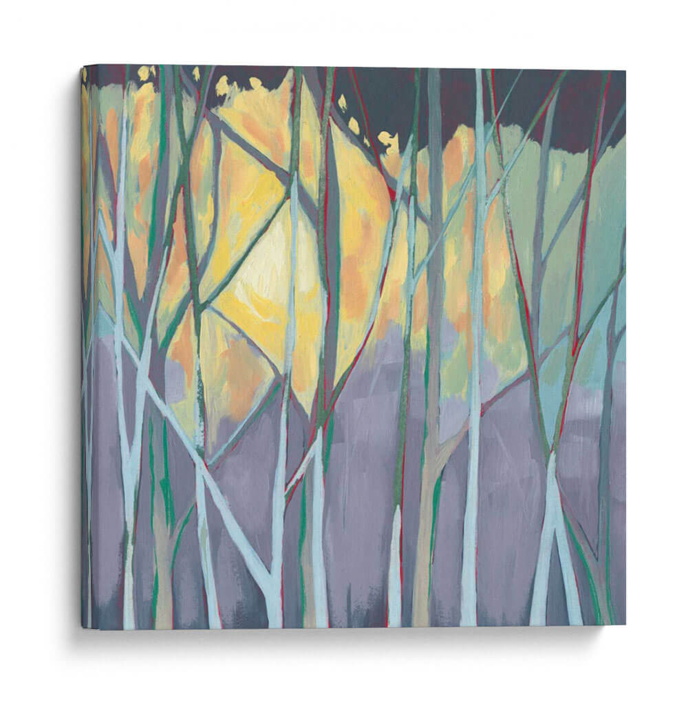 Adéntrate en la atmósfera serena y cautivadora de "Twilight Enredado I", una obra de arte contemporáneo que captura la esencia de un bosque al anochecer con un toque de ensueño. Las líneas verticales estilizadas, que recuerdan a los troncos de los árboles, se entrelazan y cruzan, creando una composición dinámica y a la vez armoniosa. La paleta de colores es un elemento destacado, con tonos fríos de gris y azul que contrastan suavemente con los cálidos amarillos y naranjas del atardecer que se filtran entre las ramas. El fondo, con sus pinceladas sueltas y etéreas, evoca una sensación de misterio y profundidad. Este cuadro decorativo es perfecto para añadir un toque de naturaleza estilizada y tranquilidad a cualquier espacio, ya sea una sala de estar moderna, un dormitorio acogedor o una oficina que busque inspiración. "Twilight Enredado I" no es solo una pieza decorativa, sino una ventana a un momento de calma y reflexión, ideal para aquellos que aprecian el arte abstracto con una conexión sutil con el mundo natural. Su diseño único y su evocadora atmósfera lo convierten en una adición memorable a tu colección de arte de pared.