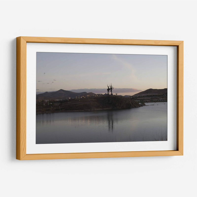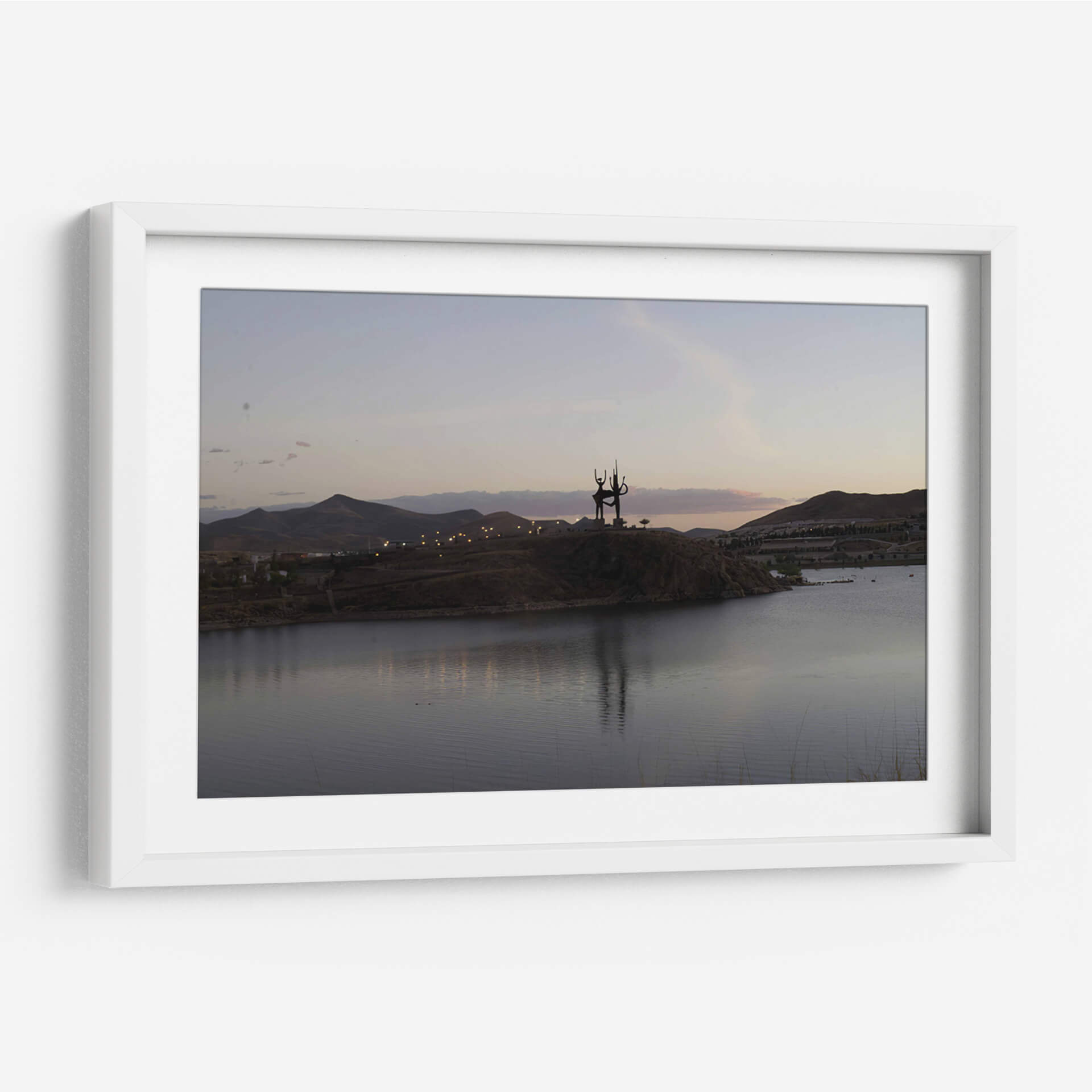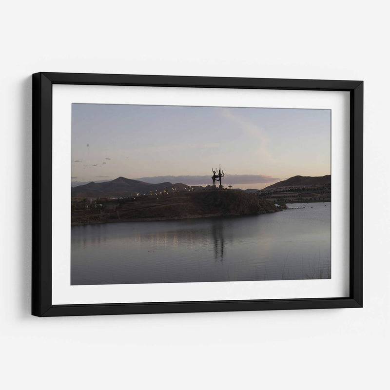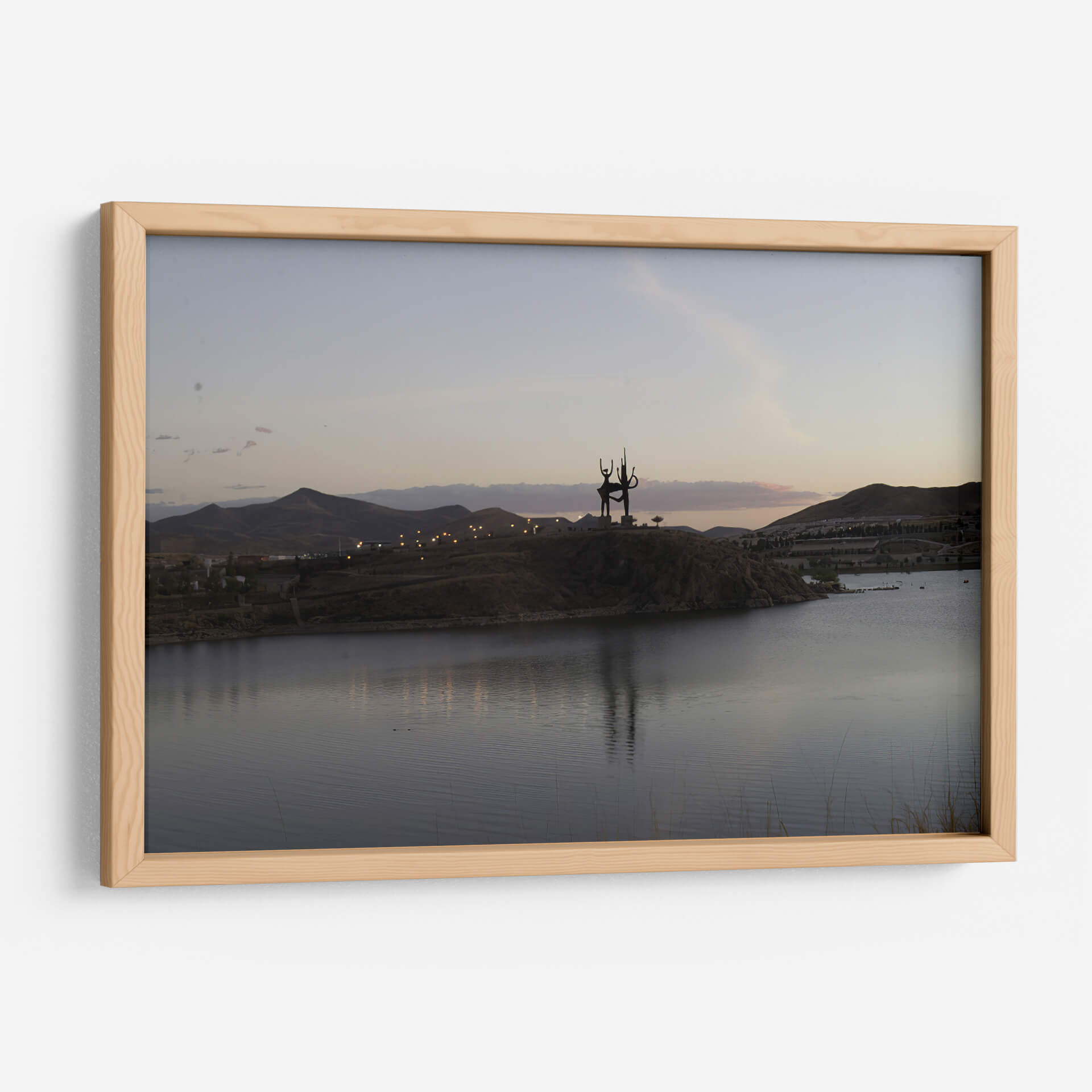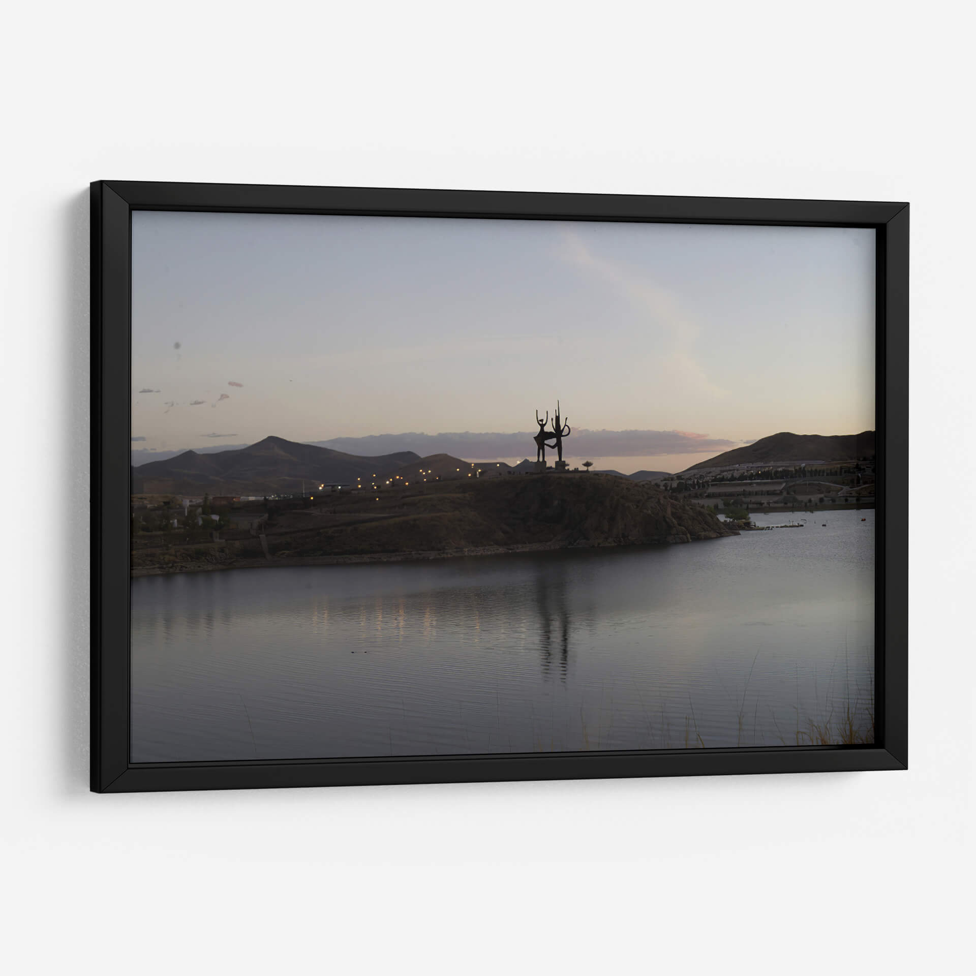 Sumérgete en la serena belleza de 'Lago', una obra de Álvaro Martín que captura la tranquilidad de un atardecer junto a un cuerpo de agua rodeado de colinas. La paleta de colores suaves, con tonos azules y grises predominantes, junto con los cálidos destellos de las luces en la distancia, crea una atmósfera de paz y contemplación. La composición, que equilibra el vasto paisaje acuático con la silueta distintiva de una escultura en la cima de una colina, invita a la reflexión. Este cuadro decorativo es perfecto para espacios que buscan un refugio de calma y serenidad, como dormitorios, salas de estar o estudios. La sutil presencia de luces urbanas en el horizonte añade un toque de vida y modernidad a la escena natural, haciendo de esta pieza una adición versátil para cualquier hogar u oficina que aprecie la belleza del paisaje y la naturaleza en un momento de transición.