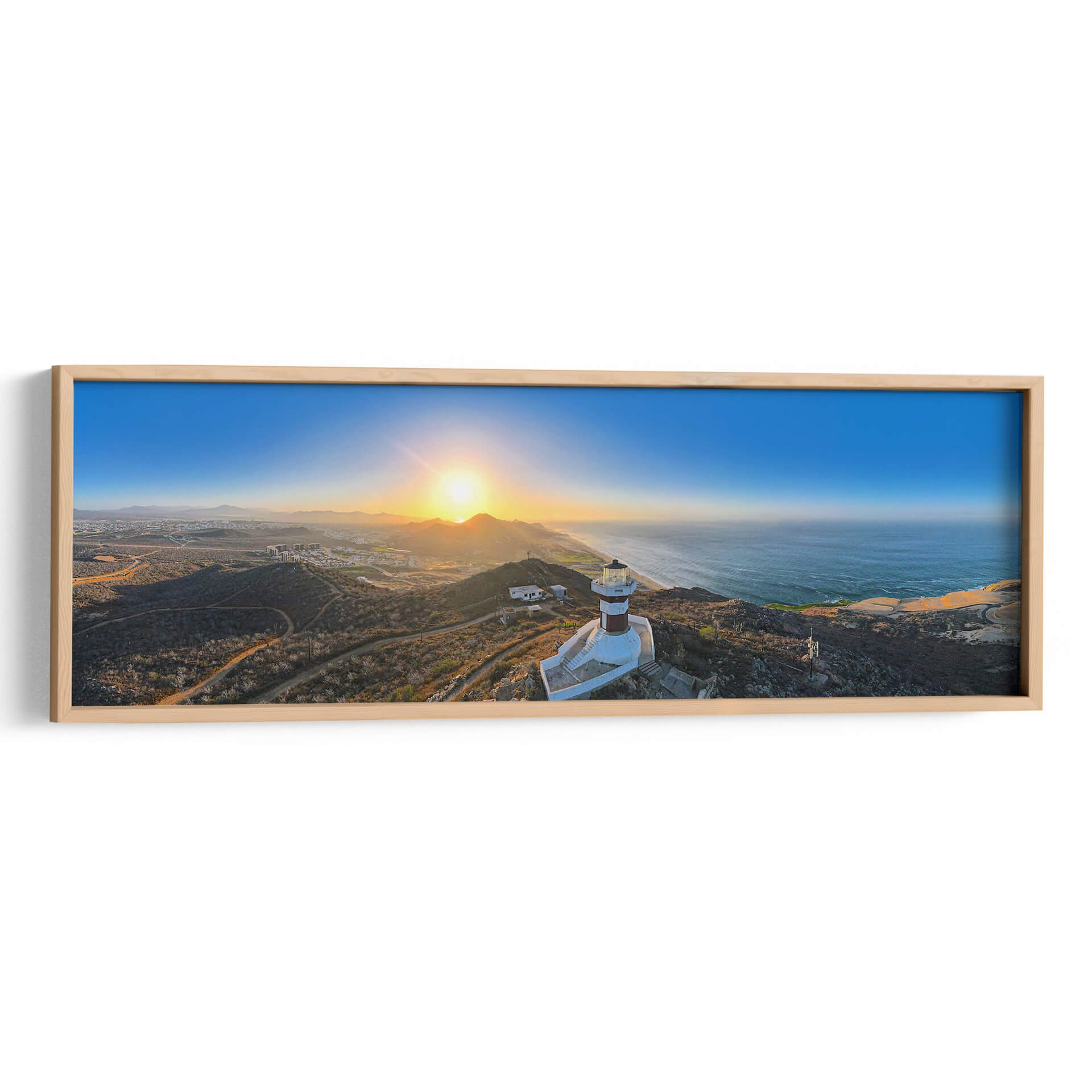 Captura la majestuosidad de la costa con 'FARO CSL', una obra de arte que evoca la fuerza y la serenidad del mar. Esta pieza, creada por Ángel Barraza Ramírez, presenta una vista panorámica impresionante de un faro enclavado en una colina, bañado por la luz dorada del atardecer. La paleta de colores, dominada por azules profundos del océano y el cielo, contrasta con los tonos cálidos de la tierra y el sol poniente, creando una atmósfera de paz y contemplación. La composición dinámica, con el faro como punto focal y la extensión del paisaje extendiéndose hasta el horizonte, invita a la reflexión sobre la soledad, la guía y la belleza natural. Este cuadro decorativo es ideal para añadir un toque de inspiración y tranquilidad a tu hogar u oficina. Perfecto para salas de estar, dormitorios o estudios, 'FARO CSL' transformará cualquier espacio en un refugio de calma y belleza paisajística, transportando la esencia de la costa directamente a tu entorno. Su estilo fotográfico y realista resalta la grandiosidad de la naturaleza y la presencia humana en ella, convirtiéndola en una adición impactante para los amantes de los paisajes marinos y las vistas panorámicas.