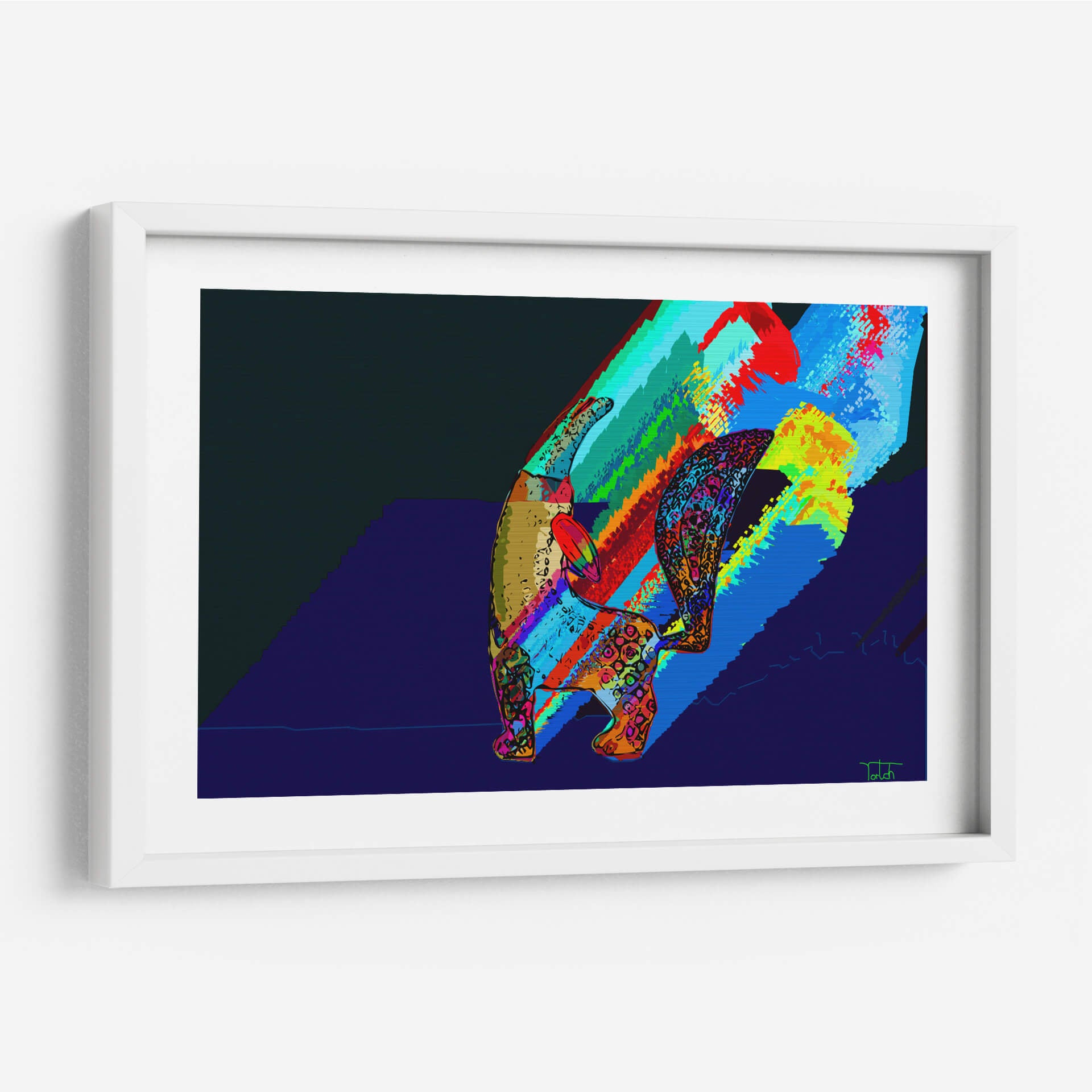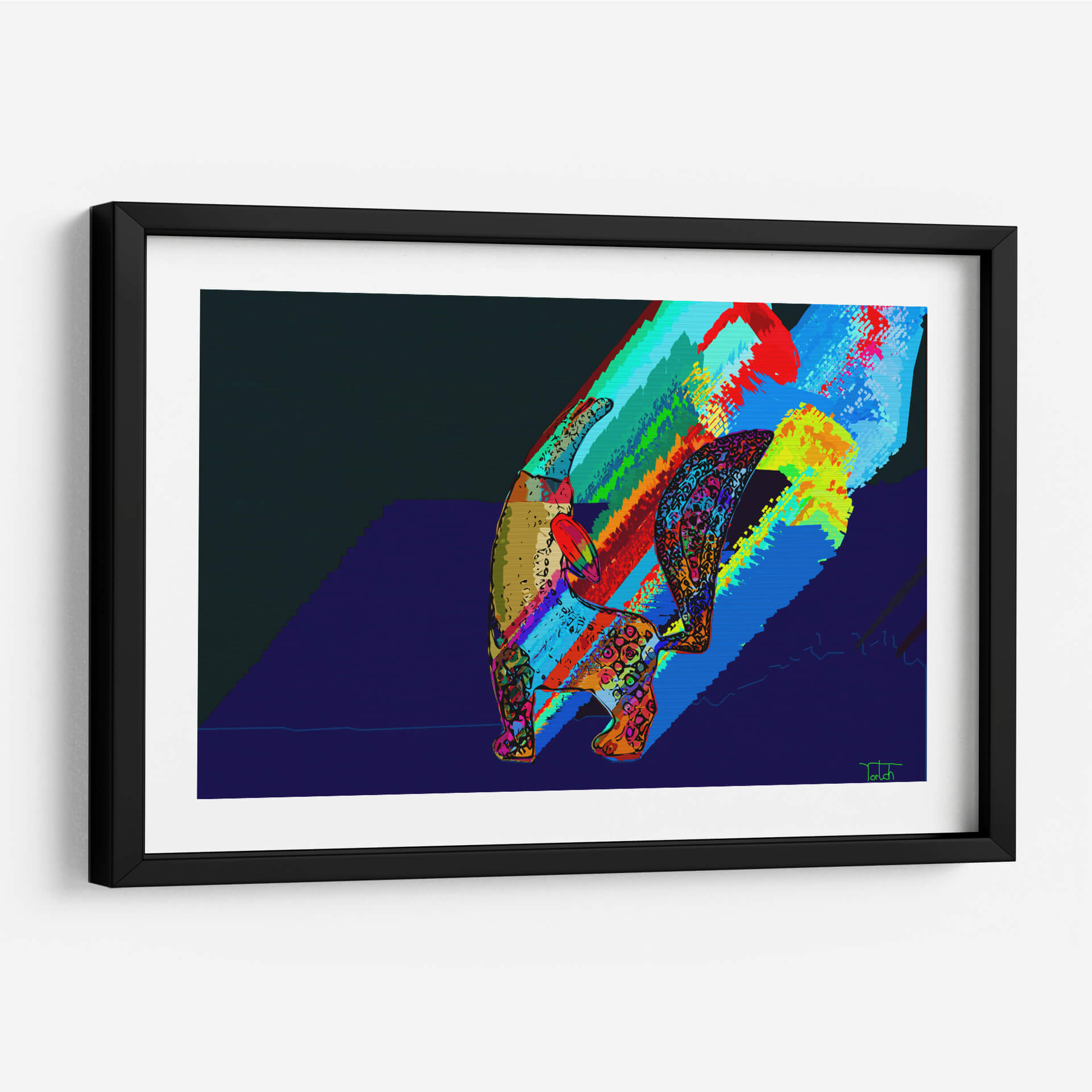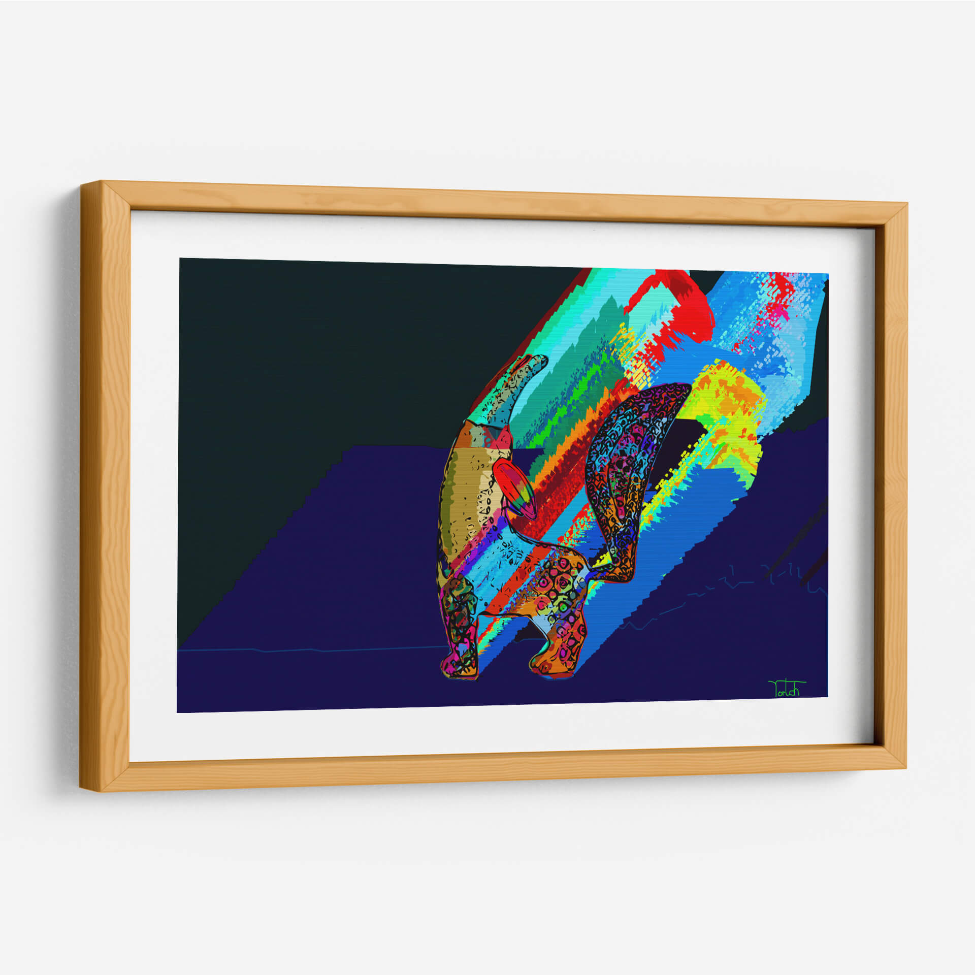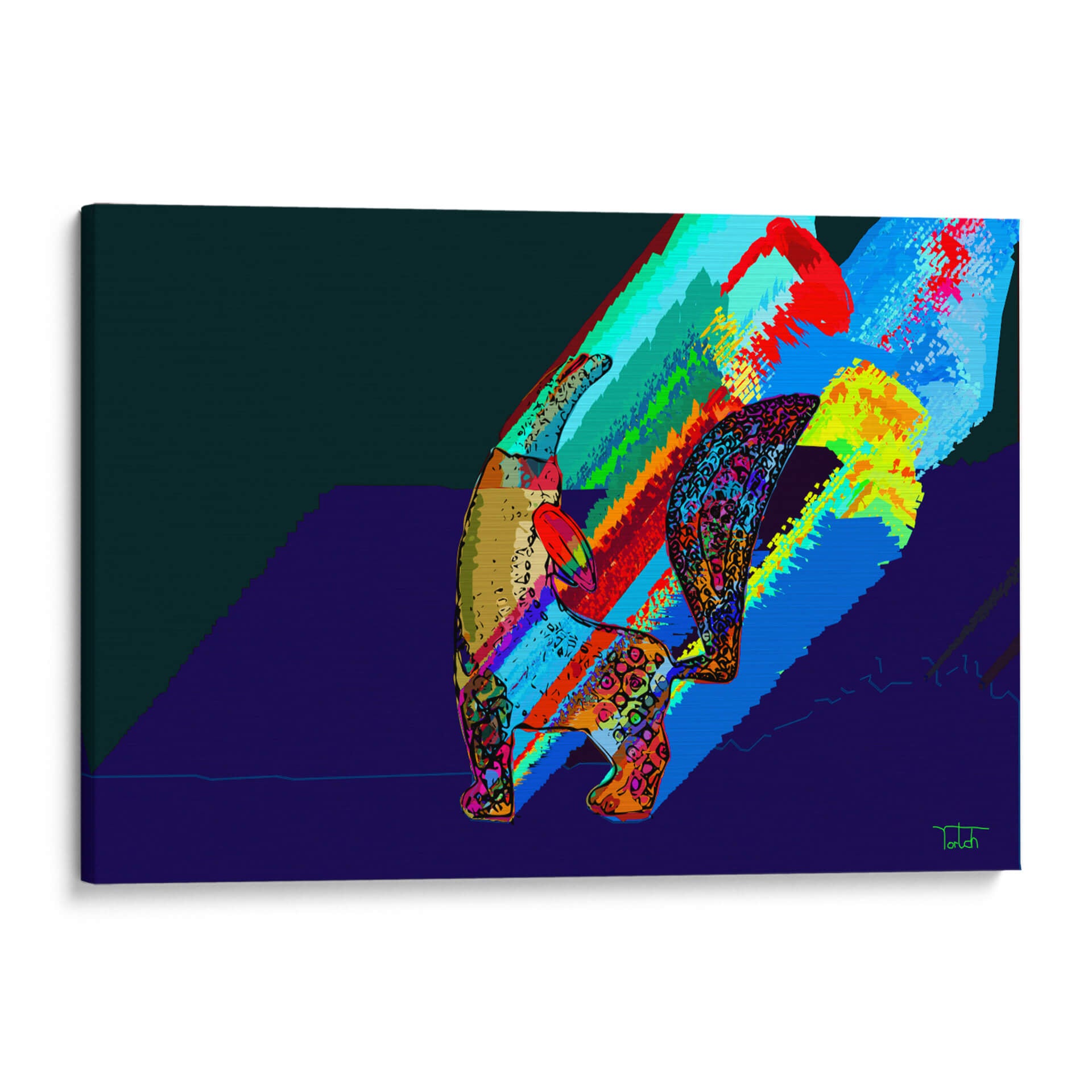 Sumérgete en el vibrante mundo de "Alebrijes 7 - El Coyote", una obra de arte contemporáneo que captura la esencia mística de estas fantásticas criaturas mexicanas. Este cuadro decorativo, creado por el artista Yortch, fusiona la figura estilizada de un coyote con un torbellino de colores y texturas dinámicas. El fondo, dividido en zonas de azul profundo y verde oscuro, contrasta con las pinceladas audaces y llenas de energía que atraviesan la composición, creando un juego de luces y sombras que atrae la mirada. Los detalles intrincados en el cuerpo del coyote, que evocan patrones tribales y formas orgánicas, invitan a una exploración visual profunda. Esta pieza es ideal para quienes buscan añadir un toque de audacia y un punto focal exótico a su hogar u oficina. Su estilo único, que combina elementos figurativos con abstracción expresionista, lo convierte en una declaración artística potente, perfecta para espacios que buscan inspiración y originalidad. "Alebrijes 7 - El Coyote" no es solo una decoración, es una ventana a la rica tradición del arte popular mexicano, reinterpretada con una sensibilidad moderna y audaz, que sin duda generará conversación y admiración.