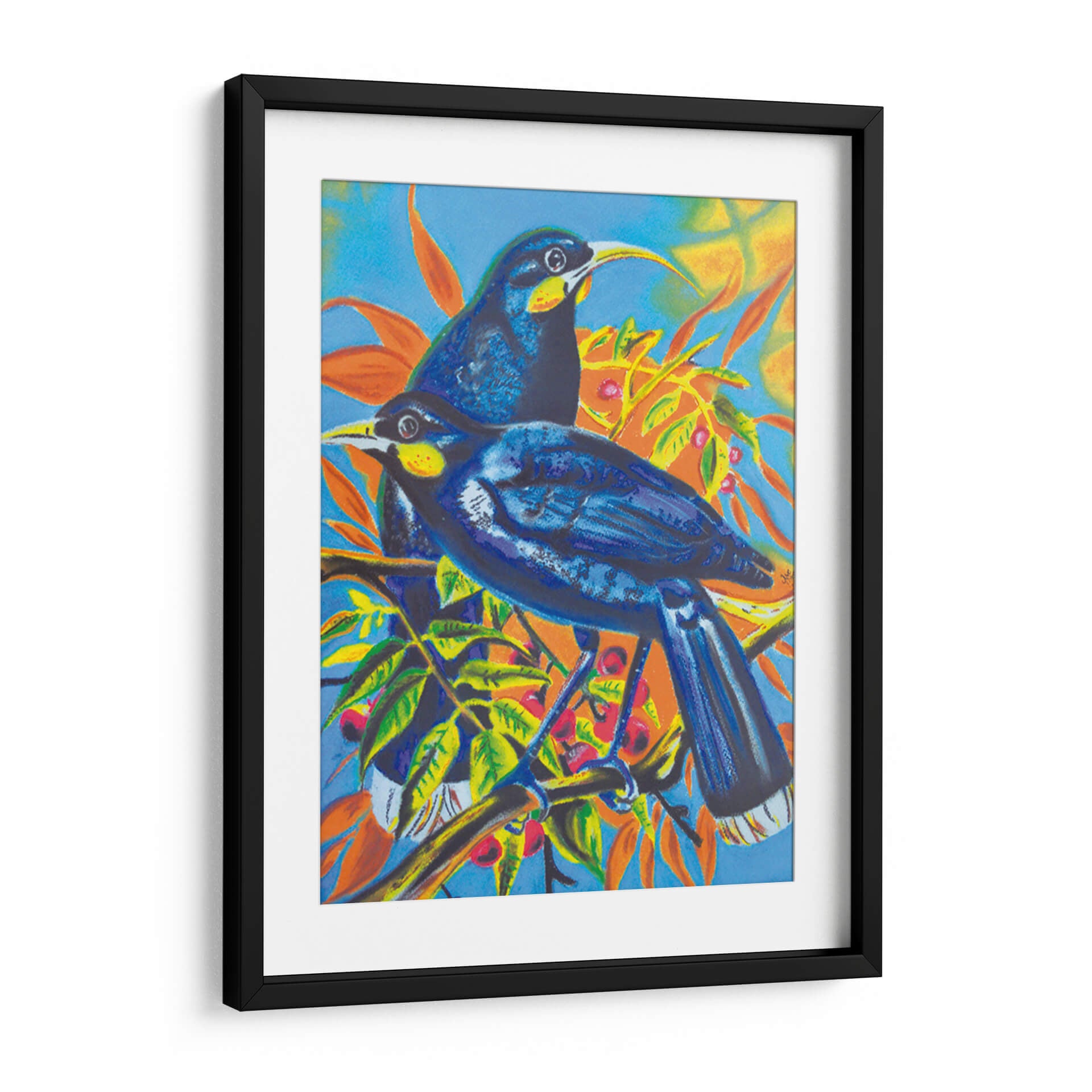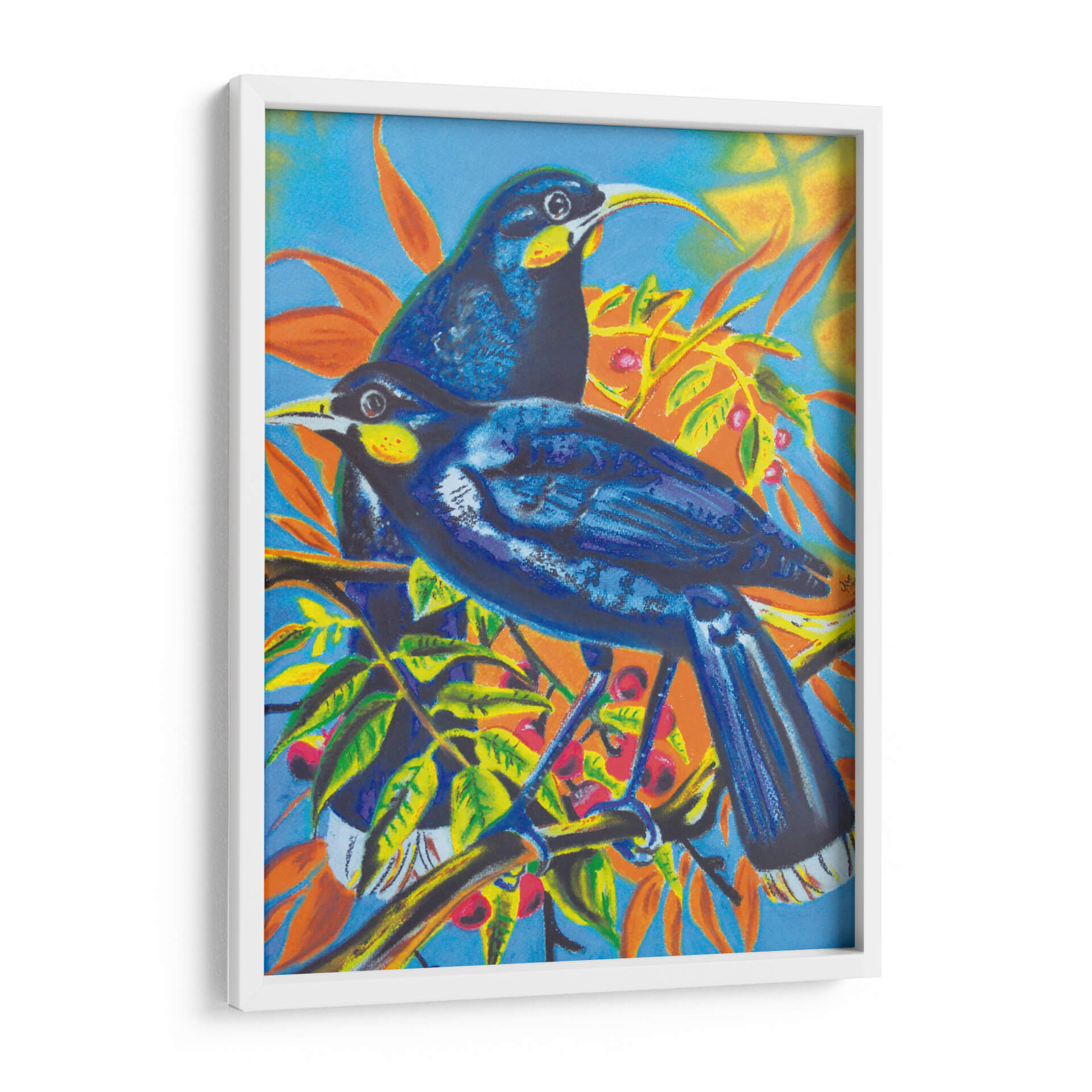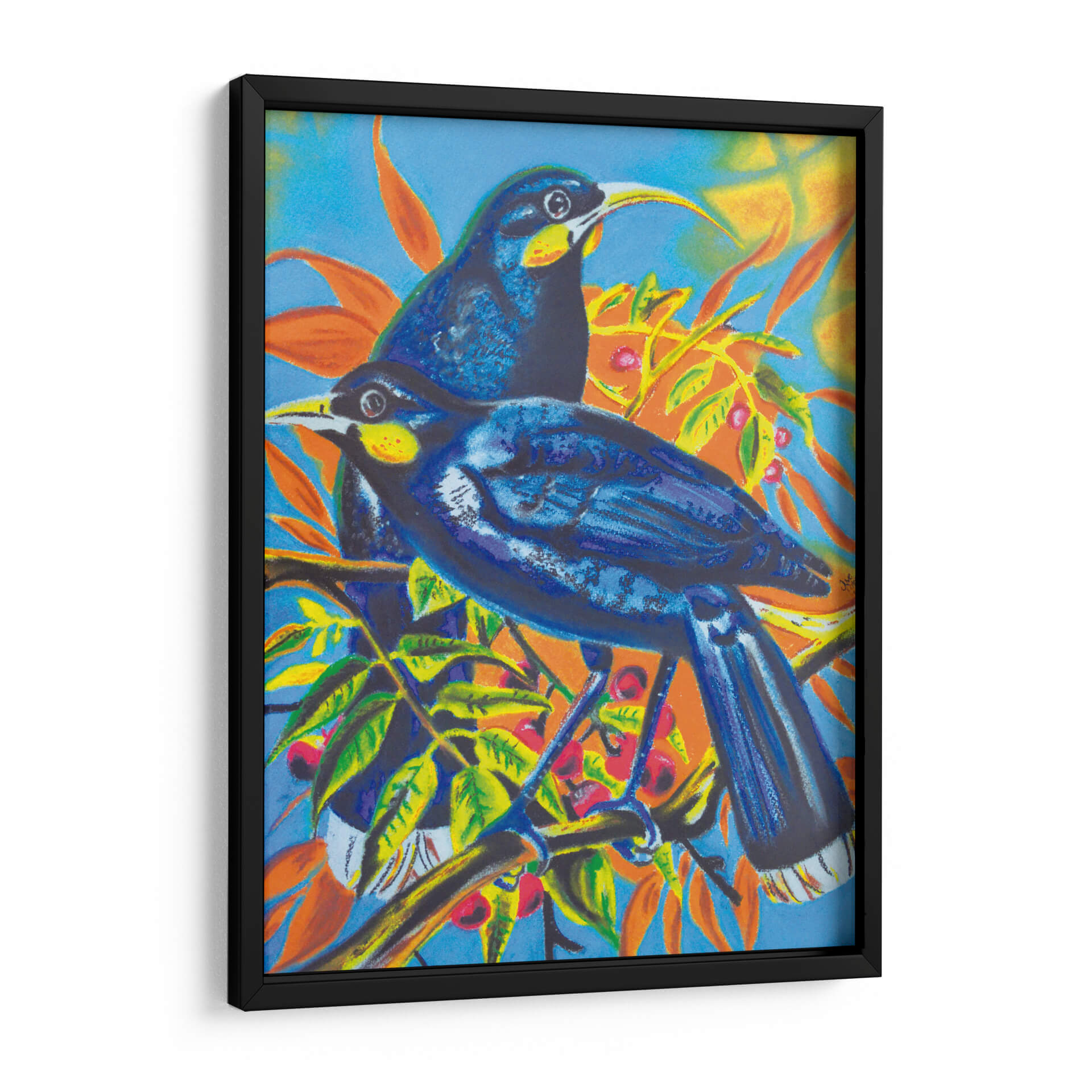 Sumérgete en la vibrante escena natural capturada por Juventino en su obra "Huías". Este cautivador cuadro decorativo presenta dos aves de plumaje azul profundo posadas en una rama, rodeadas de hojas en tonos naranjas y amarillos y frutos rojos, todo ello sobre un fondo de cielo azul intenso. La técnica empleada, con pinceladas audaces y una paleta de colores rica y contrastante, evoca una sensación de vitalidad y la belleza intrínseca de la fauna. Los ojos de las aves, de un amarillo brillante, aportan un punto de luz y expresividad a la composición. "Huías" es ideal para añadir un toque de color y vida a cualquier espacio, desde una sala de estar moderna hasta un estudio acogedor o una oficina que busque un elemento inspirador. La obra transmite una atmósfera de calma y observación, invitando al espectador a contemplar la armonía de la naturaleza. Su estilo particular, que fusiona elementos figurativos con una pincelada expresionista, la convierte en una pieza única que capturará la atención y generará conversación.