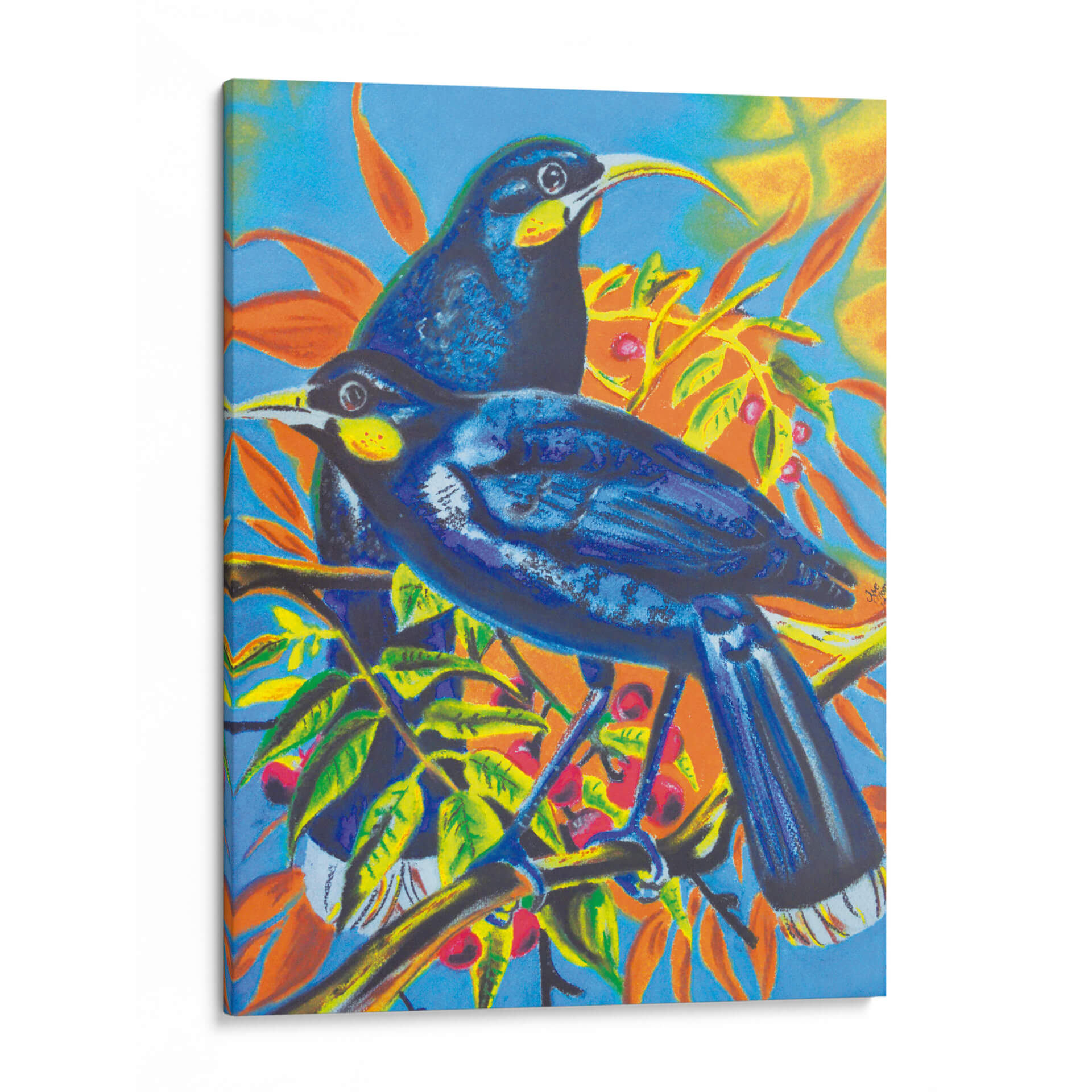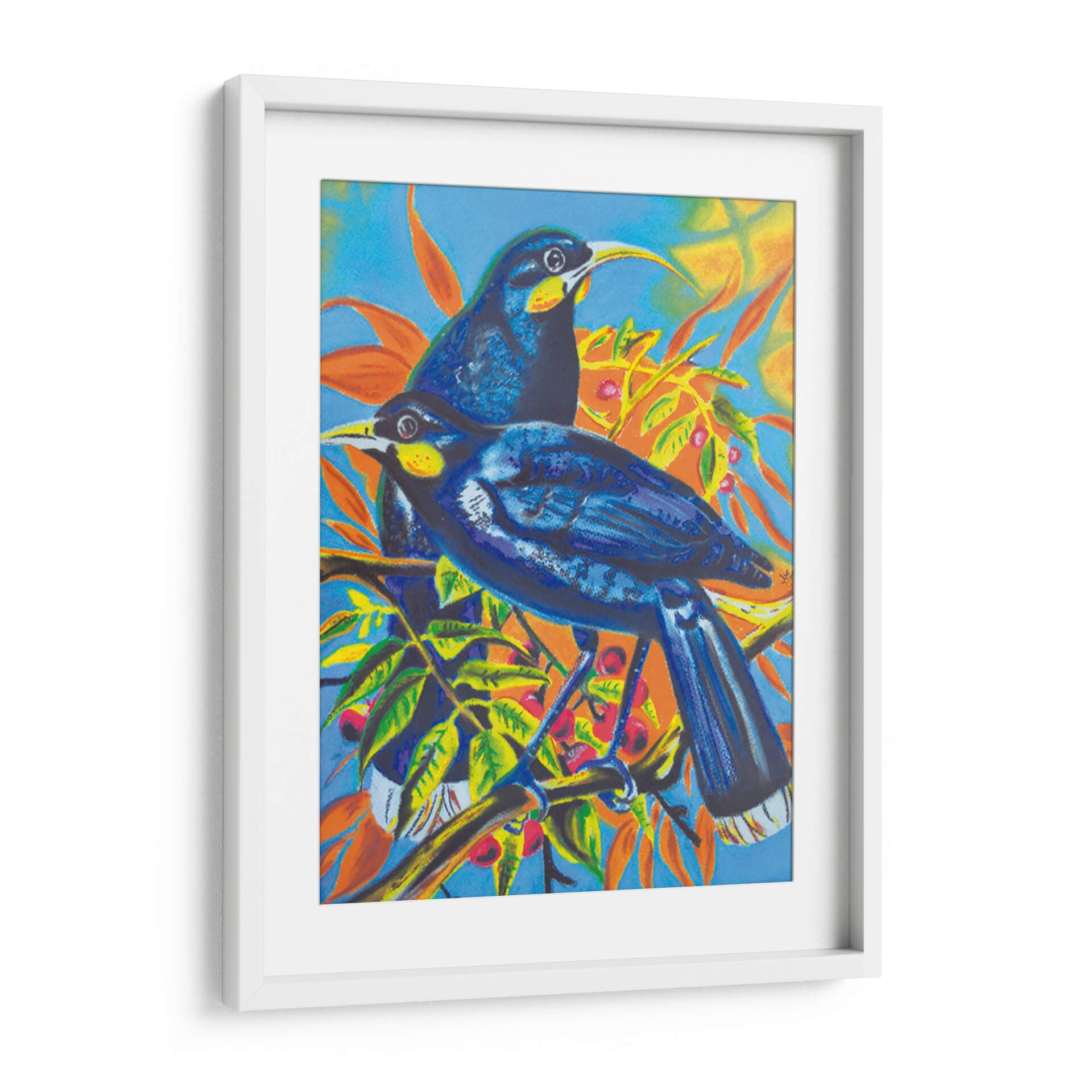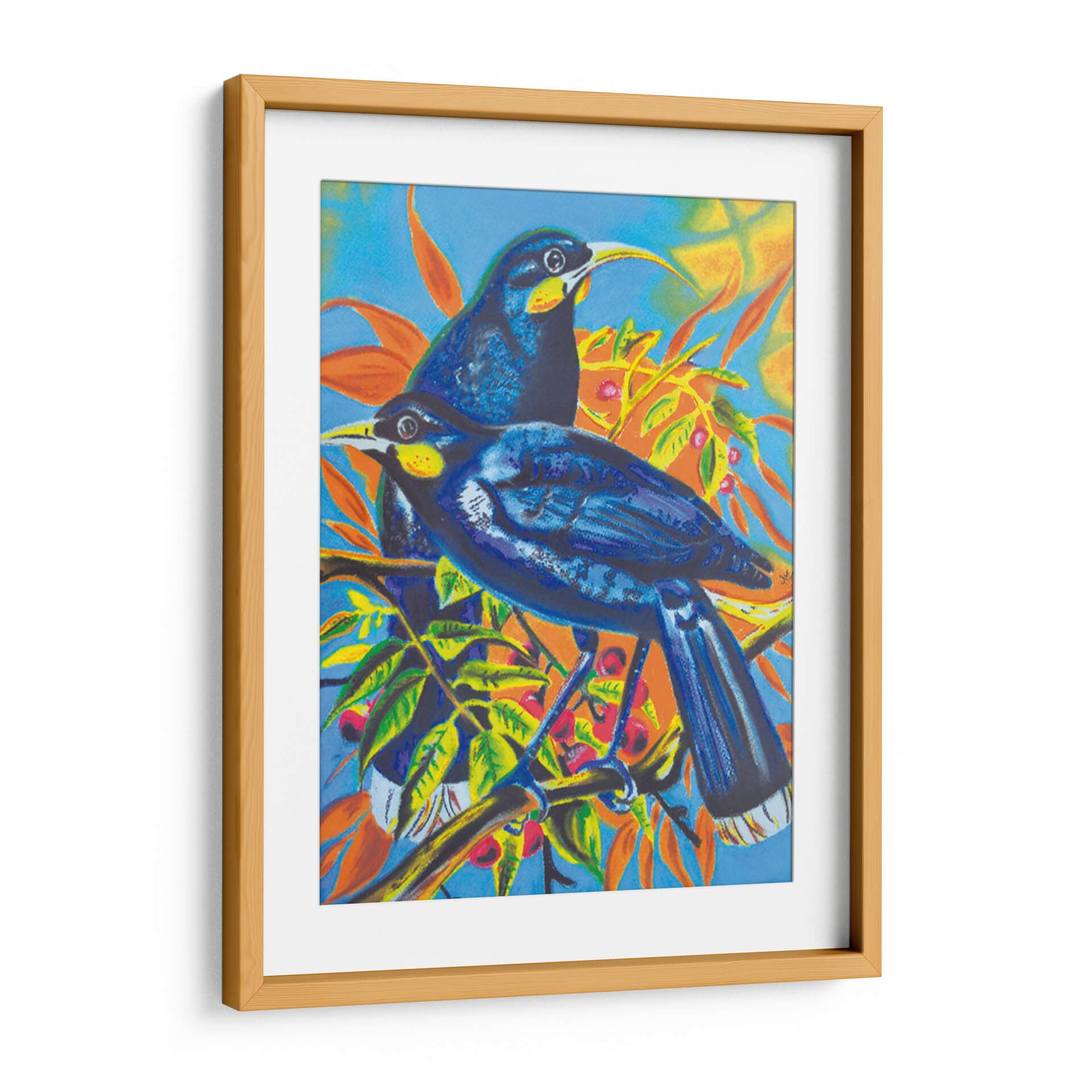 Sumérgete en la vibrante escena natural capturada por Juventino en su obra "Huías". Este cautivador cuadro decorativo presenta dos aves de plumaje azul profundo posadas en una rama, rodeadas de hojas en tonos naranjas y amarillos y frutos rojos, todo ello sobre un fondo de cielo azul intenso. La técnica empleada, con pinceladas audaces y una paleta de colores rica y contrastante, evoca una sensación de vitalidad y la belleza intrínseca de la fauna. Los ojos de las aves, de un amarillo brillante, aportan un punto de luz y expresividad a la composición. "Huías" es ideal para añadir un toque de color y vida a cualquier espacio, desde una sala de estar moderna hasta un estudio acogedor o una oficina que busque un elemento inspirador. La obra transmite una atmósfera de calma y observación, invitando al espectador a contemplar la armonía de la naturaleza. Su estilo particular, que fusiona elementos figurativos con una pincelada expresionista, la convierte en una pieza única que capturará la atención y generará conversación.