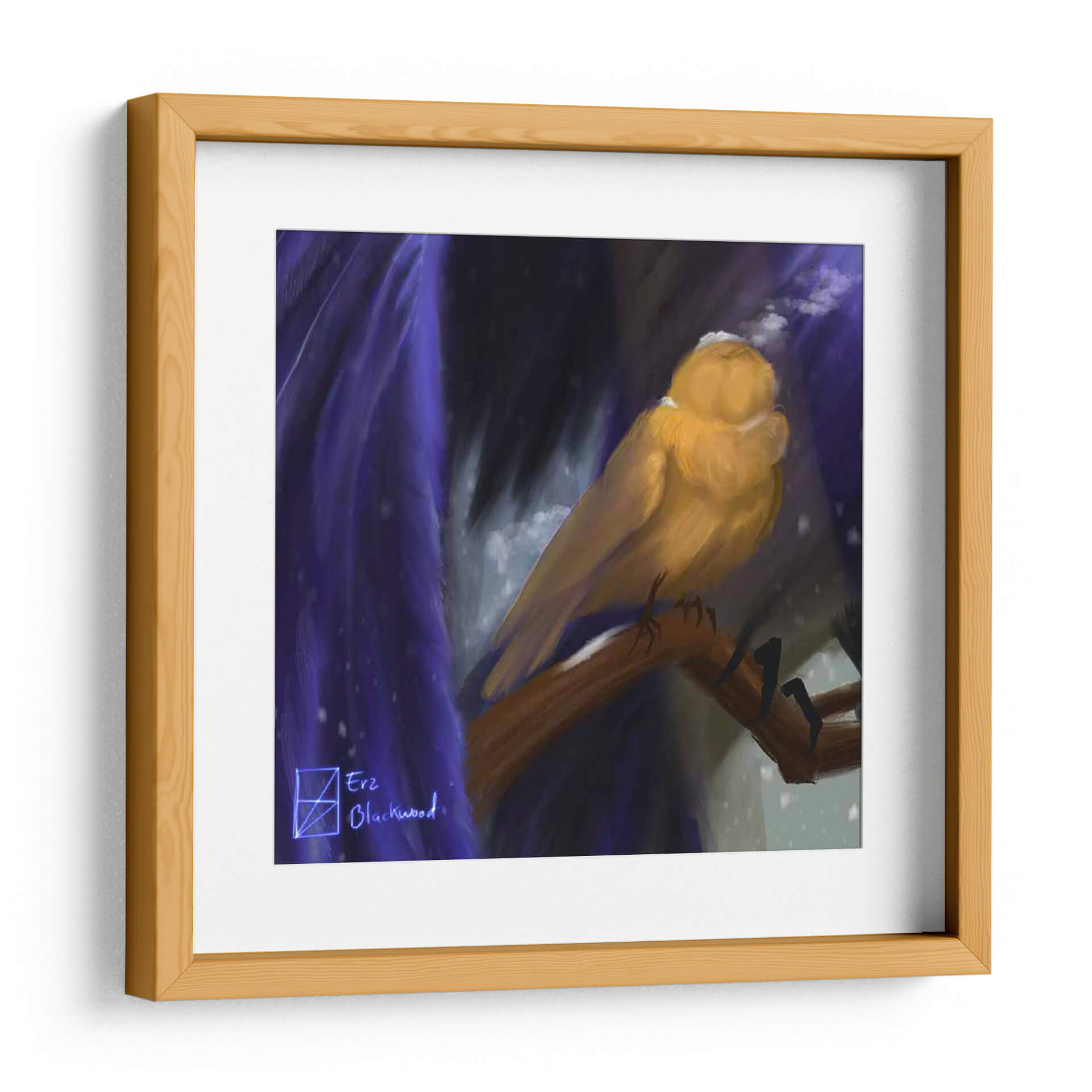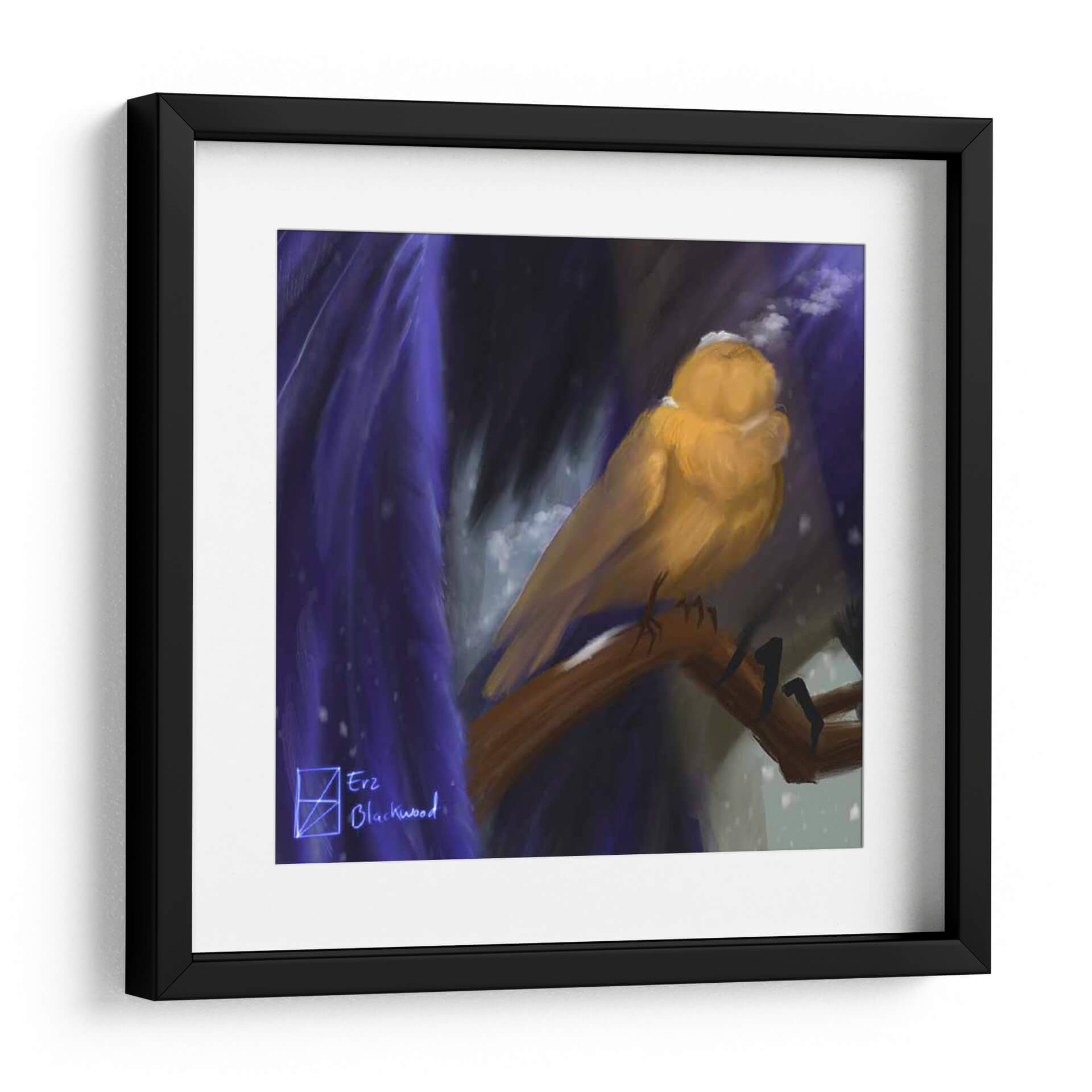 Sumérgete en la serenidad invernal con "Winter Sunshine", una obra de arte cautivadora de Erz Blackwood. Este cuadro decorativo captura un momento de calma y belleza natural, con un vibrante pájaro amarillo posado en una rama, resaltando contra un fondo de fríos tonos azules y púrpuras profundos. La delicada representación de la nieve cayendo añade un toque etéreo, invitando a la reflexión y a la paz interior. La técnica pictórica, con pinceladas audaces y un juego de luces y sombras, otorga profundidad y textura a la pieza, creando una atmósfera casi tangible. "Winter Sunshine" es ideal para infundir serenidad y un toque de color a cualquier espacio, desde un rincón de lectura acogedor hasta una sala de estar moderna. Este cuadro no es solo una decoración, sino una ventana a un paisaje invernal que evoca calidez a pesar del frío, perfecto para quienes buscan una conexión con la naturaleza y un arte que hable al alma. Su estilo contemporáneo y su paleta de colores contrastante lo convierten en un punto focal único para tu hogar u oficina, añadiendo un toque de sofisticación y encanto.
