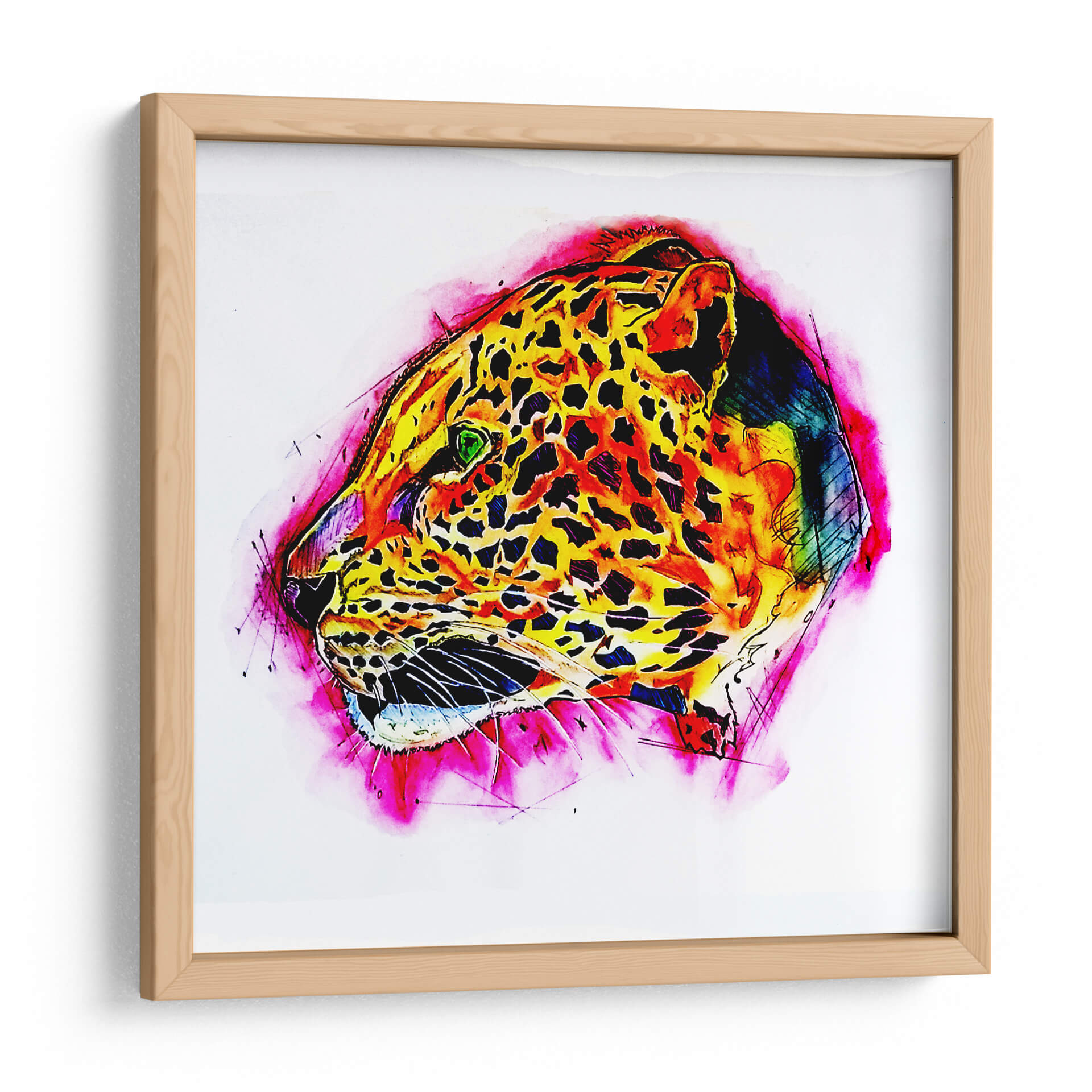 Captura la esencia salvaje y vibrante de la naturaleza con "Balam", una obra de arte contemporáneo que evoca la majestuosidad del jaguar. Este cuadro decorativo presenta un primer plano detallado de la cabeza de este felino, resaltando sus icónicos patrones de manchas en una explosión de colores cálidos: naranjas intensos, amarillos ardientes y rojos profundos, contrastando con sutiles toques de azul y verde que añaden dimensión y misterio. La técnica mixta, que combina trazos enérgicos y una pincelada suelta, crea una sensación de movimiento y vitalidad, mientras que el fondo blanco roto y las salpicaduras de color magenta enmarcan la figura con una audacia contemporánea. El verde penetrante de los ojos del jaguar atrae la mirada, transmitiendo una poderosa energía y una mirada penetrante. "Balam" es ideal para espacios que buscan un toque de sofisticación salvaje, como salas de estar modernas, estudios o incluso oficinas que deseen un punto focal dinámico y lleno de carácter. Este cuadro decorativo es una pieza única que infunde pasión y fuerza en cualquier ambiente, invitando a la contemplación de la belleza indómita de uno de los animales más fascinantes del planeta.
