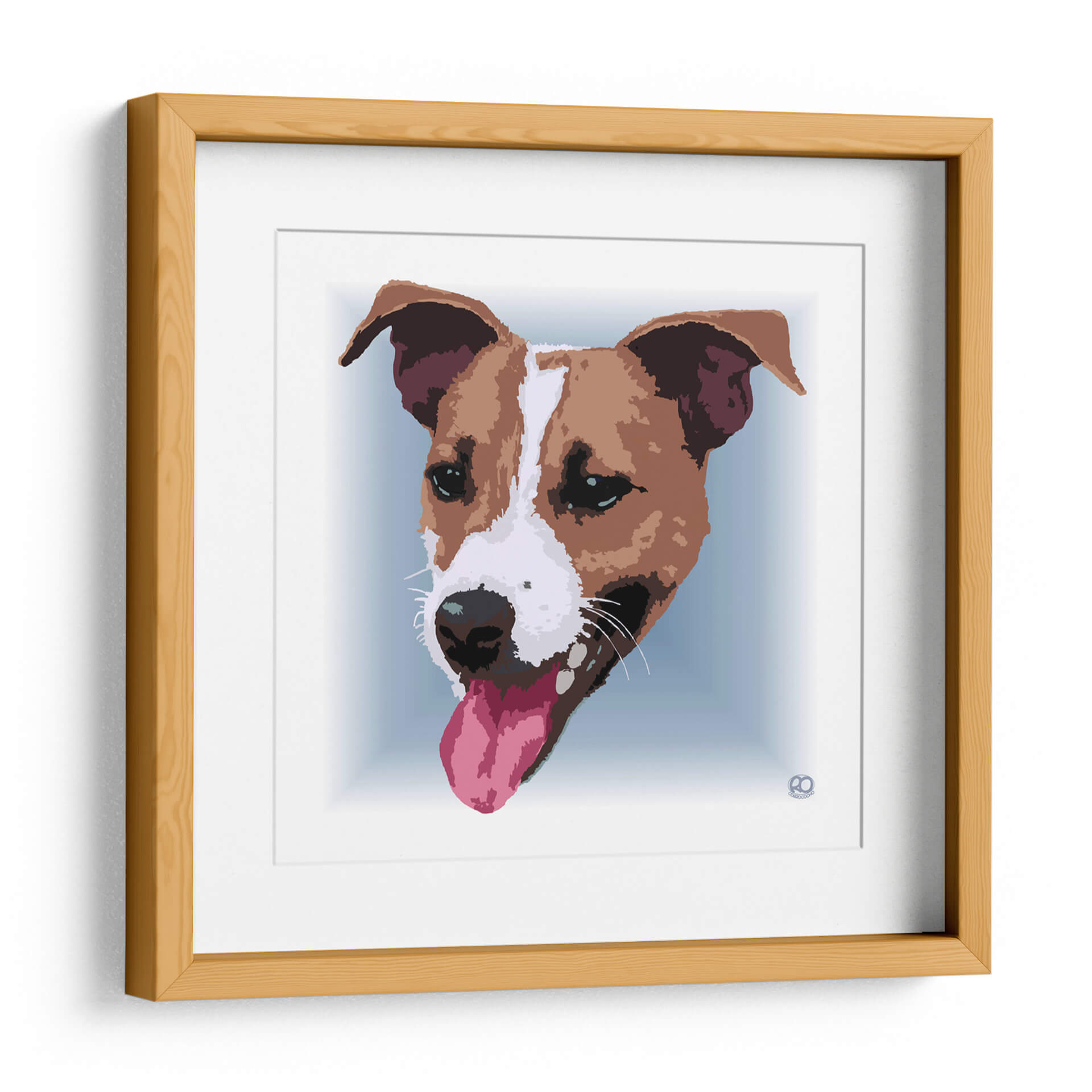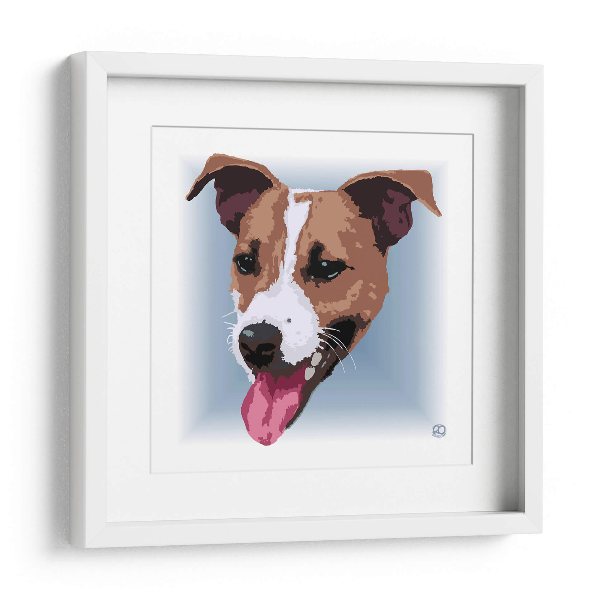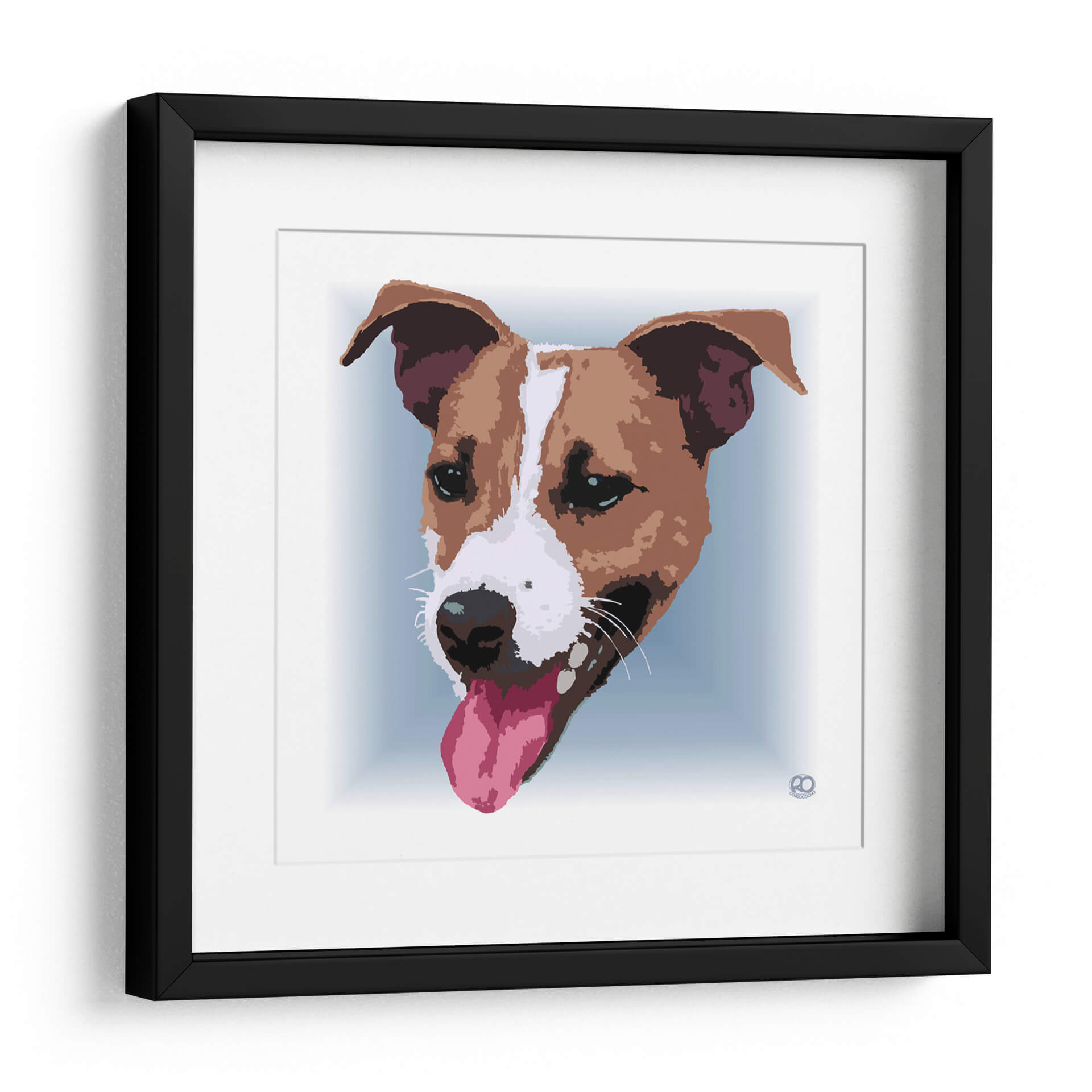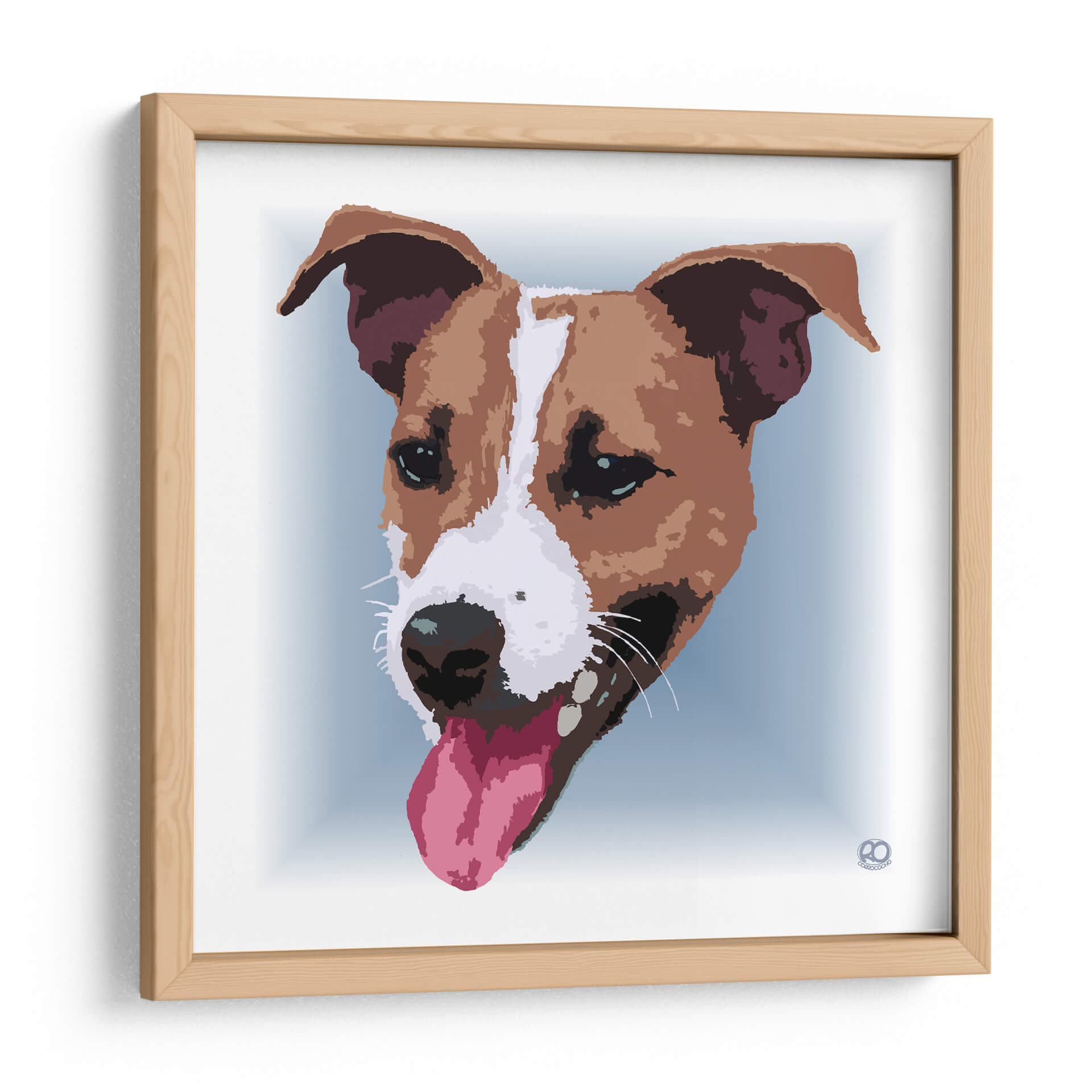 Este vibrante cuadro decorativo de un Jack Russell Terrier captura la alegría y la energía inagotables de esta raza carismática. La obra presenta un primer plano del rostro del perro, con su lengua rosada fuera y sus orejas atentas, transmitiendo una sensación de entusiasmo y vitalidad. La paleta de colores se centra en tonos cálidos de marrón y blanco para el pelaje del perro, contrastando con un suave fondo azul claro que resalta la figura central. El estilo artístico, con sus líneas definidas y un tratamiento casi gráfico, le otorga una modernidad que encaja perfectamente en decoraciones contemporáneas, desde salas de estar hasta espacios de trabajo. Es la pieza ideal para los amantes de los perros, especialmente aquellos fascinados por la personalidad juguetona y leal de los Jack Russell. Este cuadro decorativo no solo añade un punto focal llamativo a cualquier habitación, sino que también inyecta una dosis de carácter y buen humor, convirtiéndose en un elemento esencial para quienes buscan un arte que celebre la conexión humana-animal con estilo y originalidad.